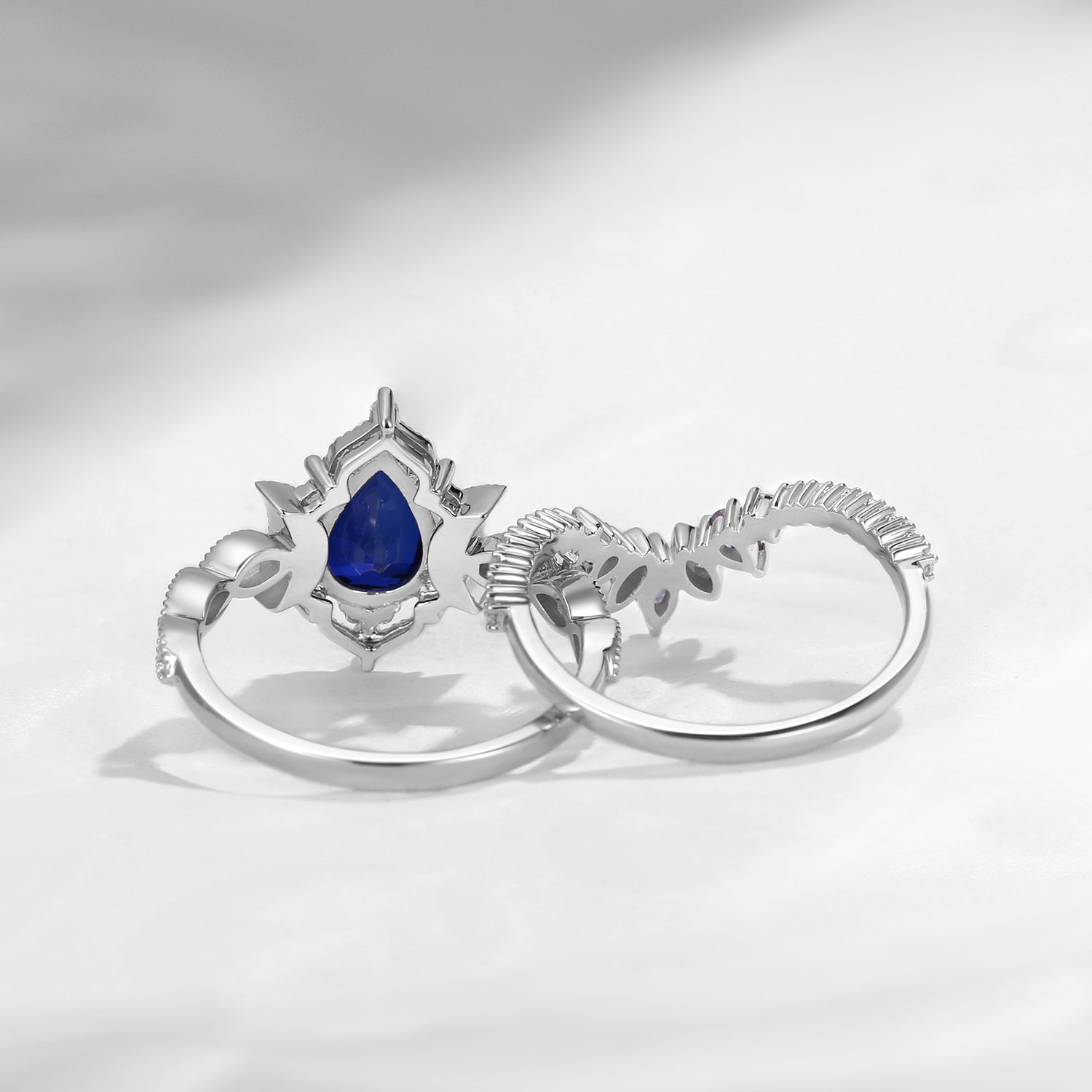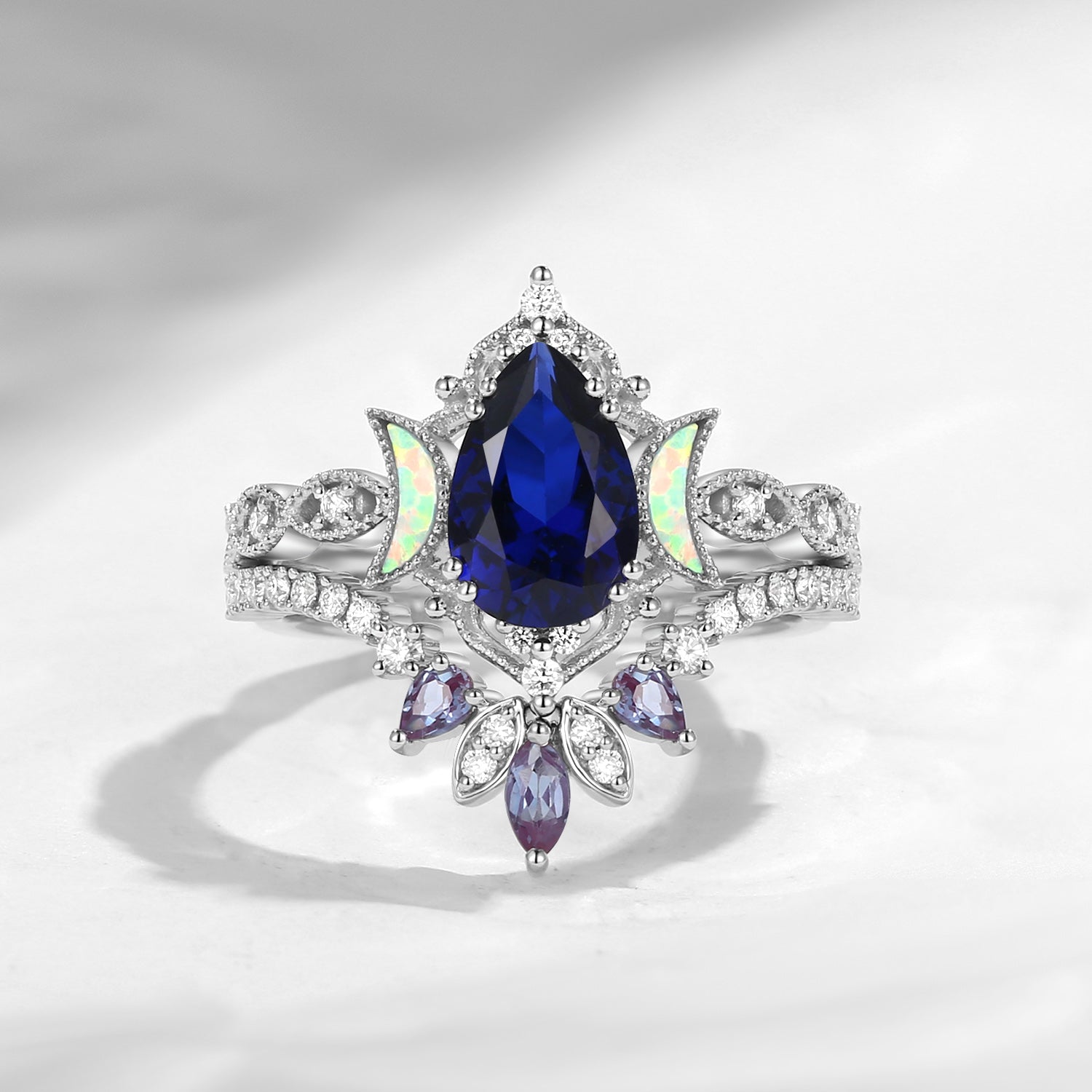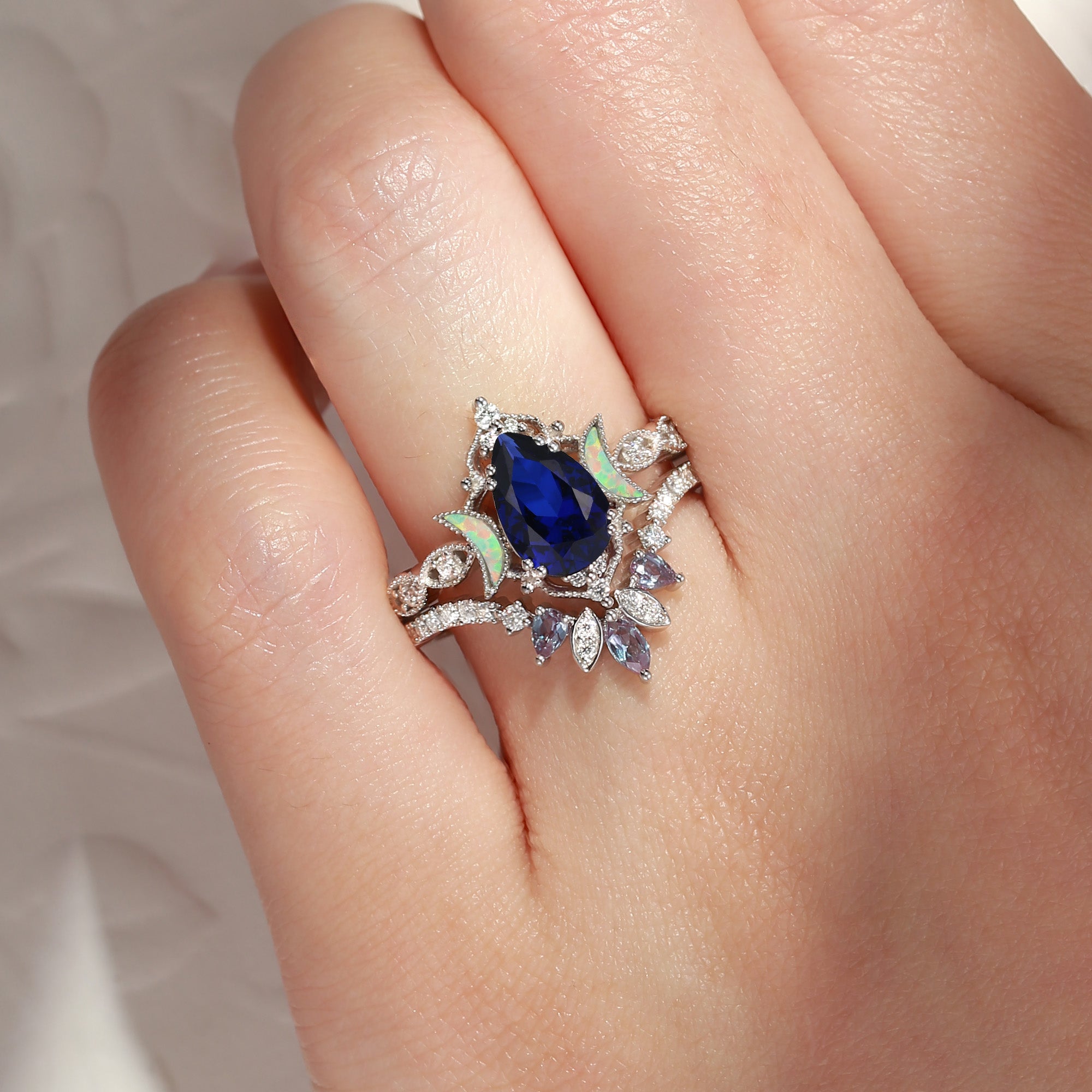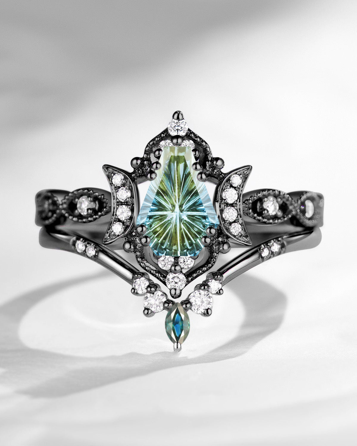 Crescent Moon | Coffin Cut Moonstone 'Ultra Galaxy' Engagement Ring Set 2pcs
