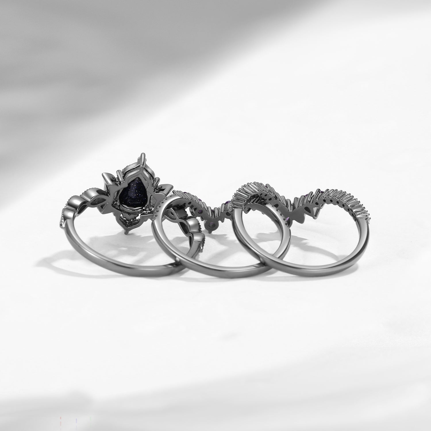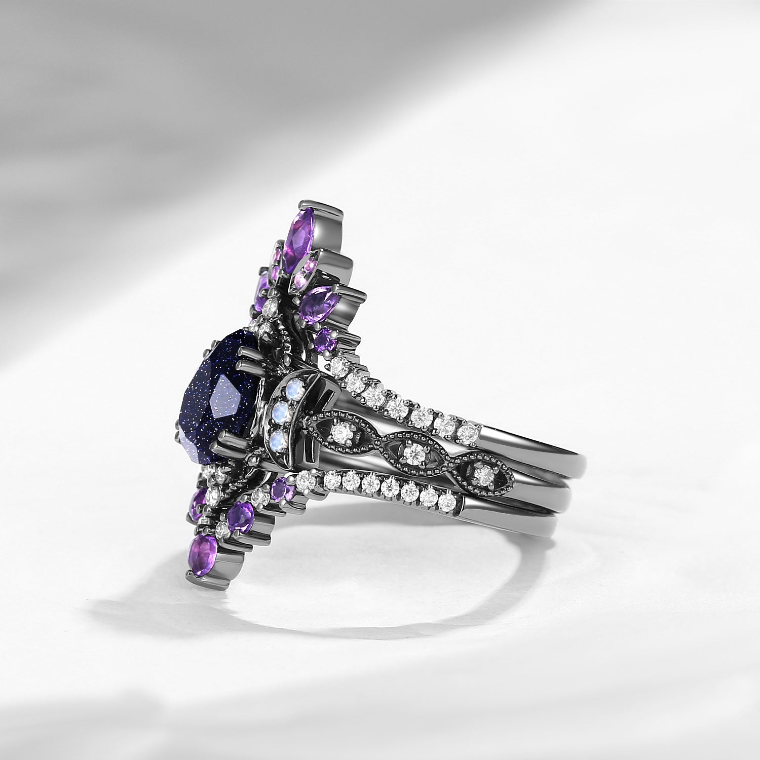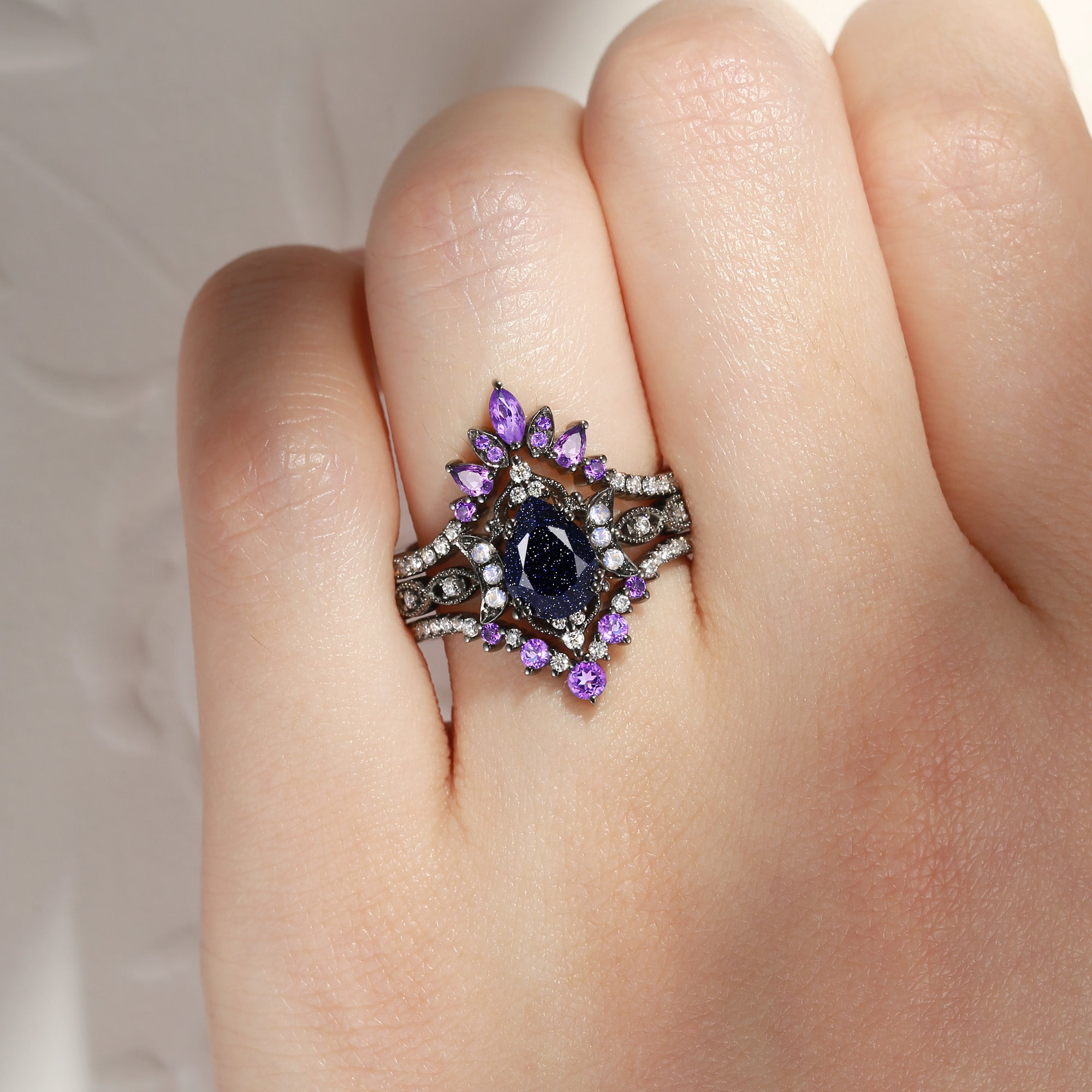 Crescent Moon | Pear Cut Blue Sandstone & Amethyst Ring Set 3pcs