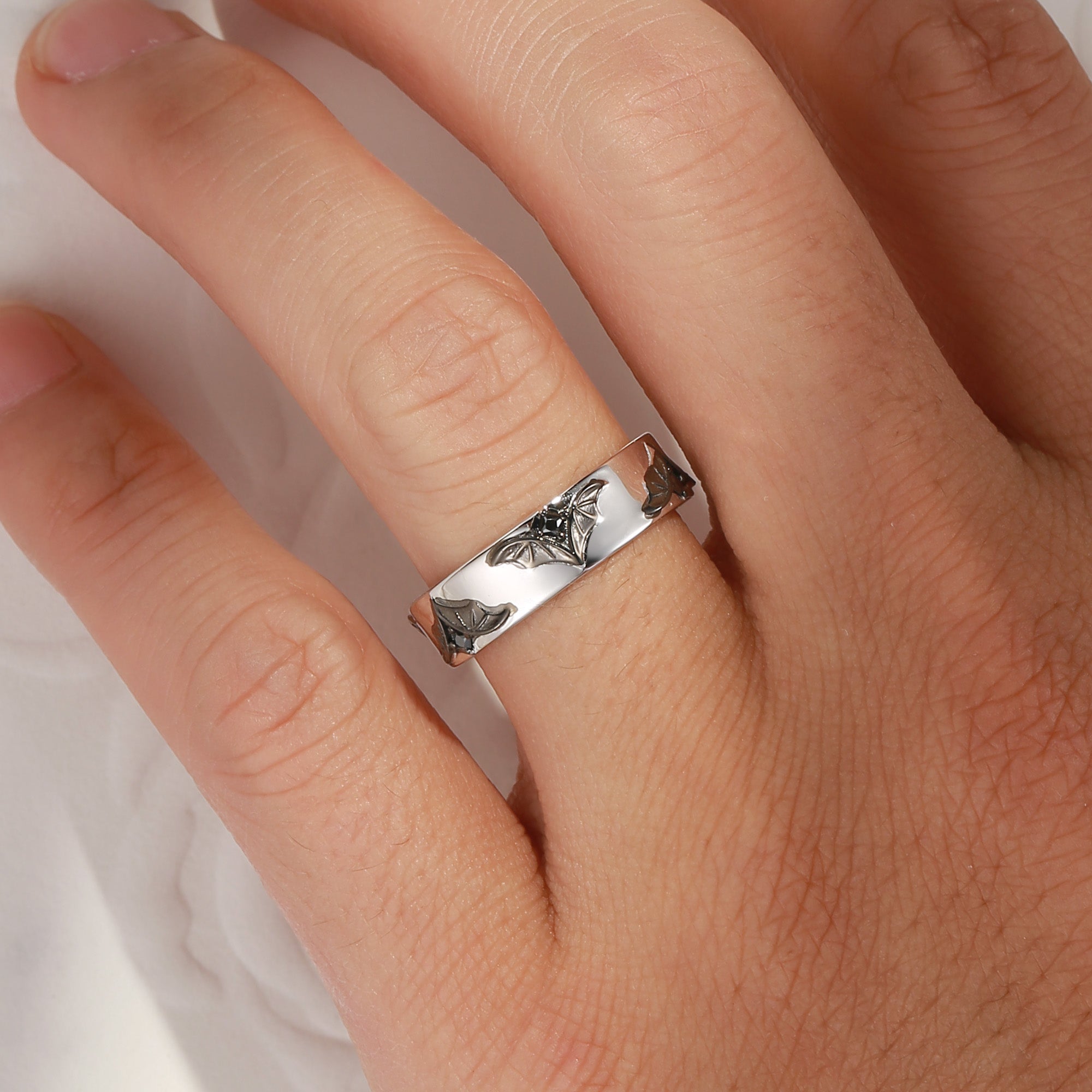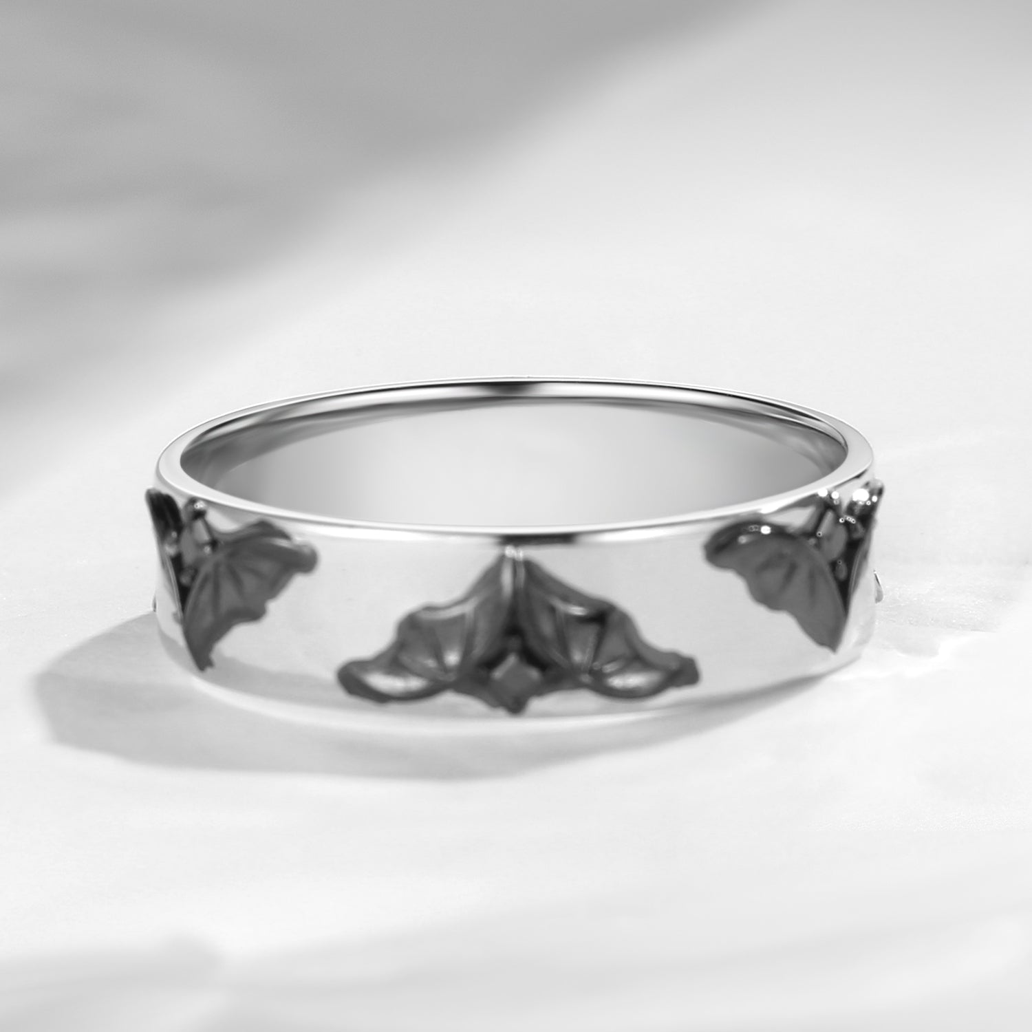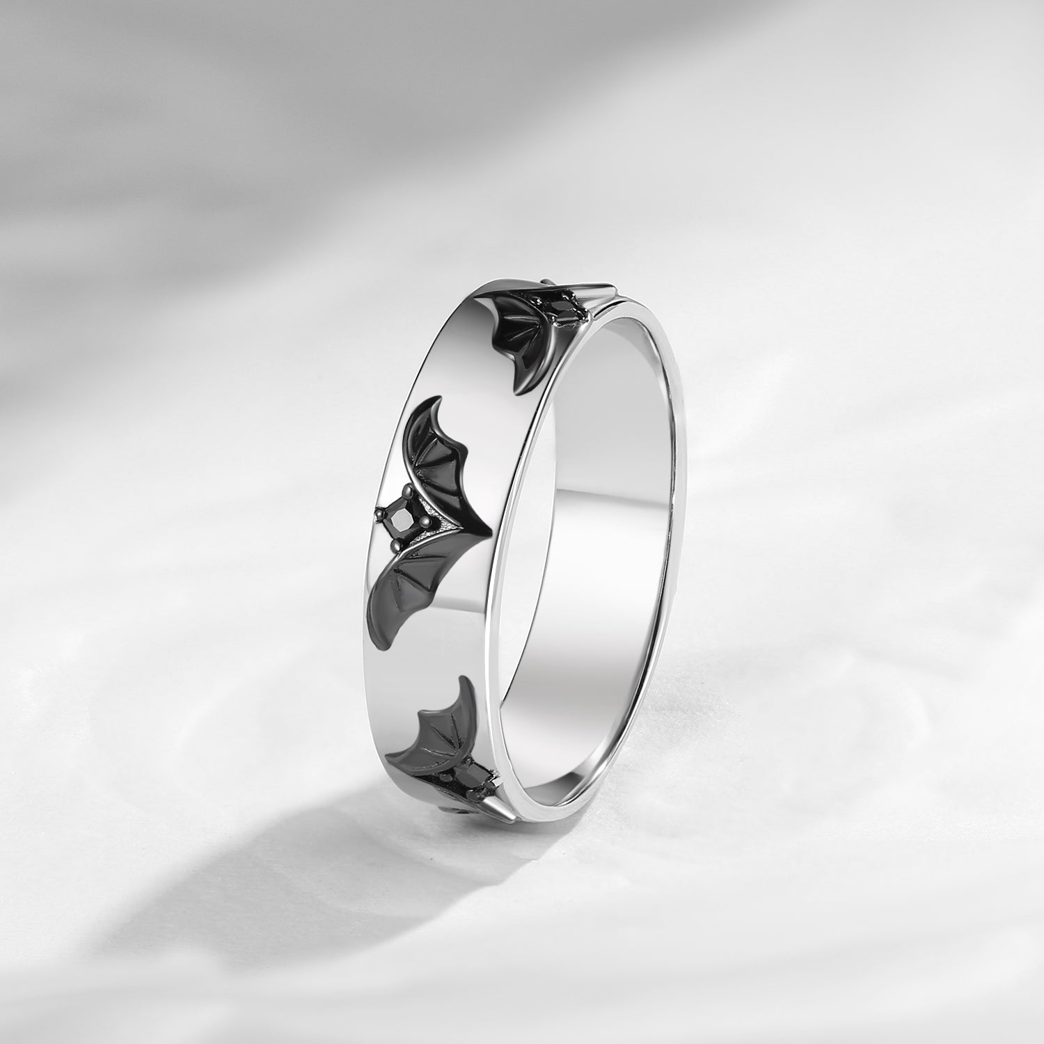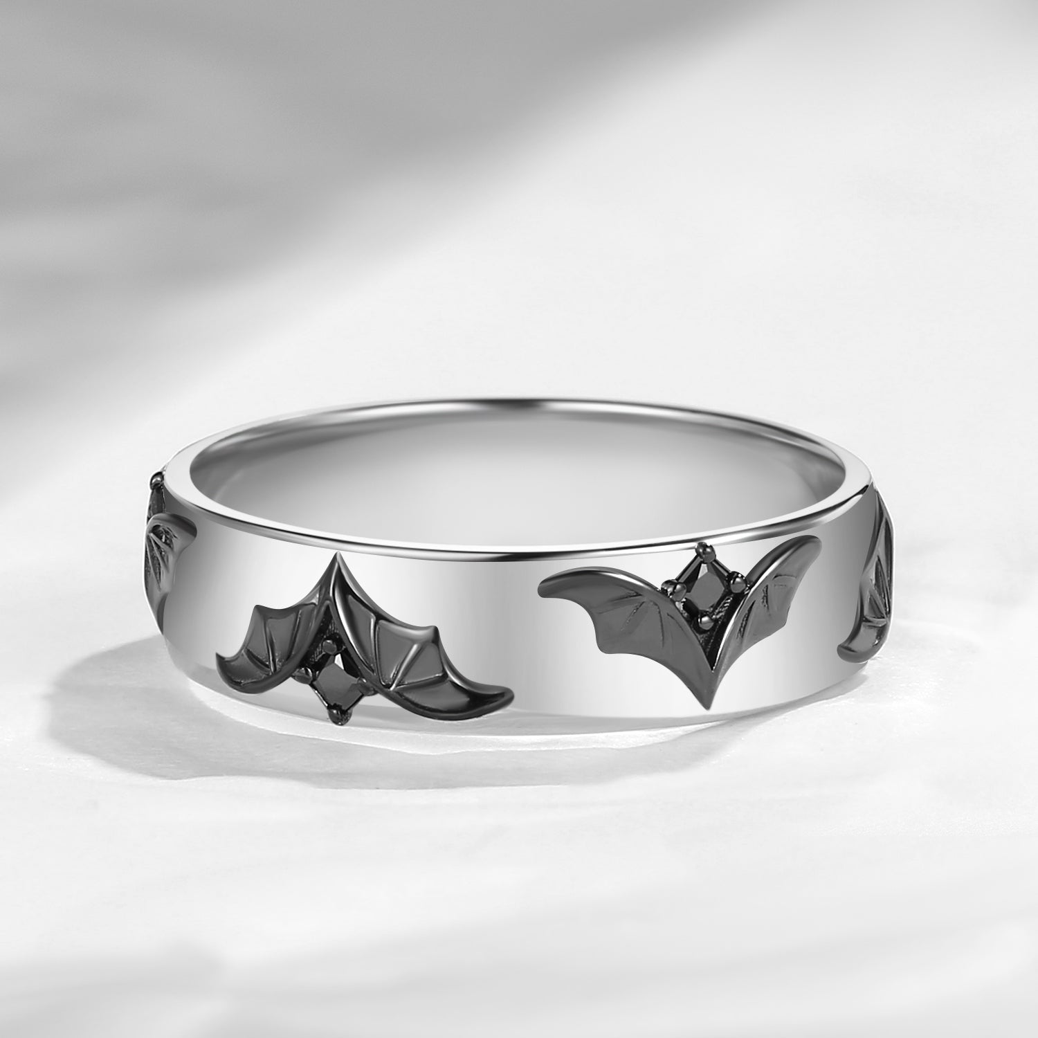 Unique Gothic Bat Inspired Black Gold Bat Wing Wedding Band For Men
