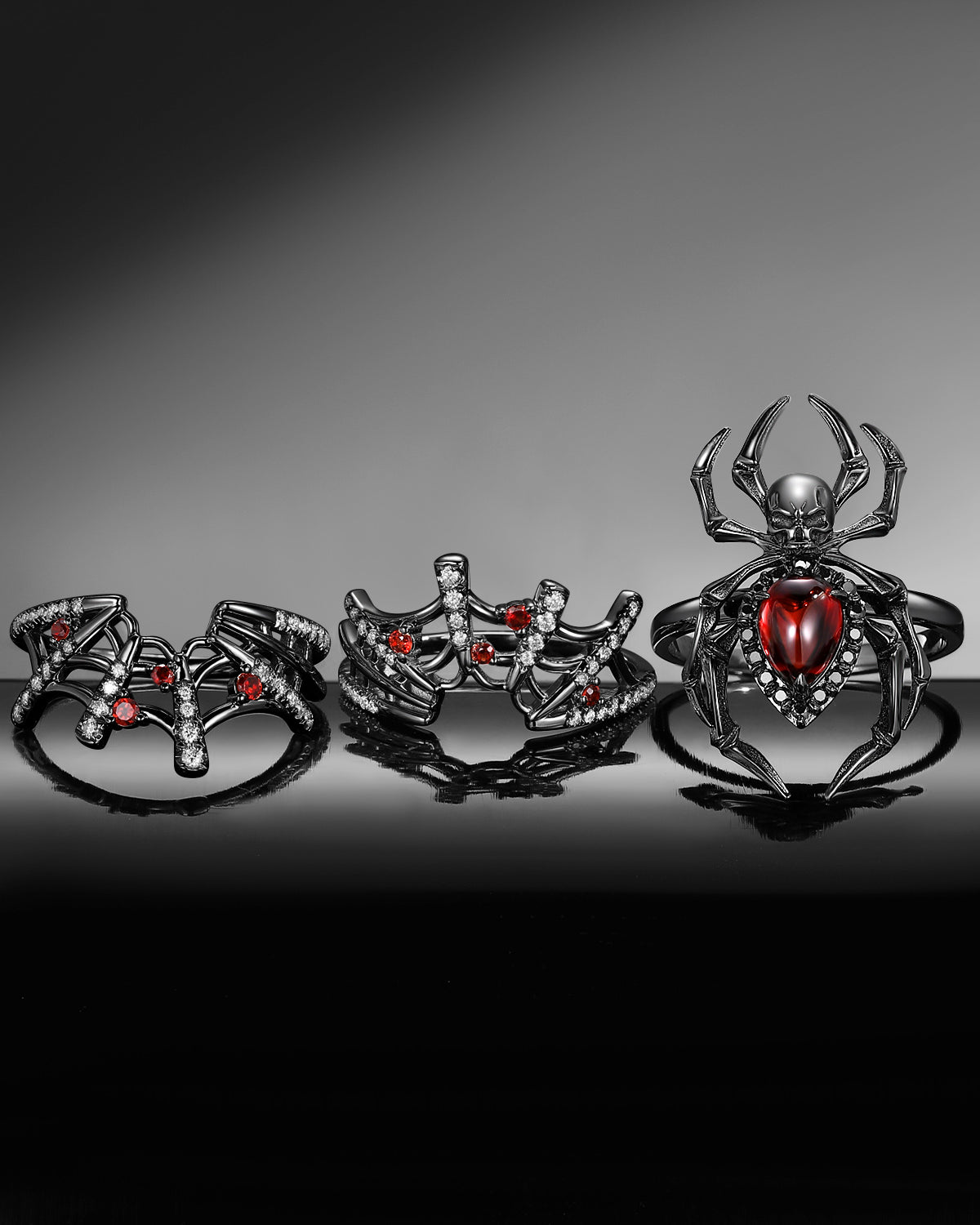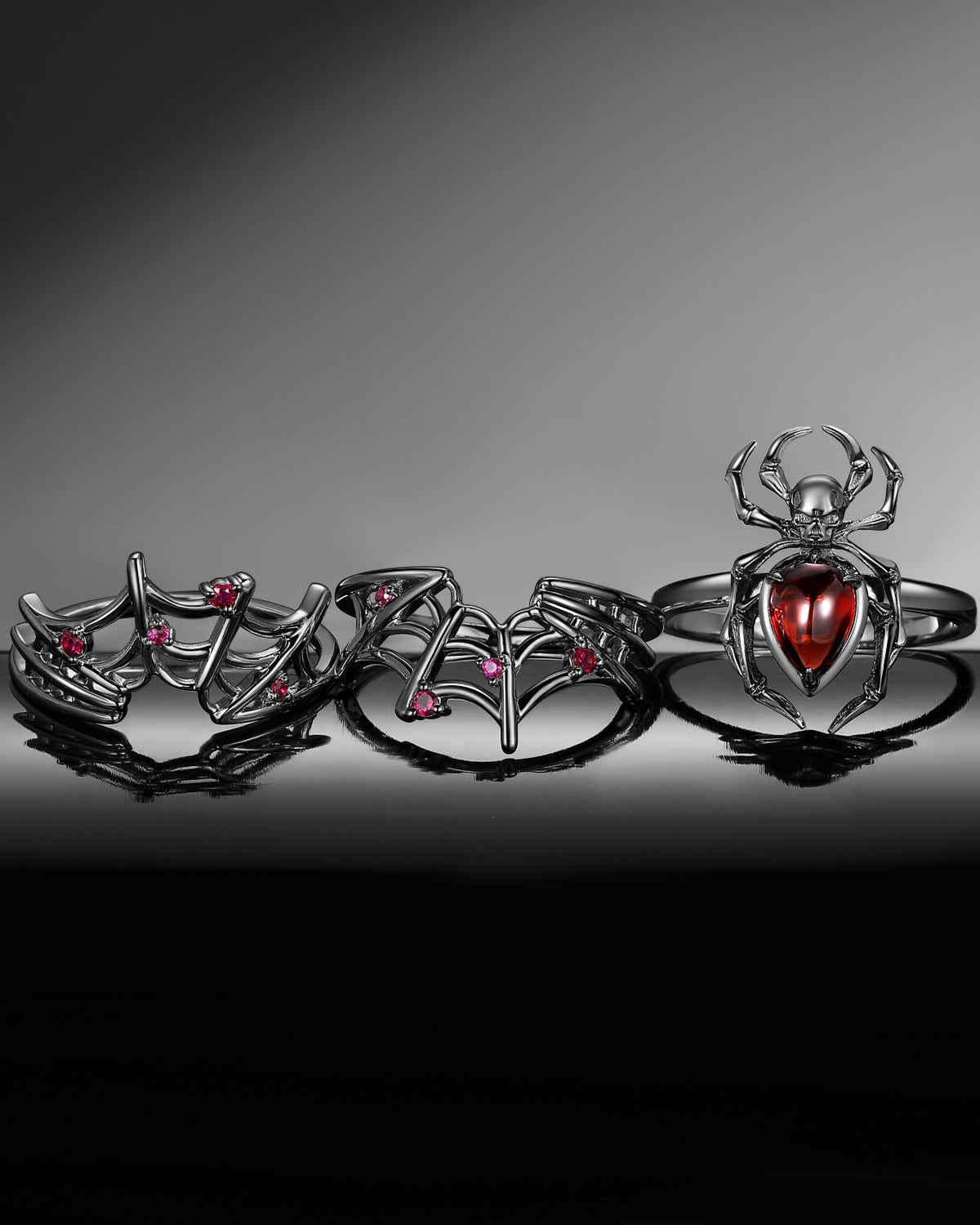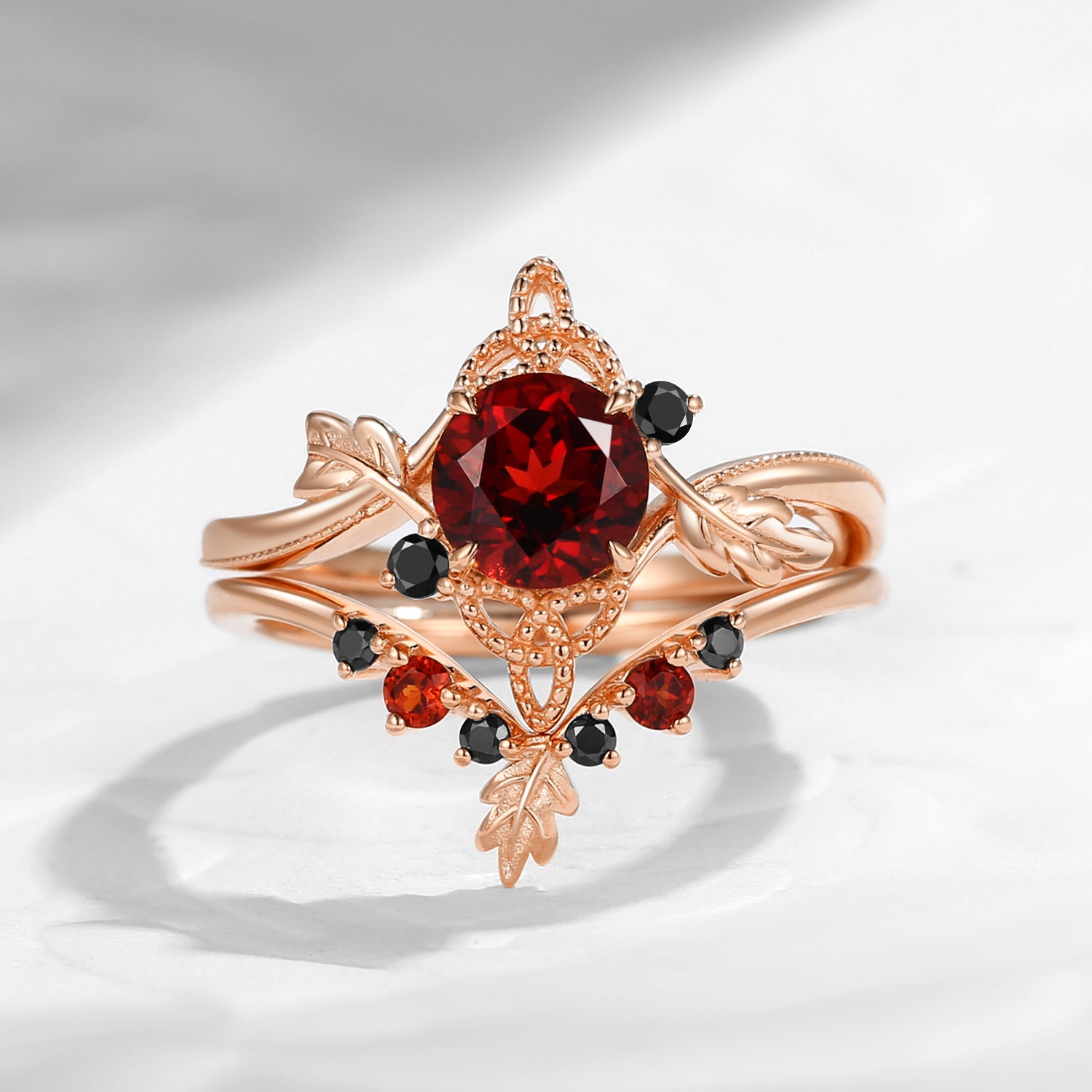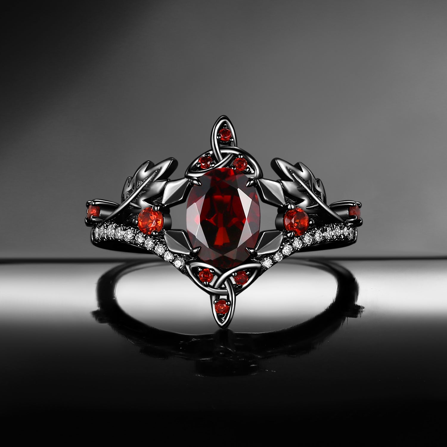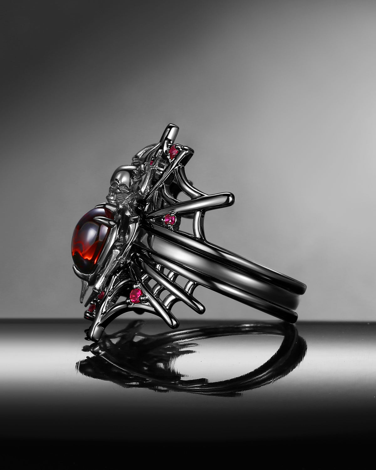 Gothic Pear Shaped Garnet Spider Inspired 'Disturbia' Engagement Ring Set 3pcs