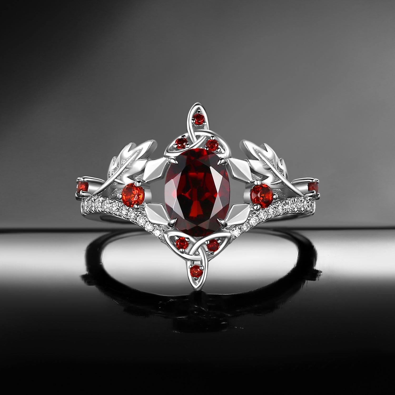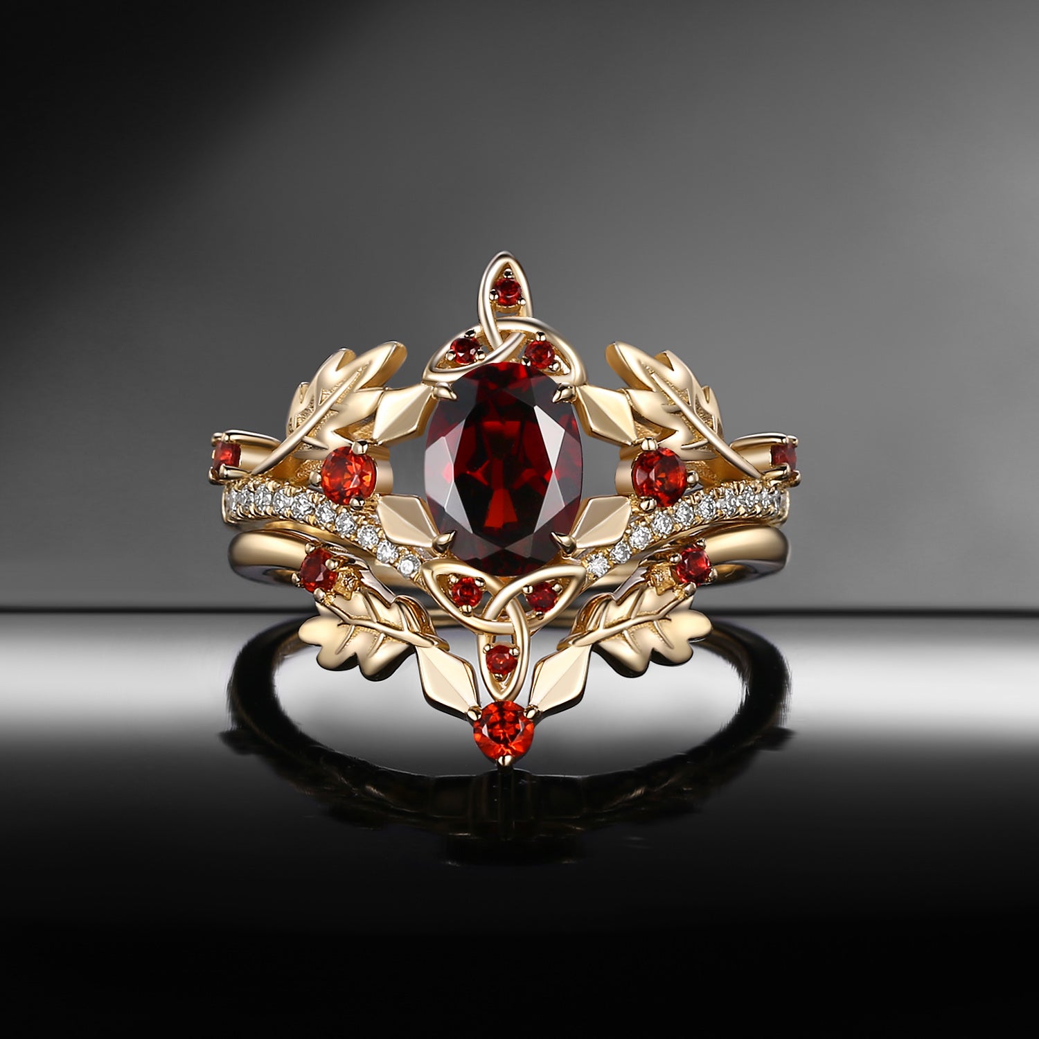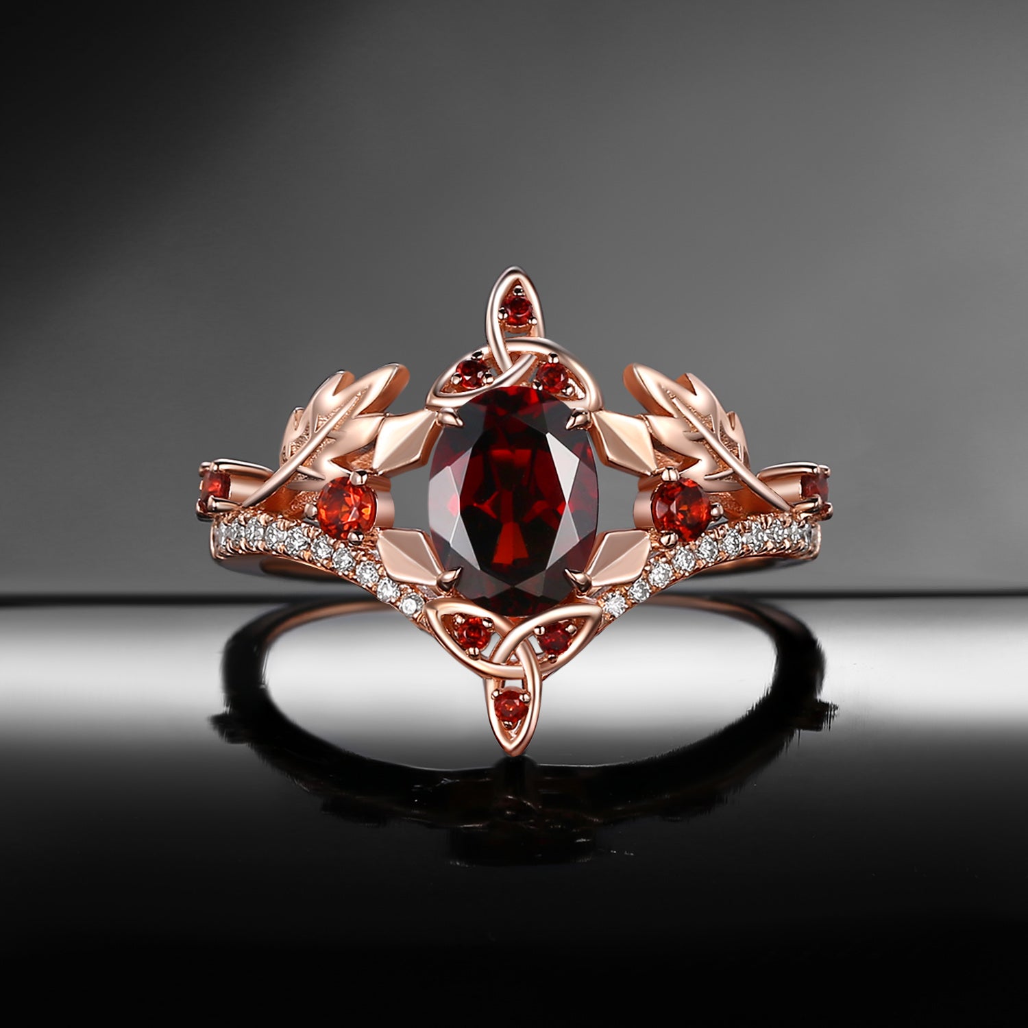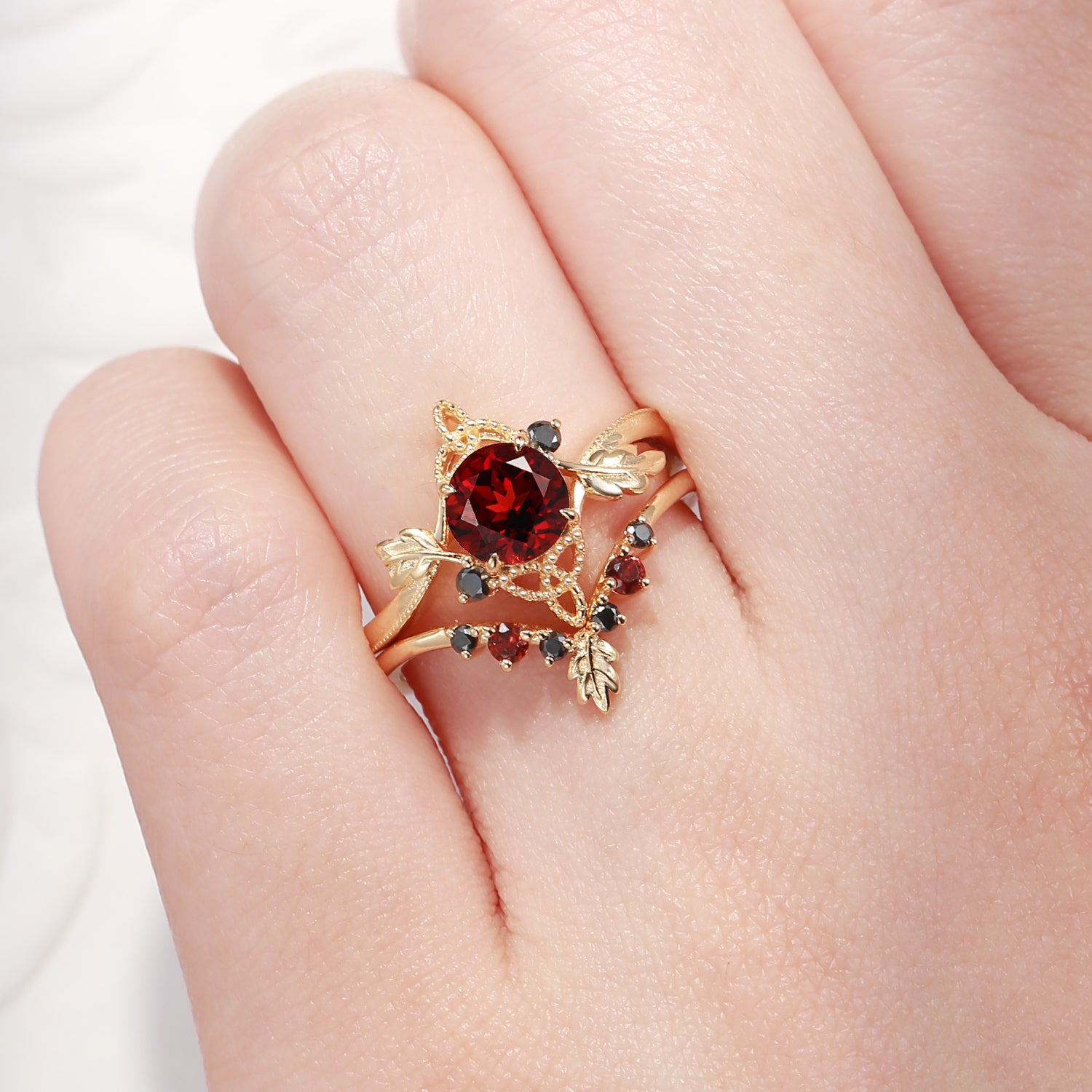 Gothic Pear Shaped Garnet Spider Inspired 'Disturbia' Engagement Ring Set 3pcs