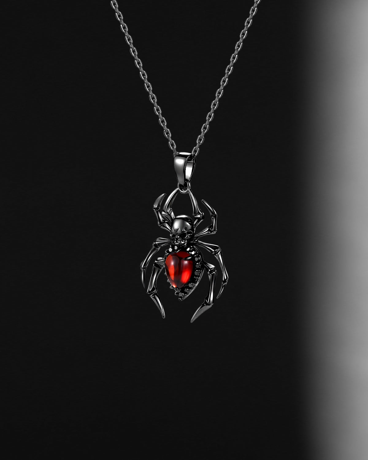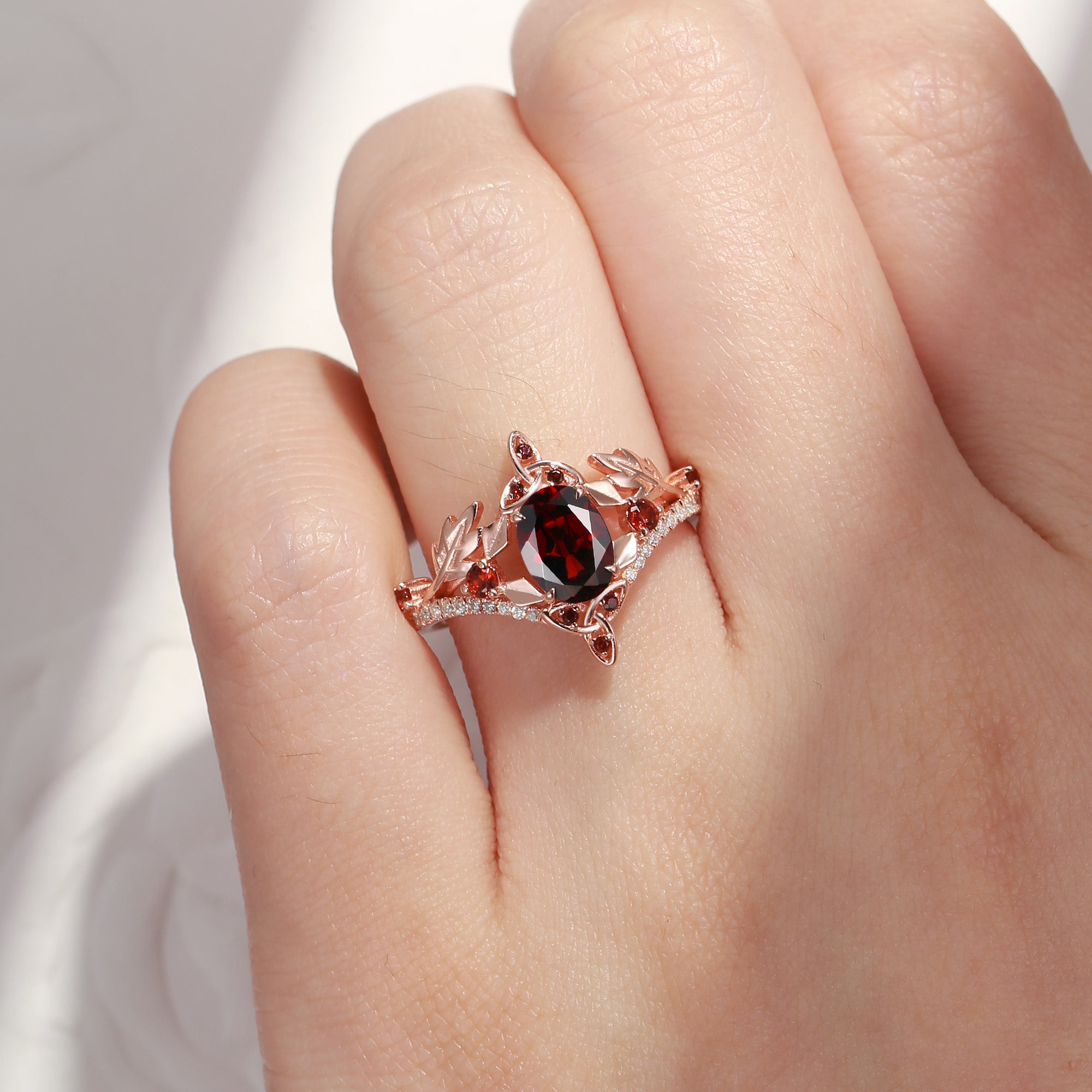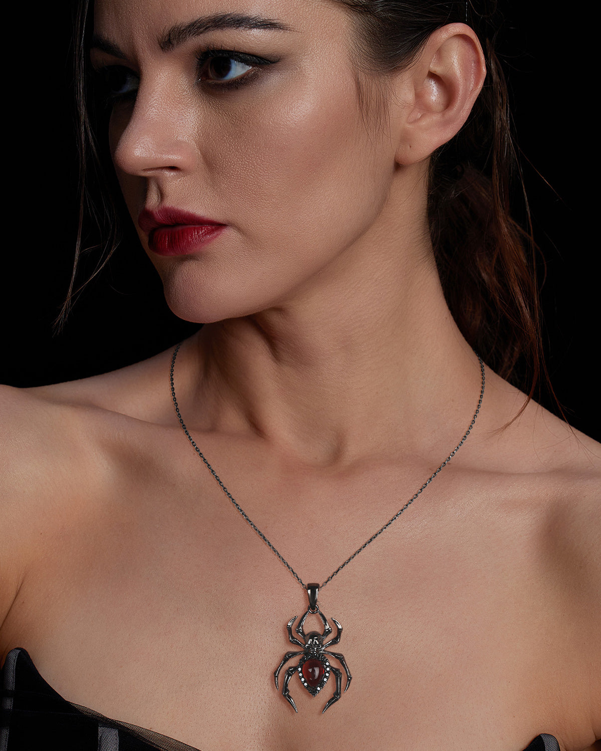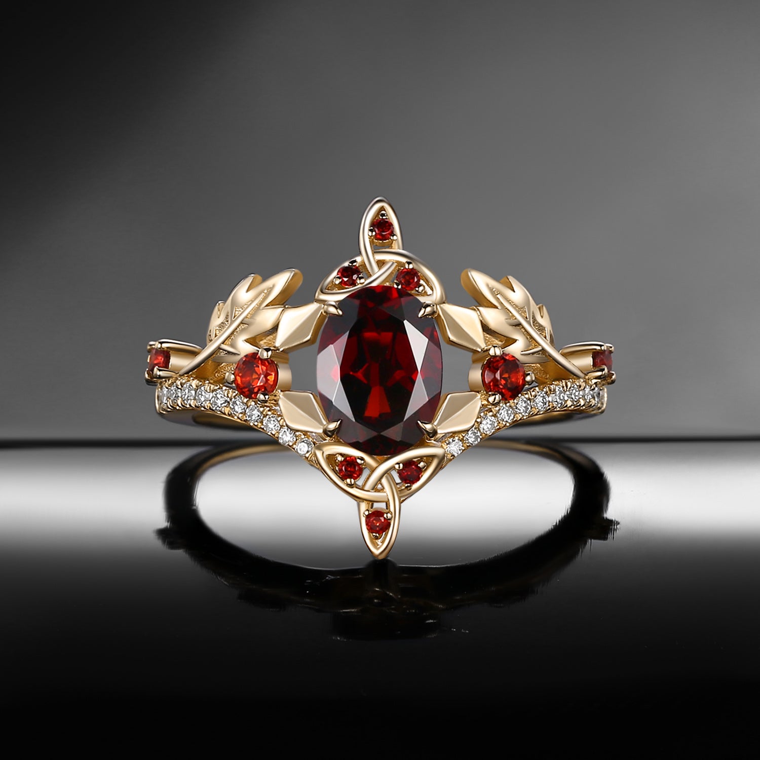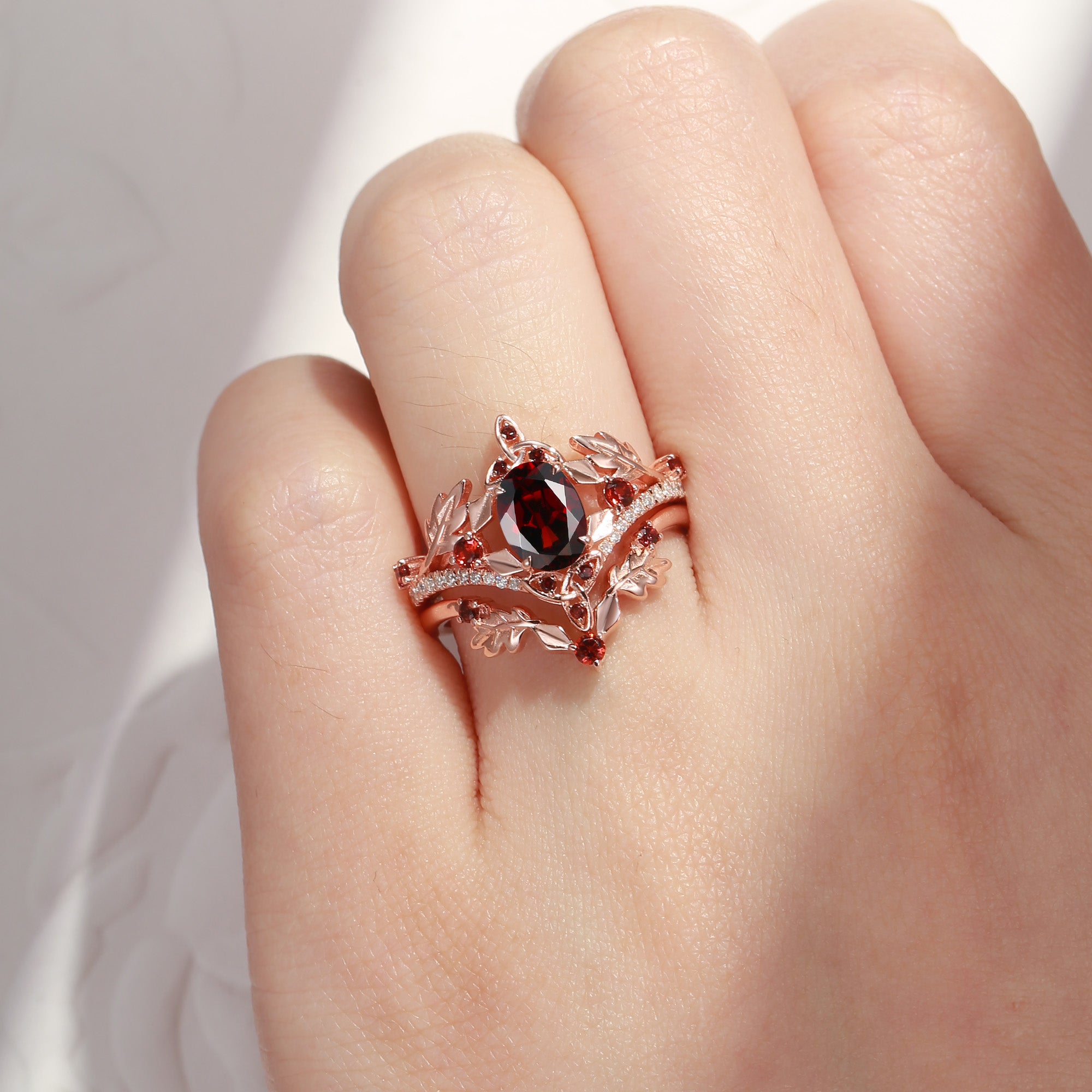 Gothic Pear Shaped Garnet Spider Inspired 'Disturbia' Engagement Ring Set 3pcs