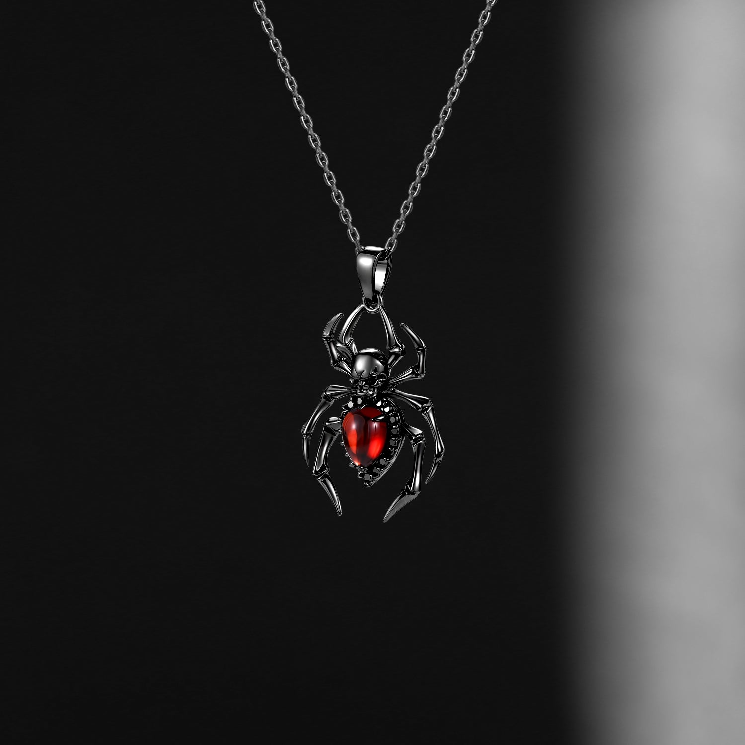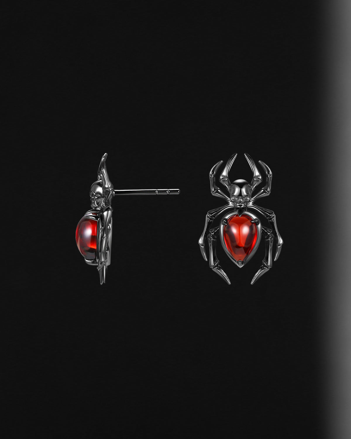 Gothic Spider & Skull Pear Shaped Garnet Halloween Stud Earrings
