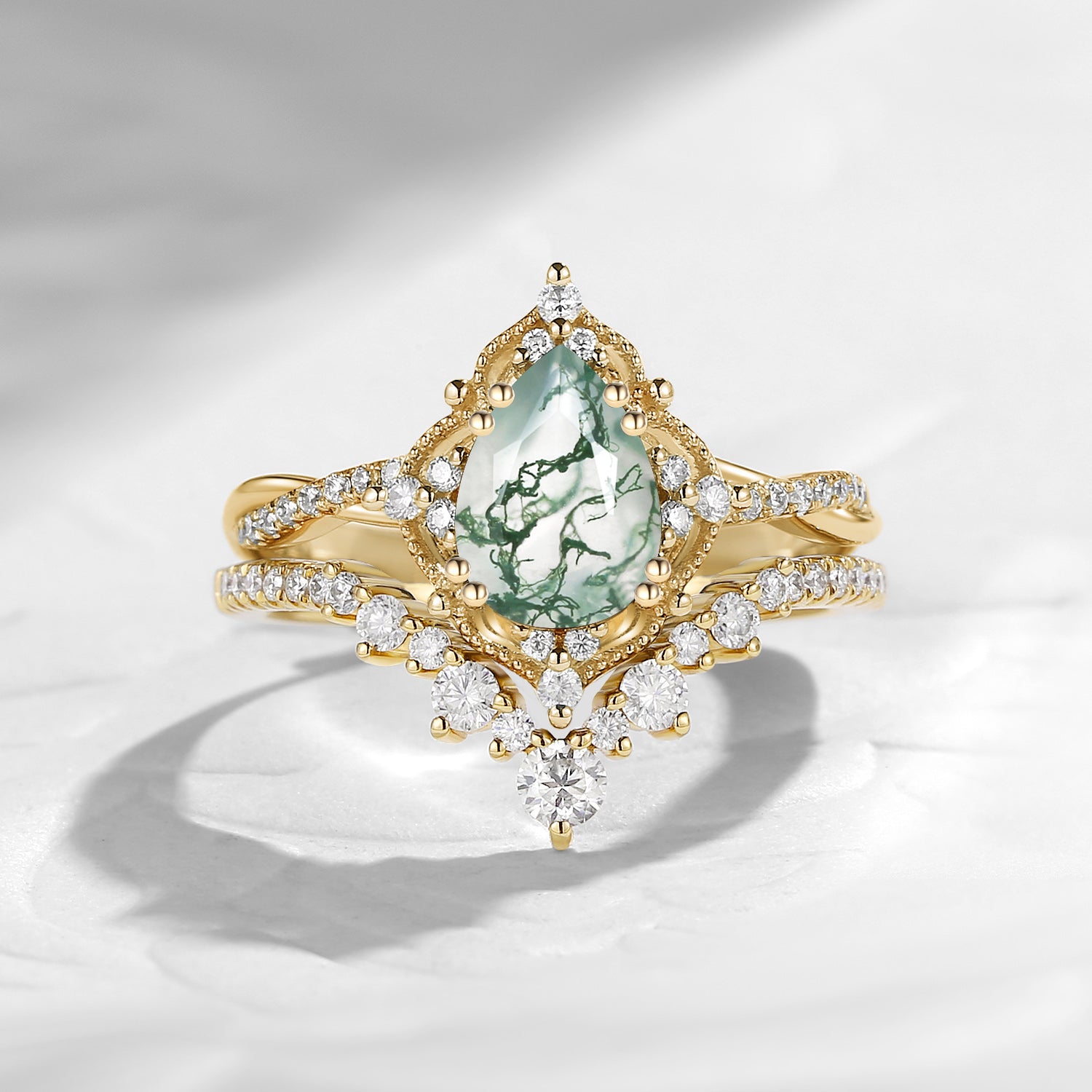 Vintage Inspired Pear Cut Black Rutilated Quartz Infinity Engagement Ring 2pcs