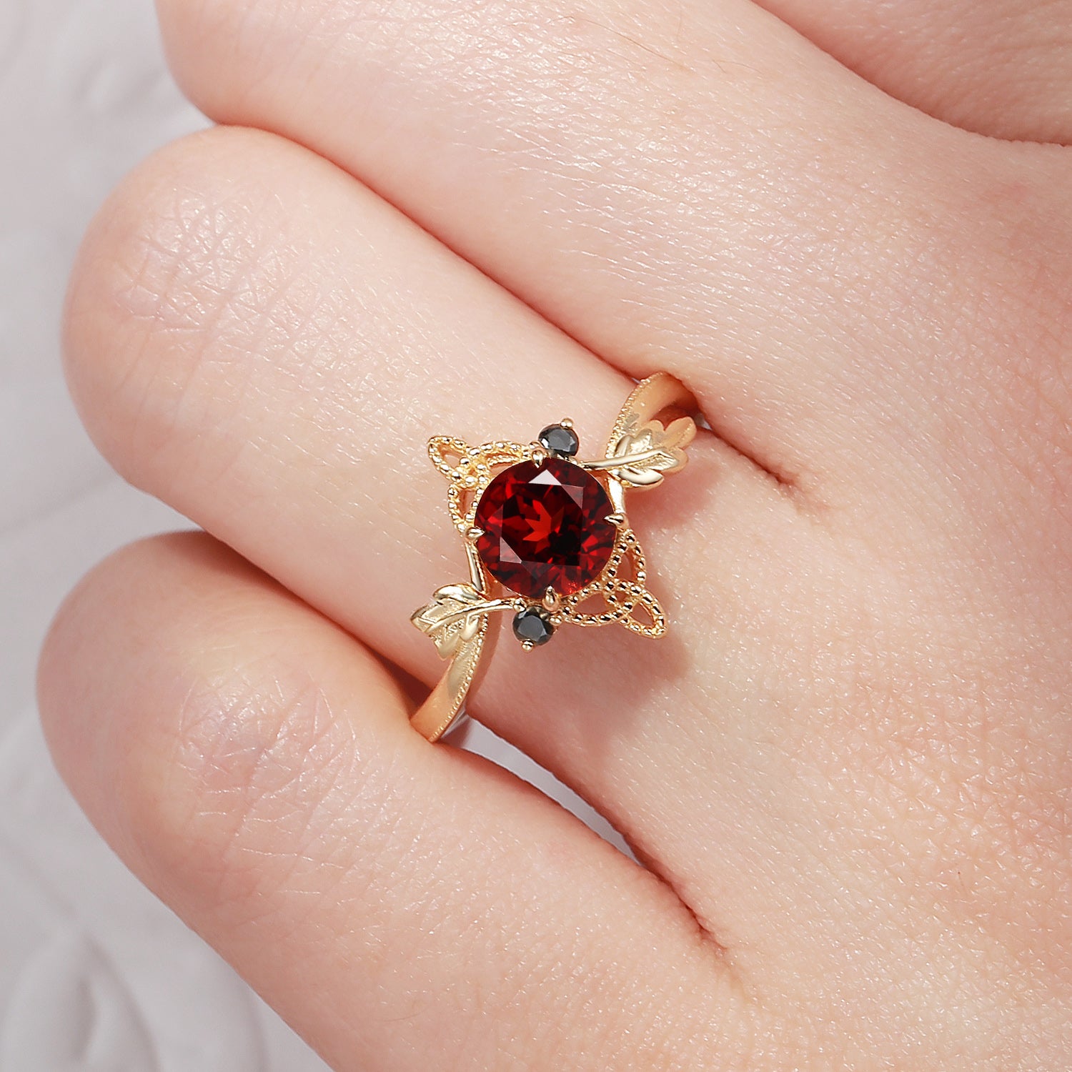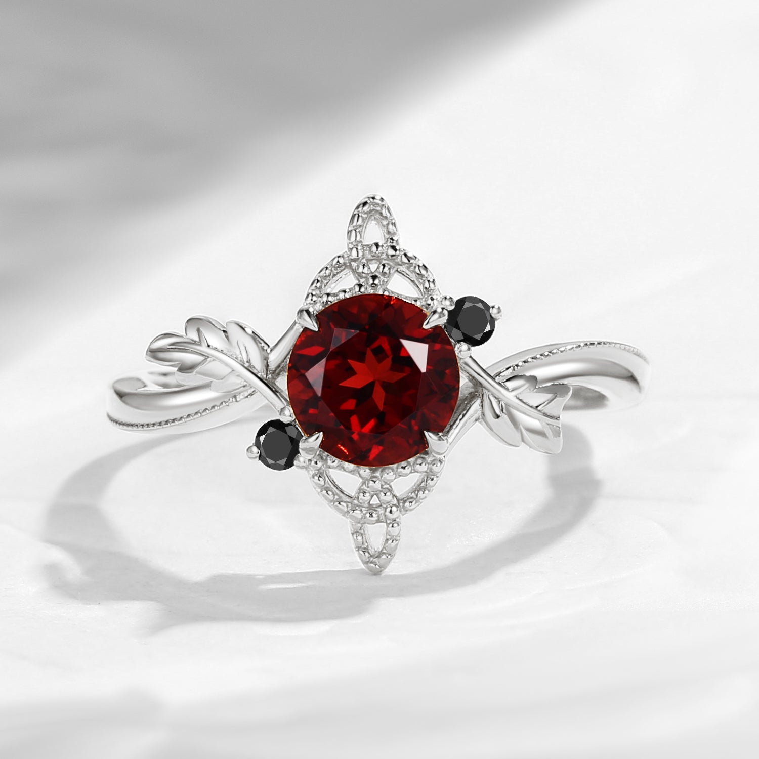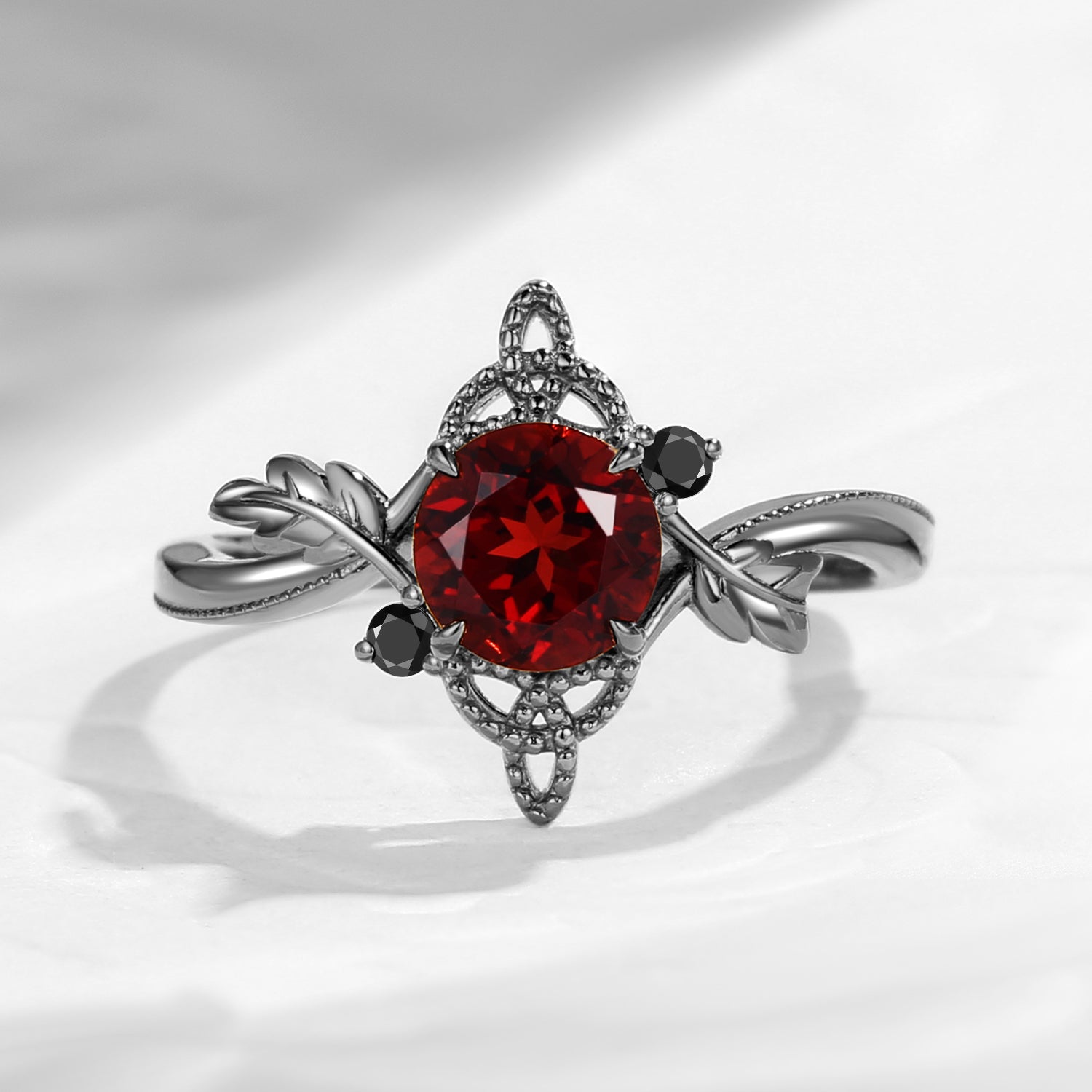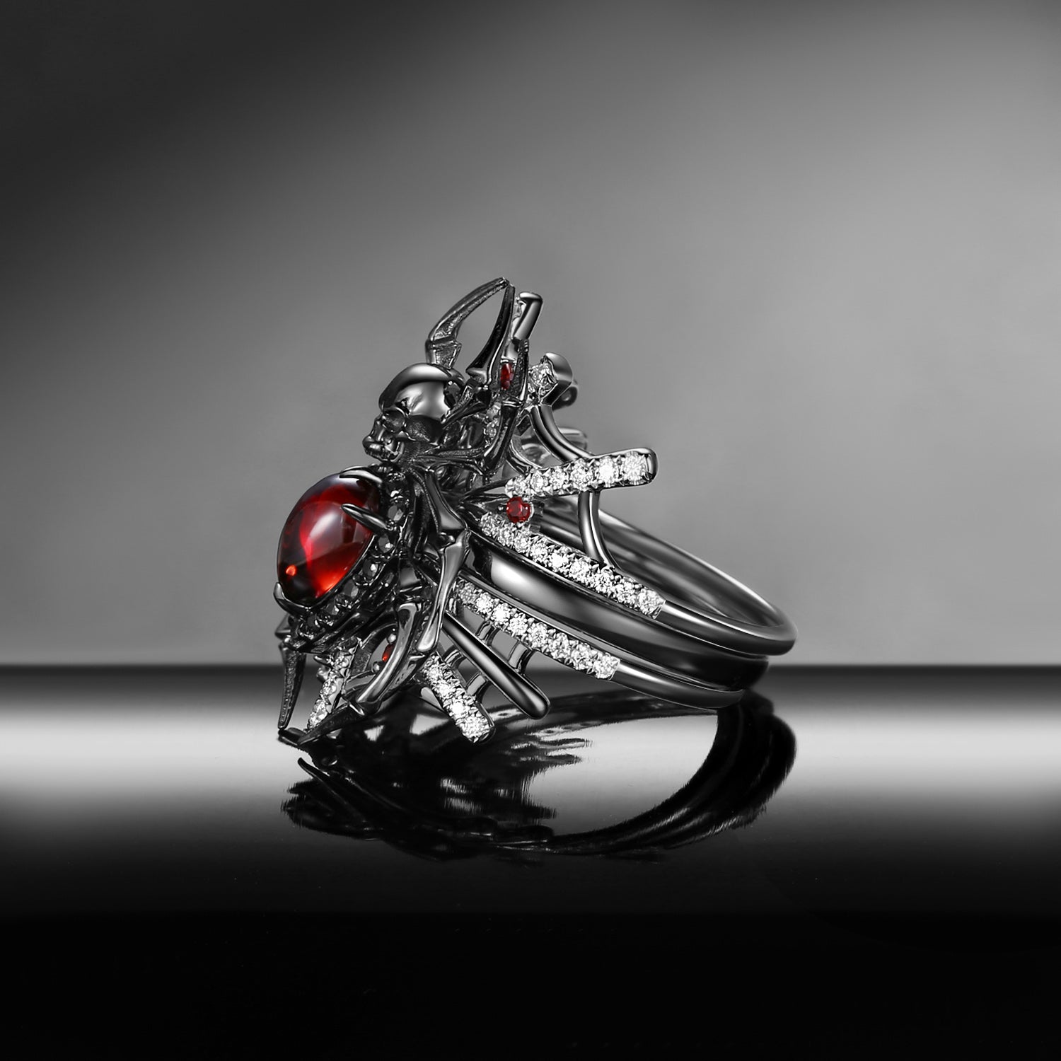 Gothic Inspired Skull & Skeleton Coffin Cut Garnet Engagement Ring