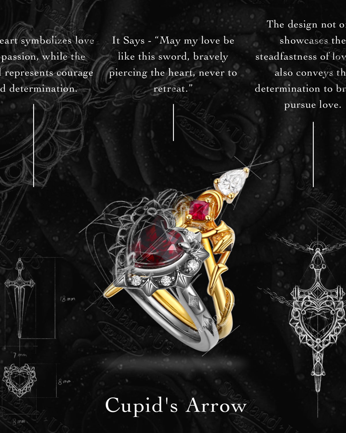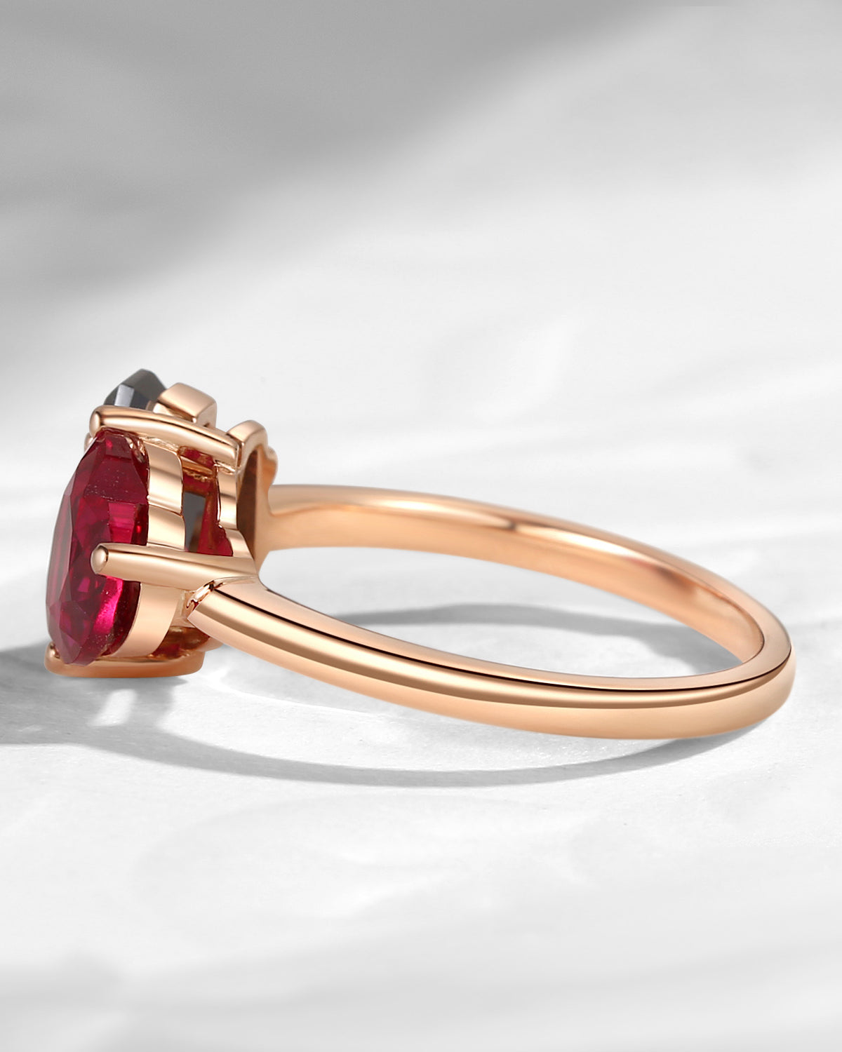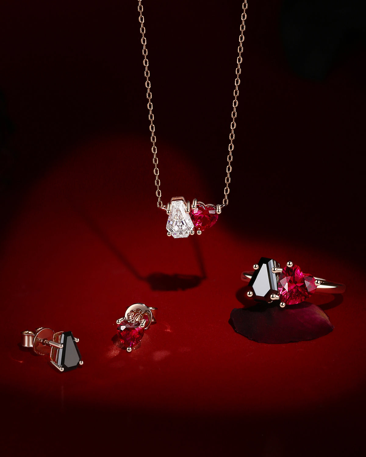 Crescent Moon | 18K Heart Shaped Lab Ruby Engagement Ring Set 2pcs - Luna
