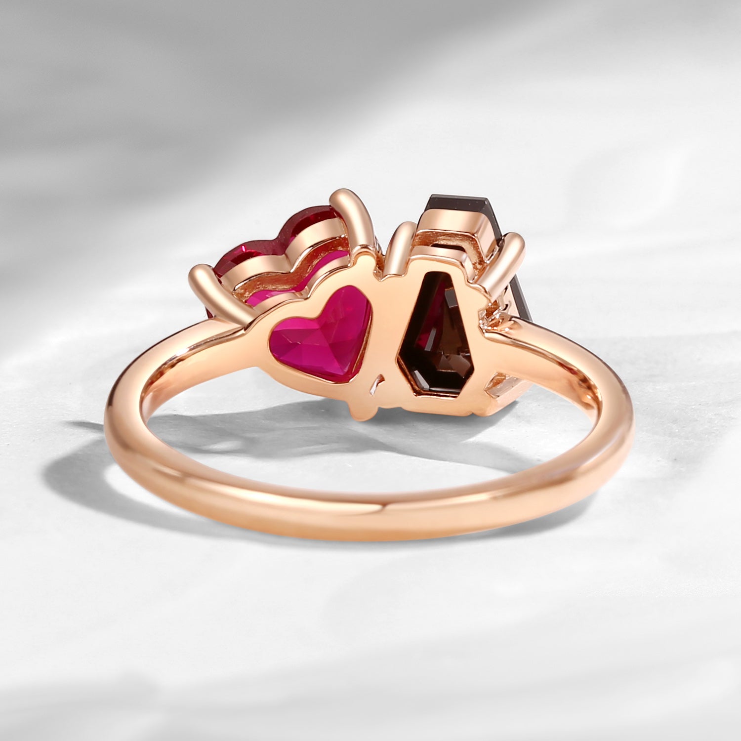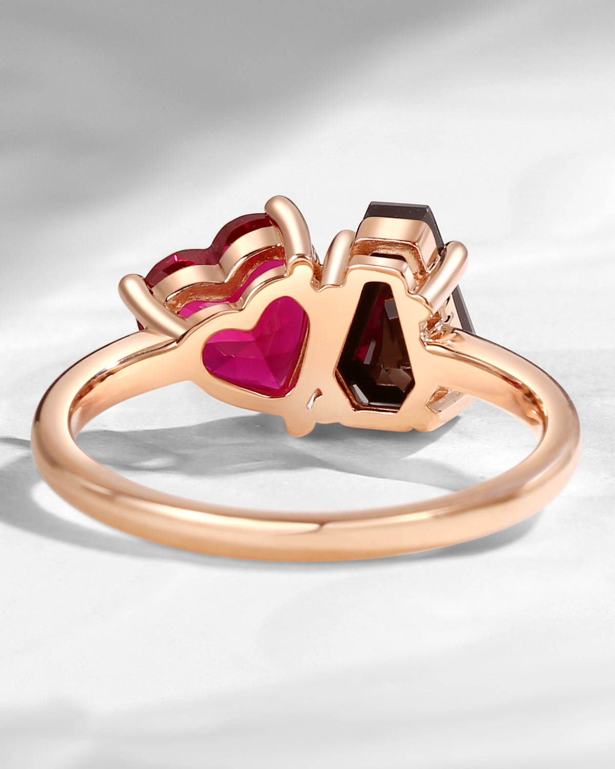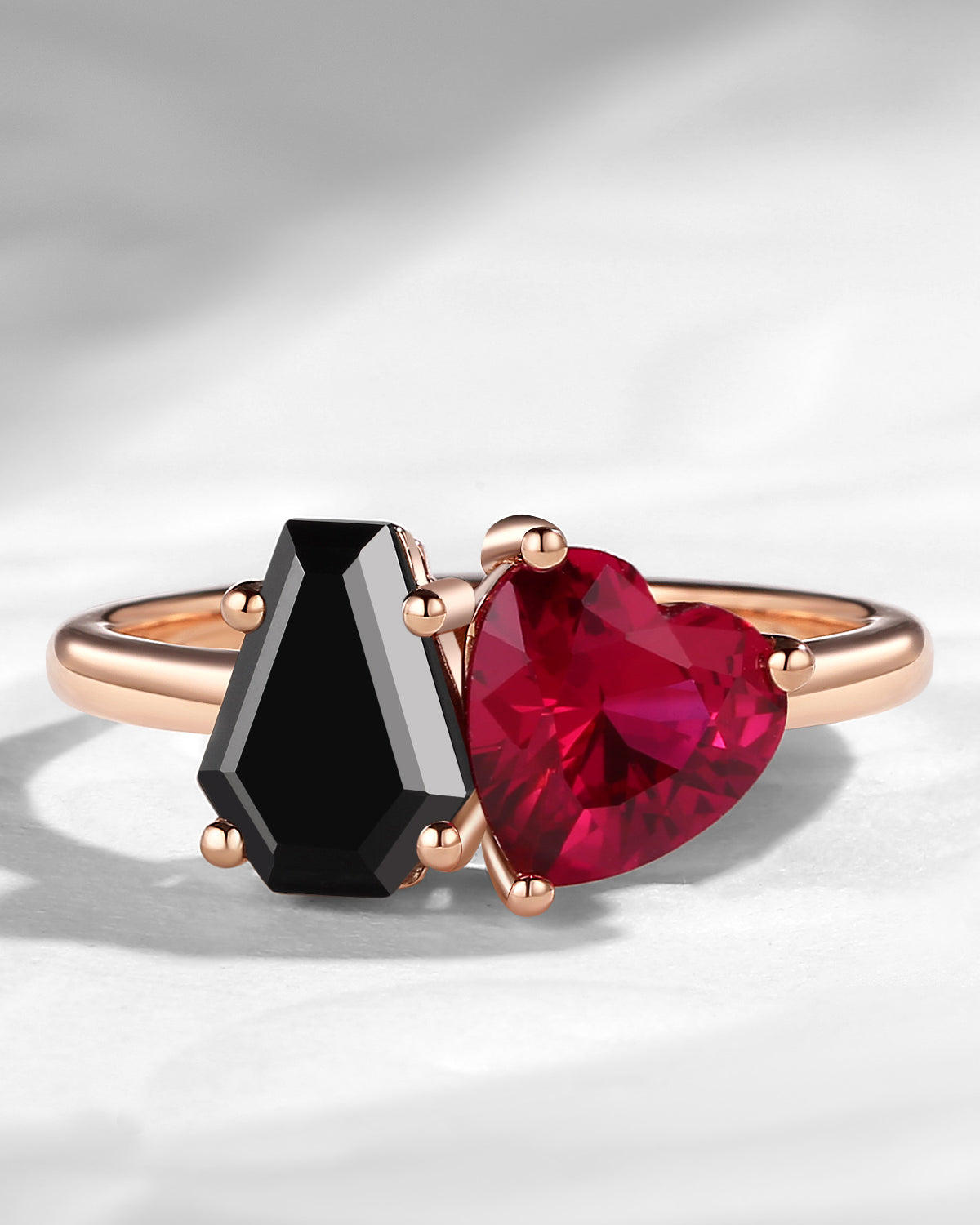 Crescent Moon | 18K Heart Shaped Lab Ruby Engagement Ring Set 2pcs - Luna
