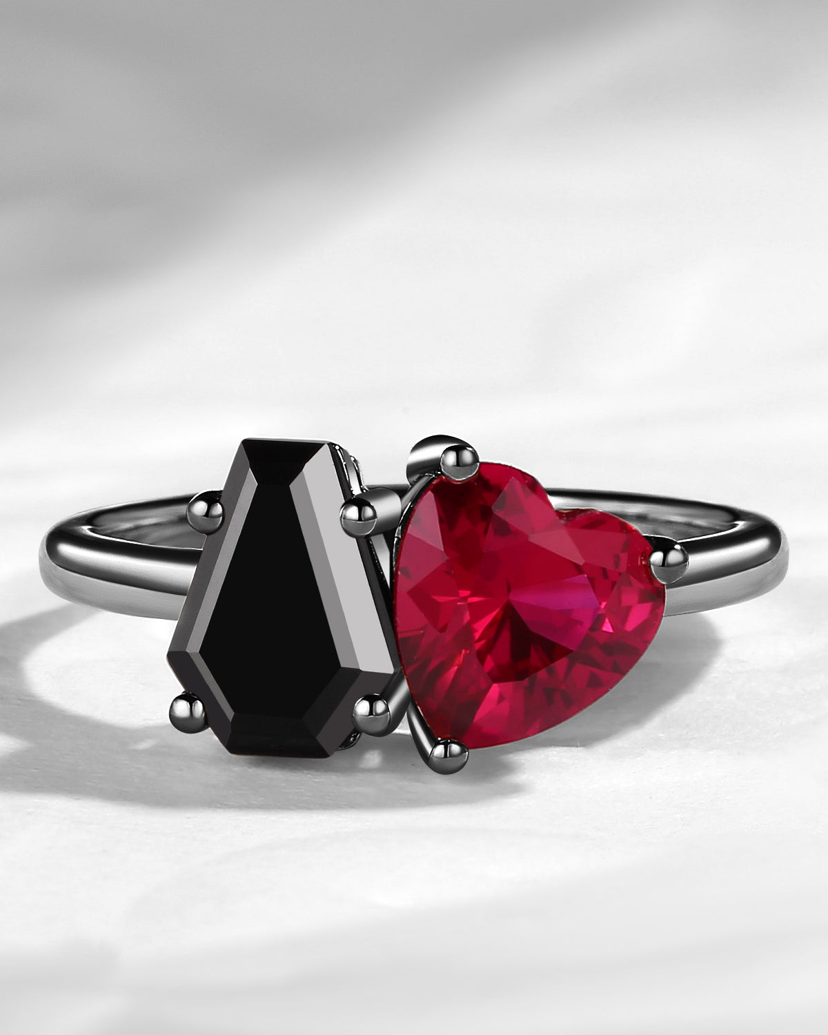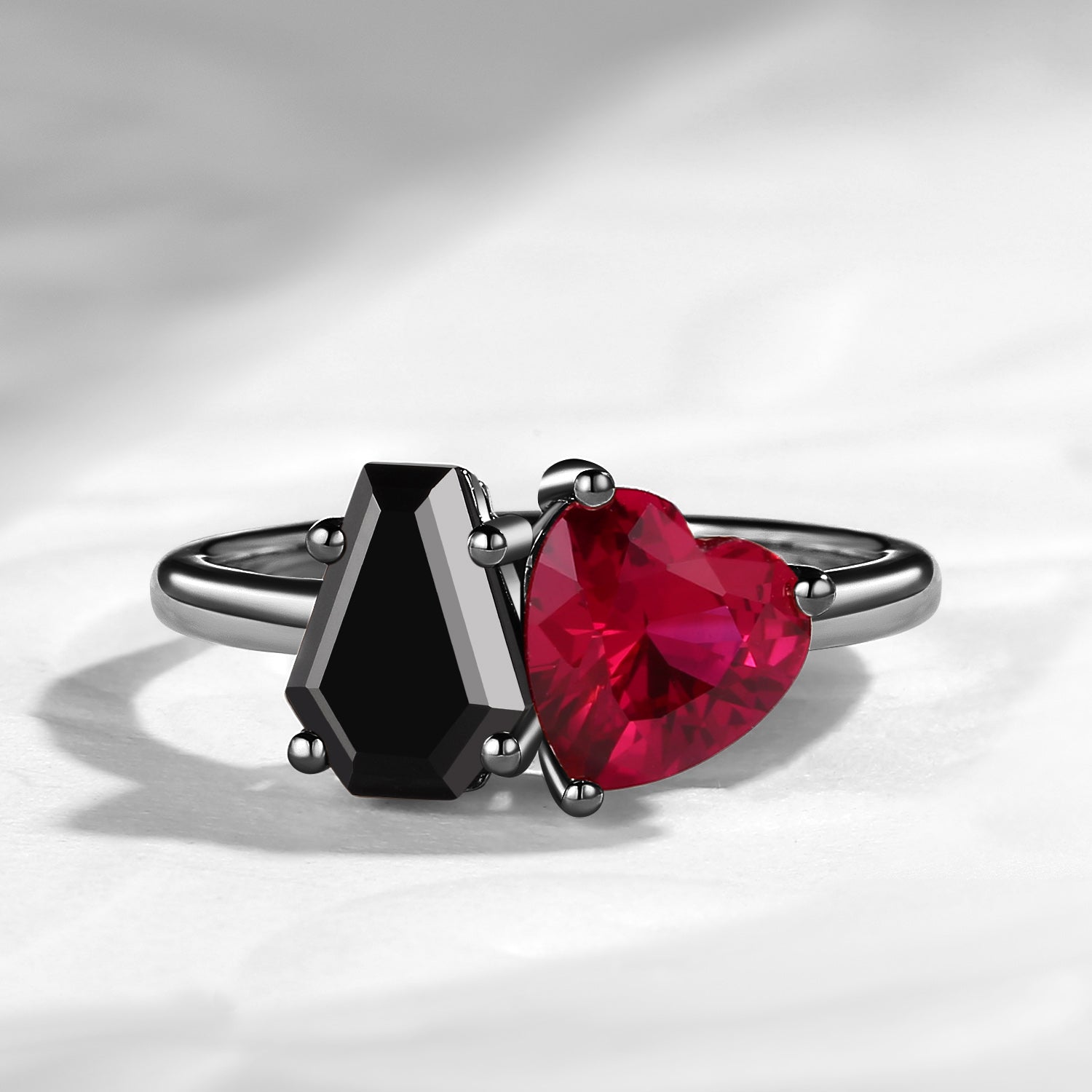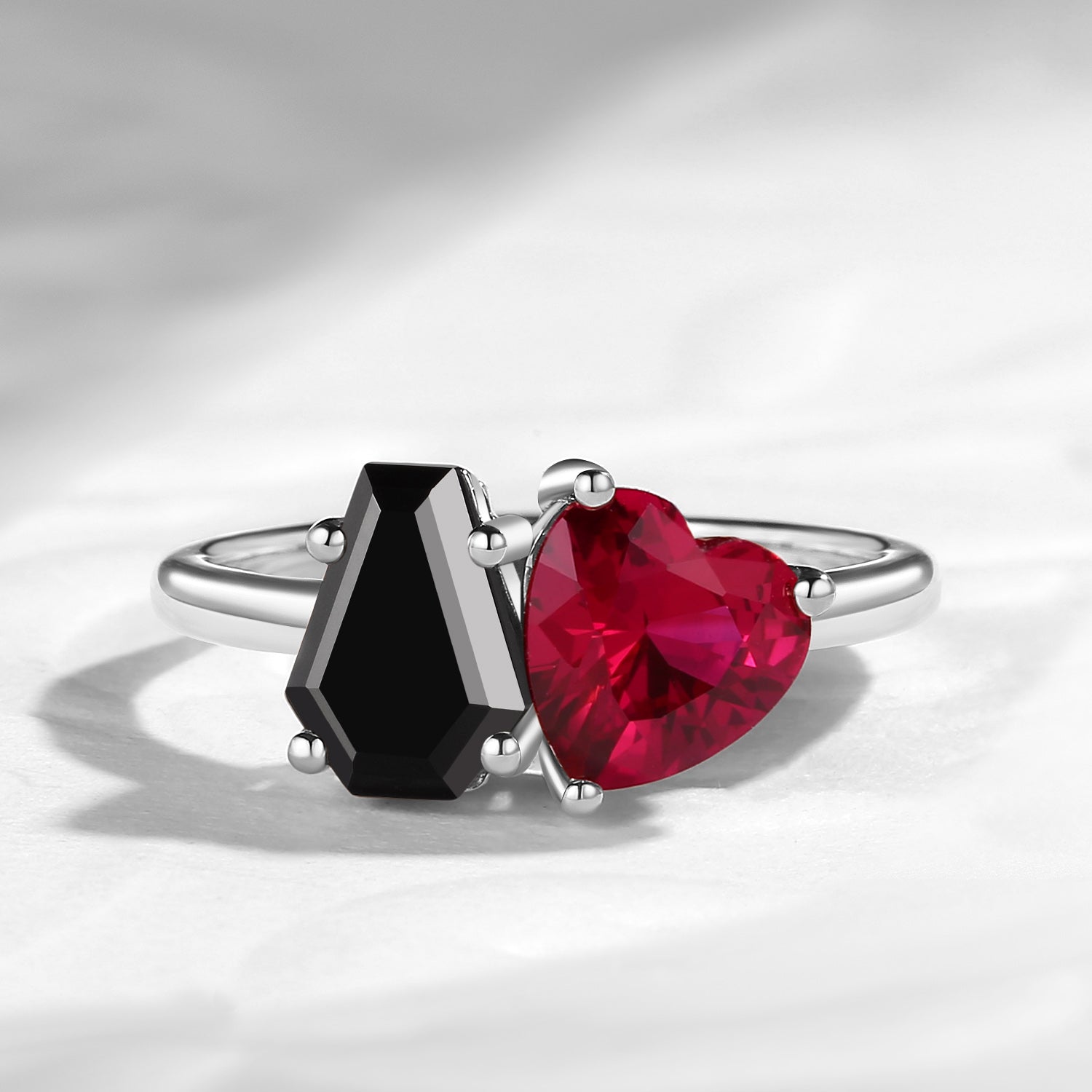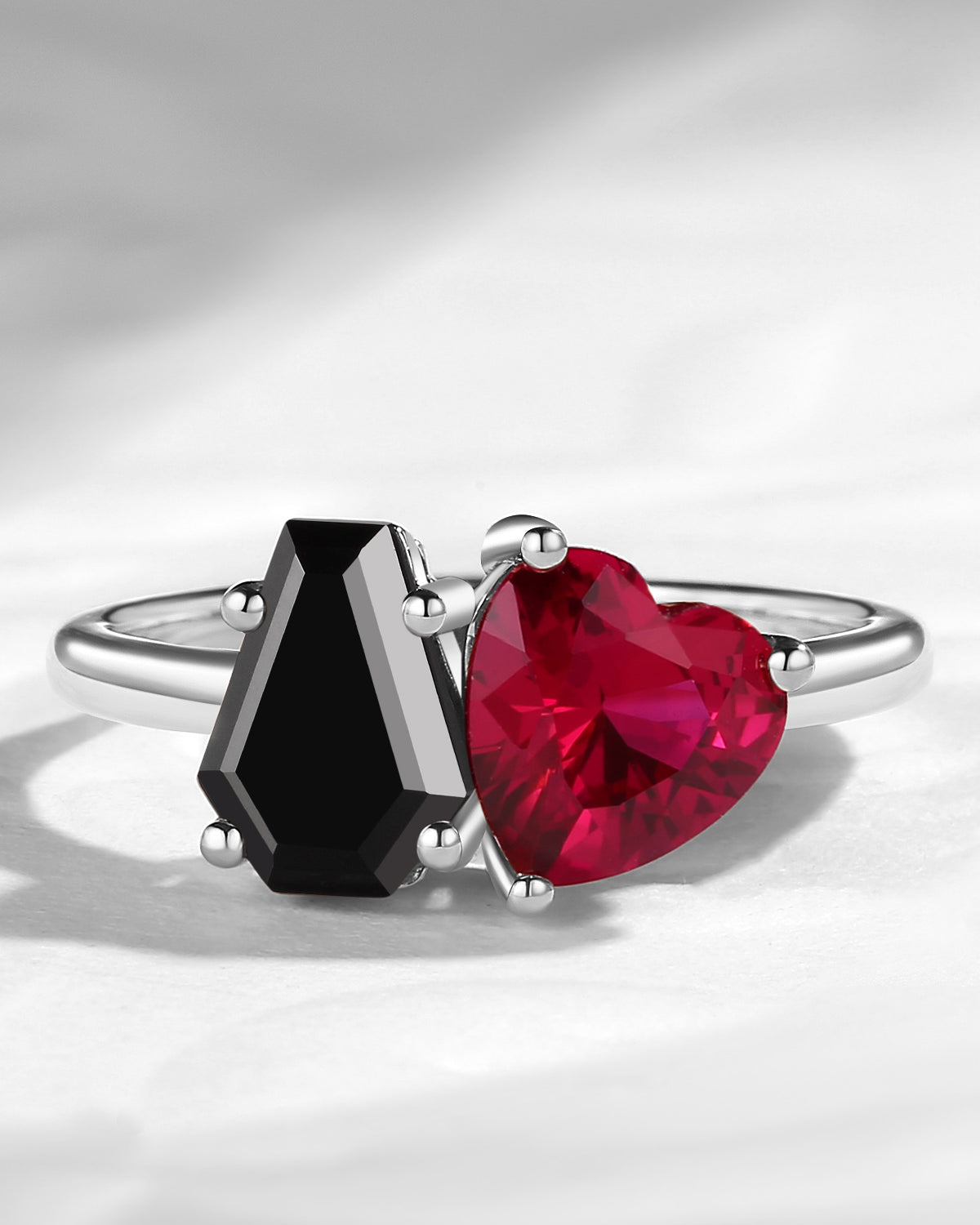 Crescent Moon | Heart Shaped Lab Ruby Engagement Ring Set 2pcs - Alexandria