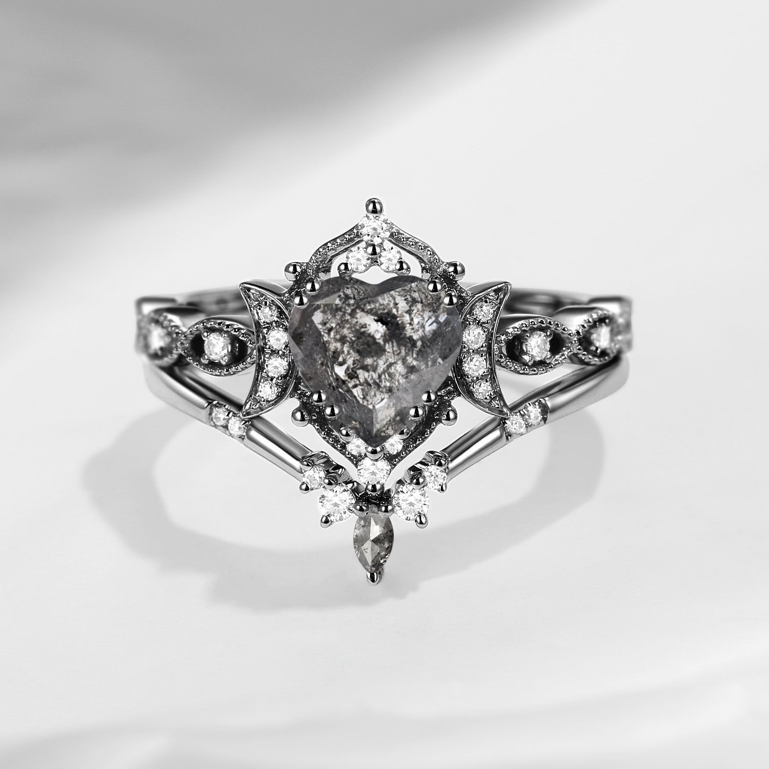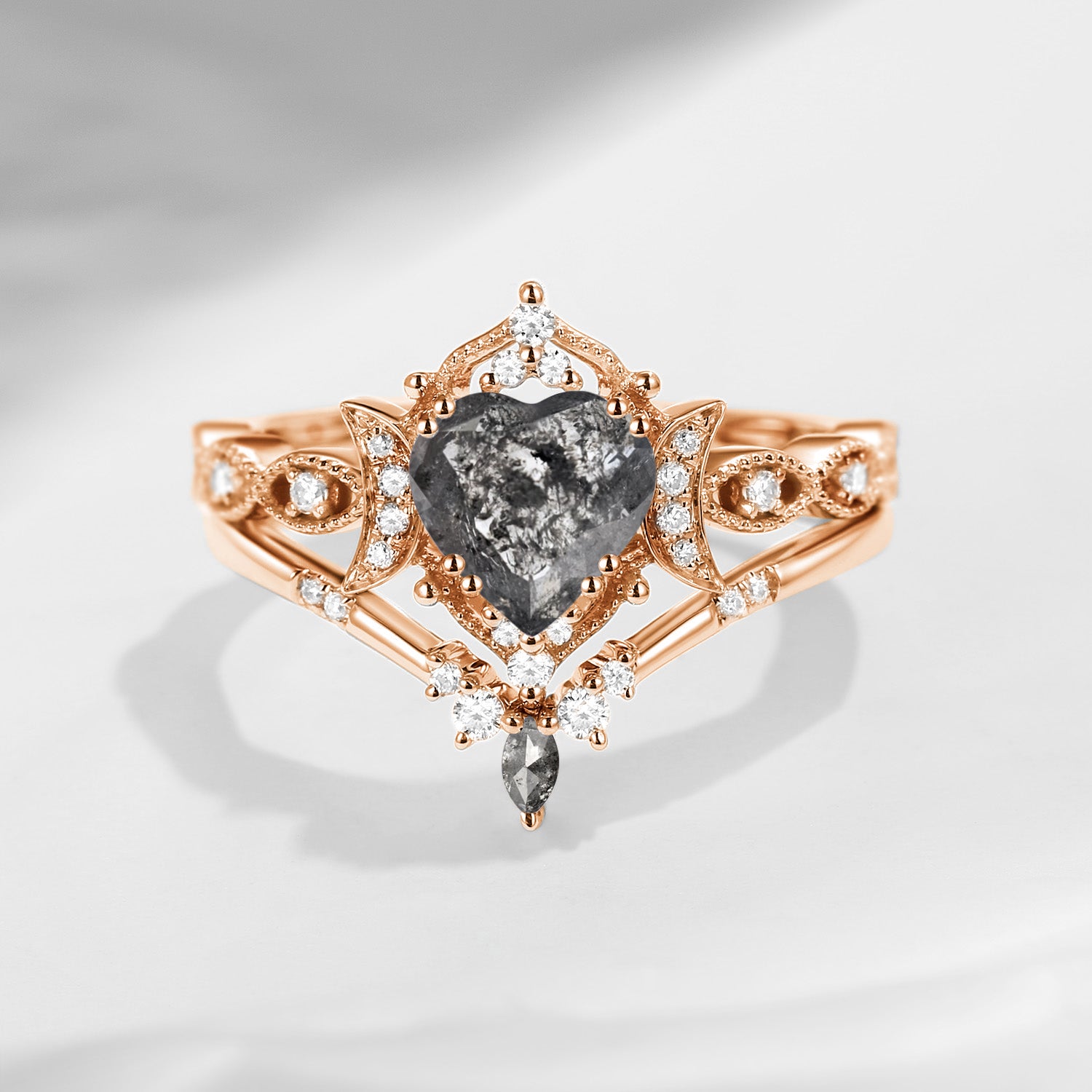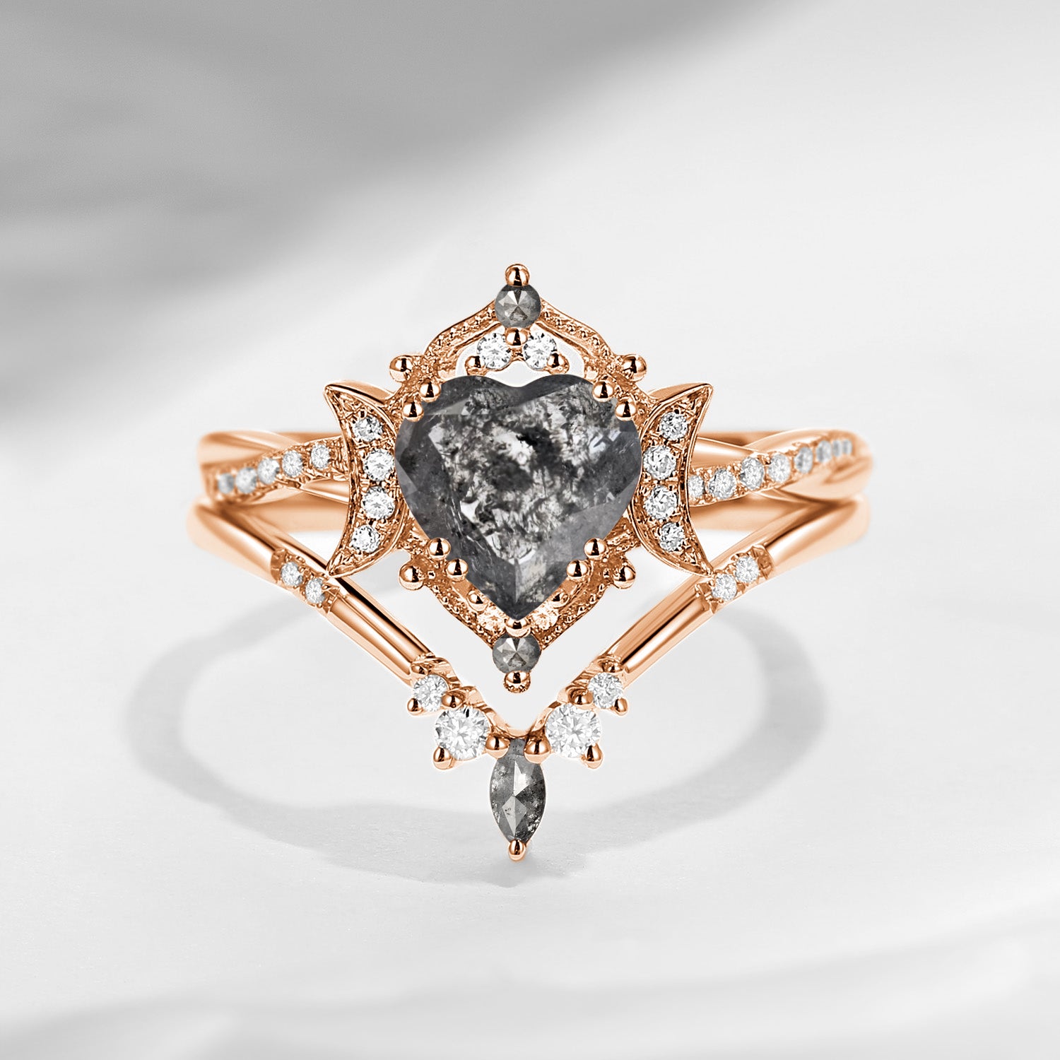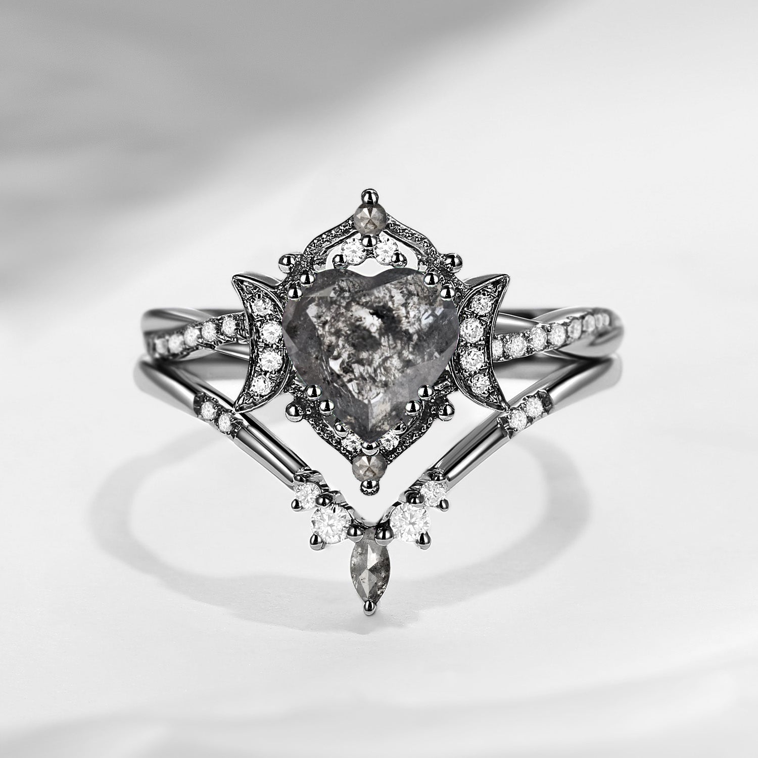 Crescent Moon | Heart Shaped Moonstone Engagement Ring Set 2pcs - Alexandria