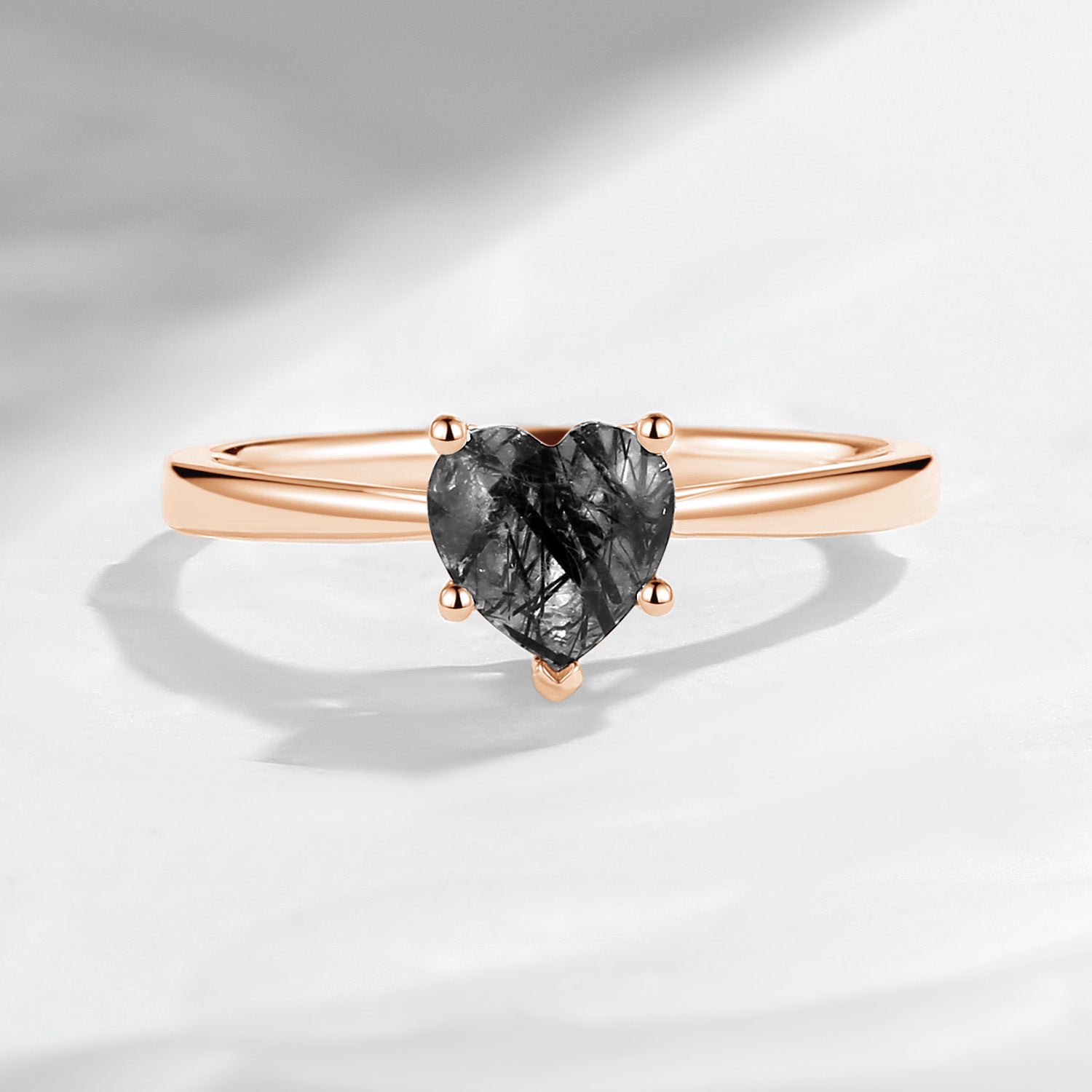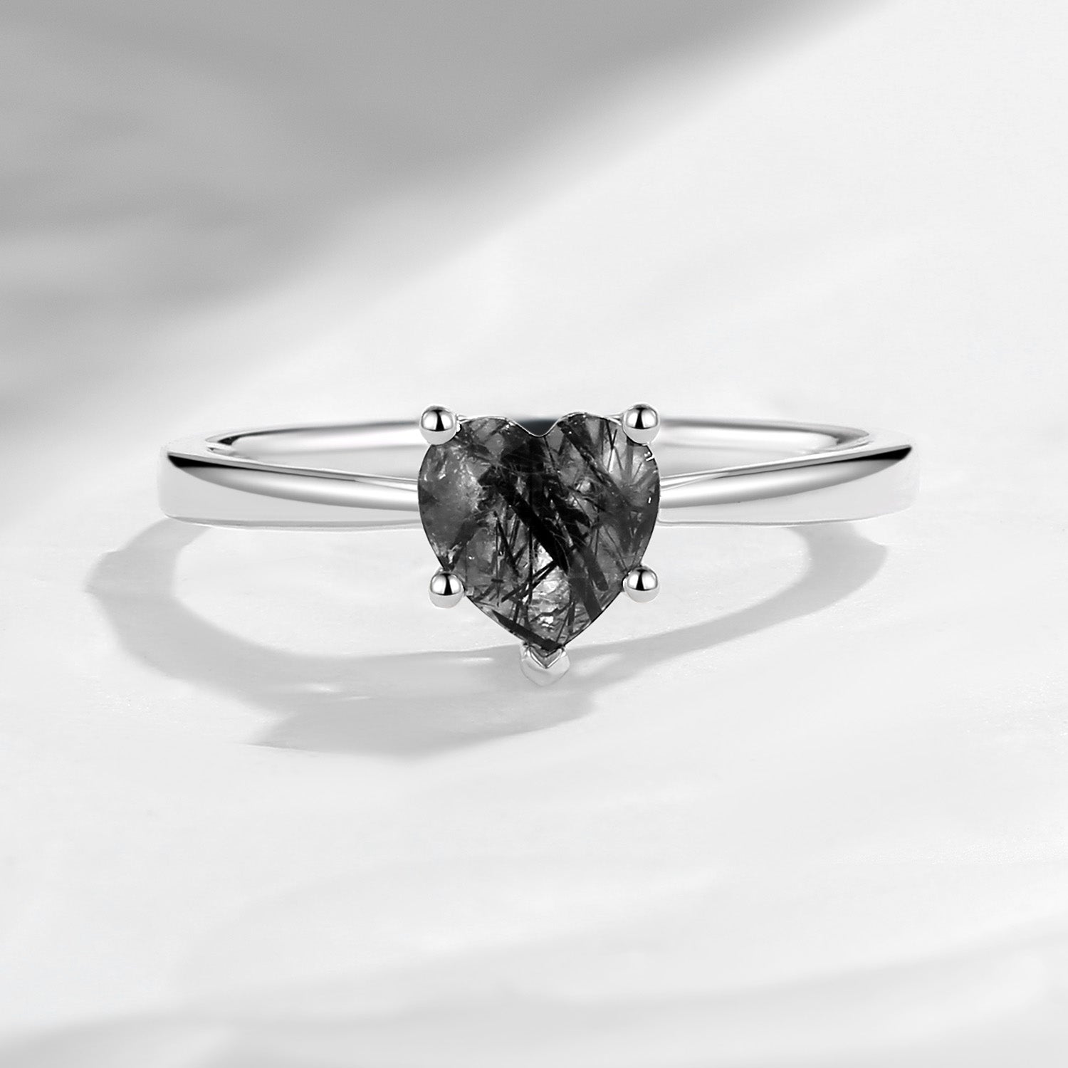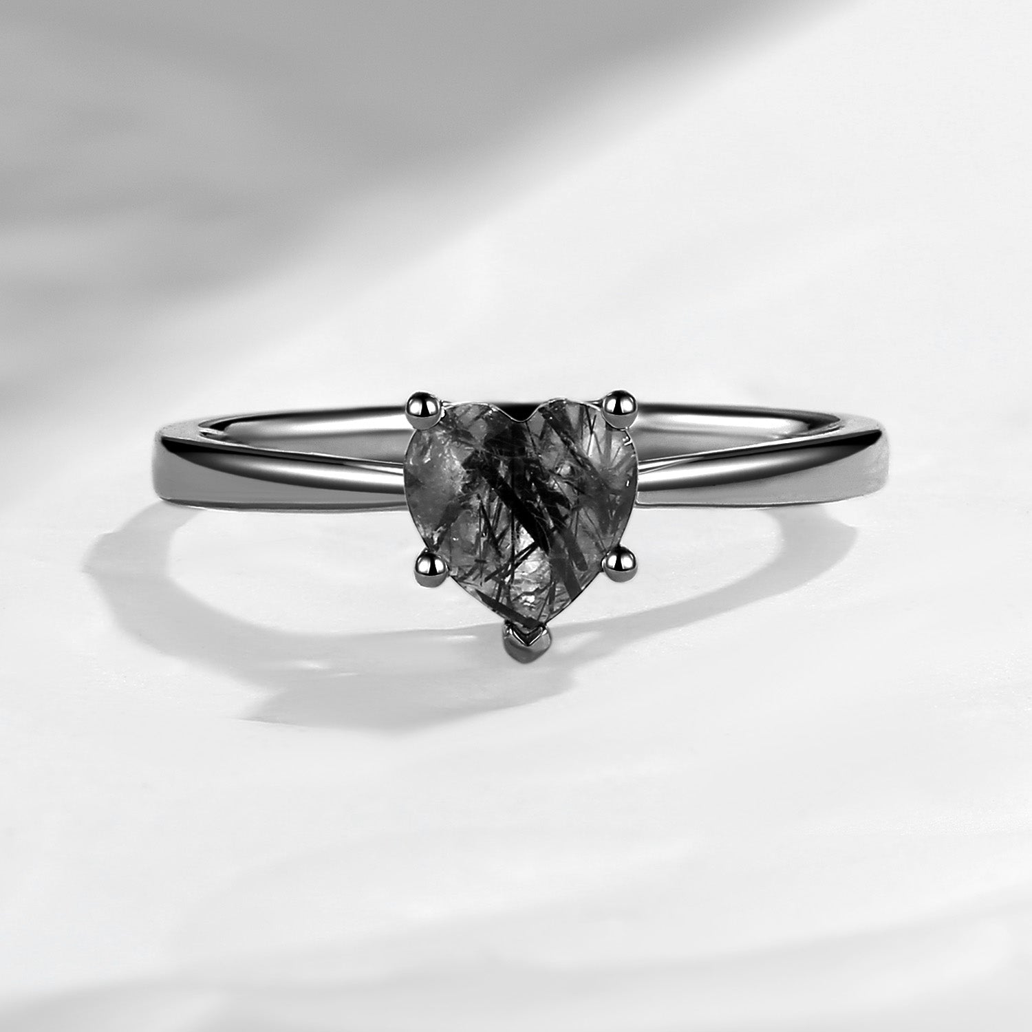 Classic Heart Shaped Solitaire Black Rutilated Quartz Promise Ring
