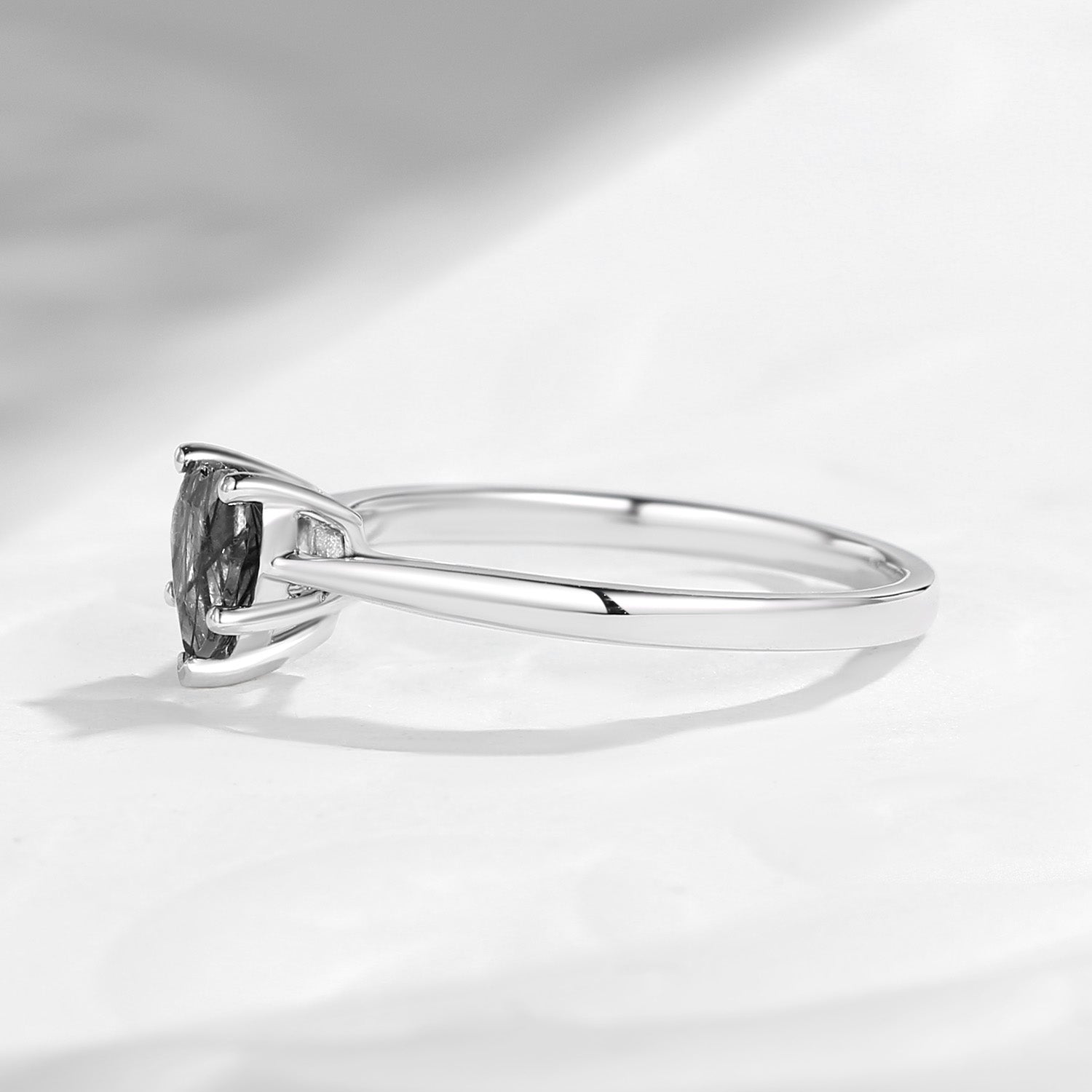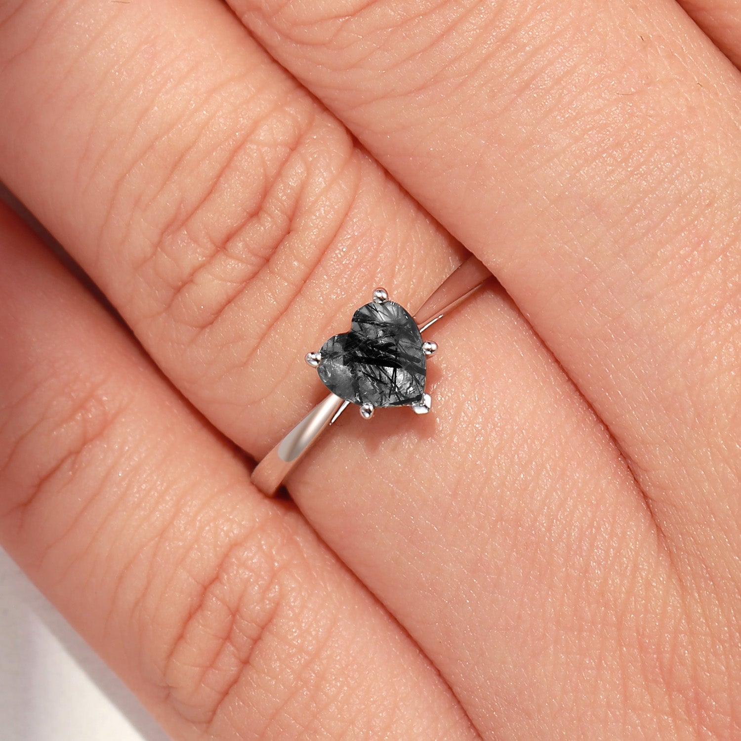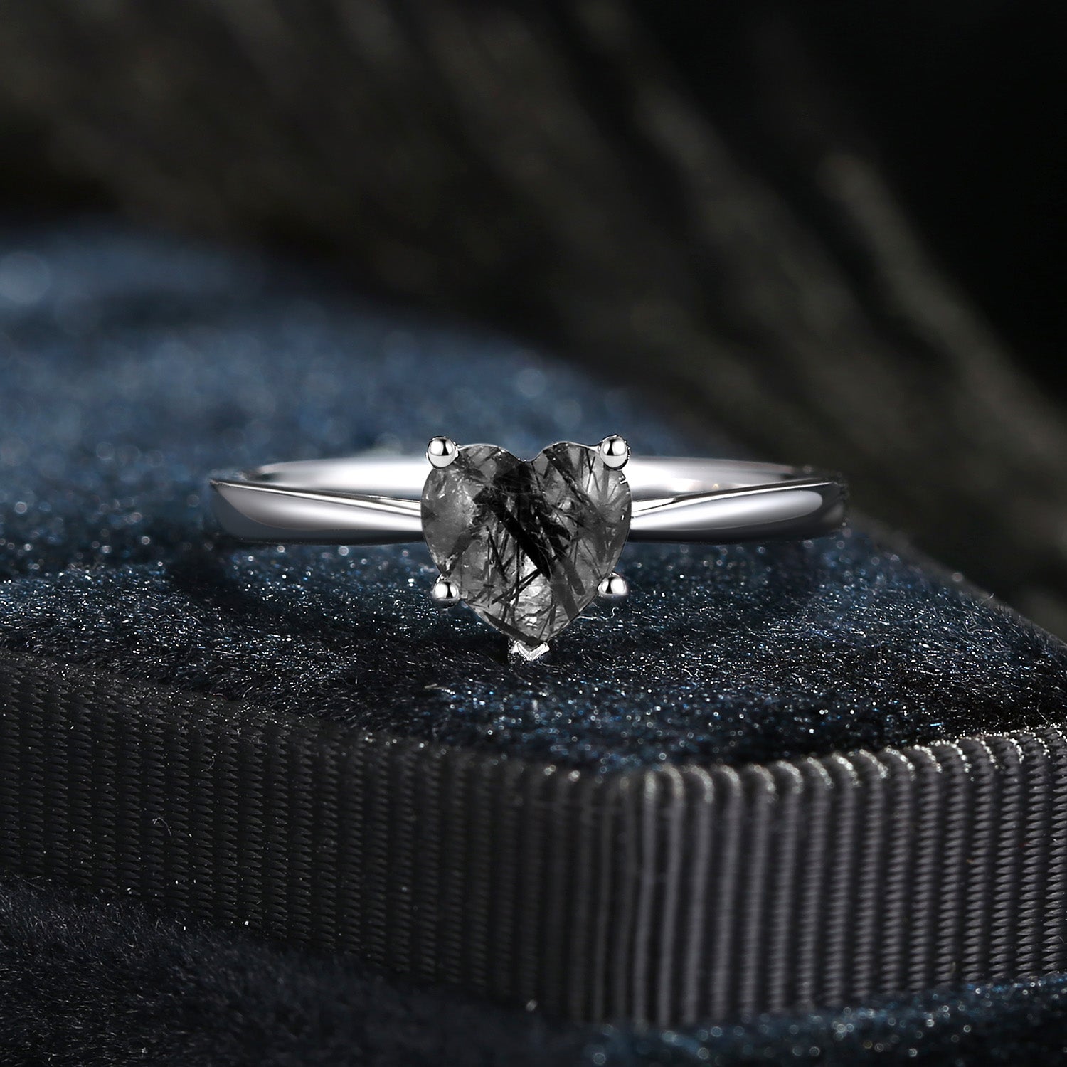 Classic Heart Shaped Solitaire Black Rutilated Quartz Promise Ring