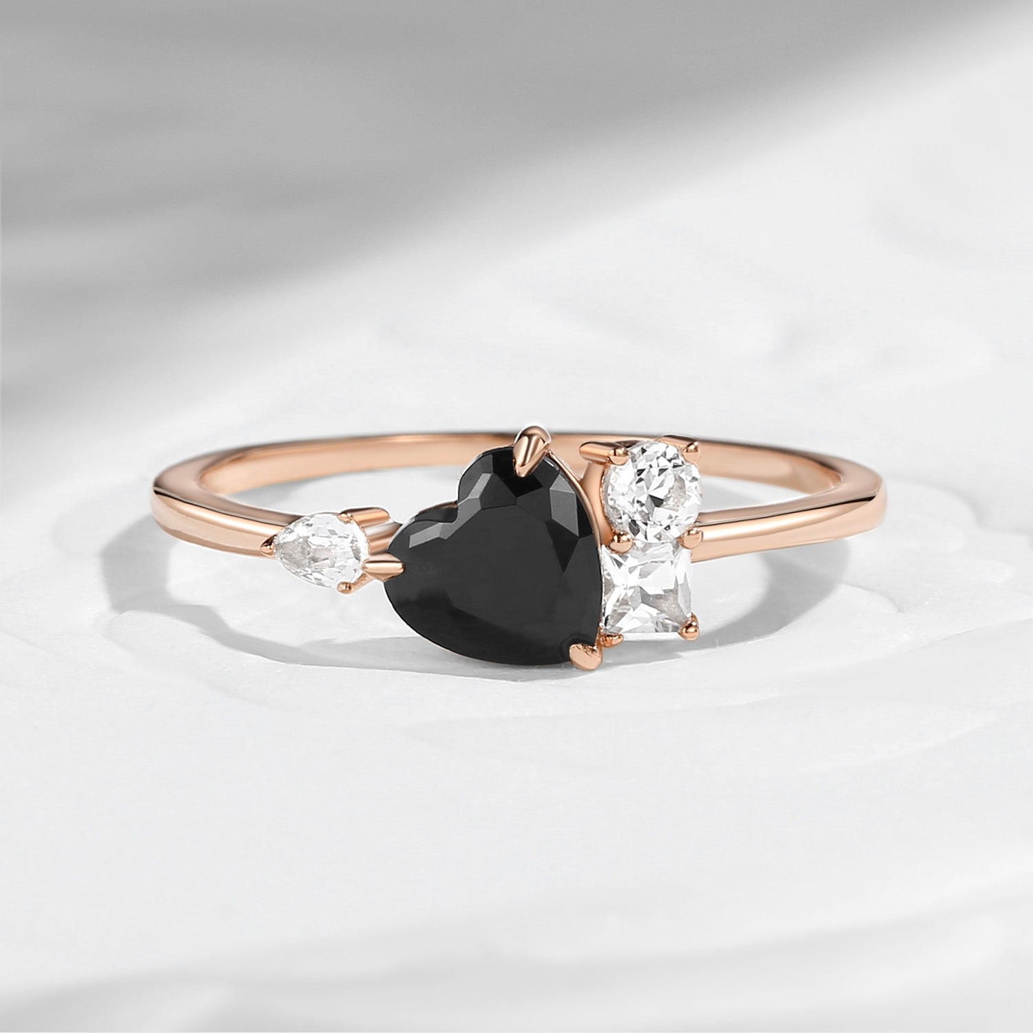 Dainty Three Stones Heart Shaped Black Moissanite Promise Ring
