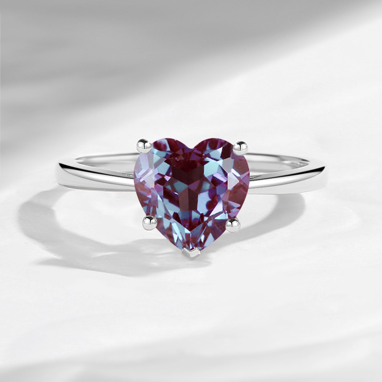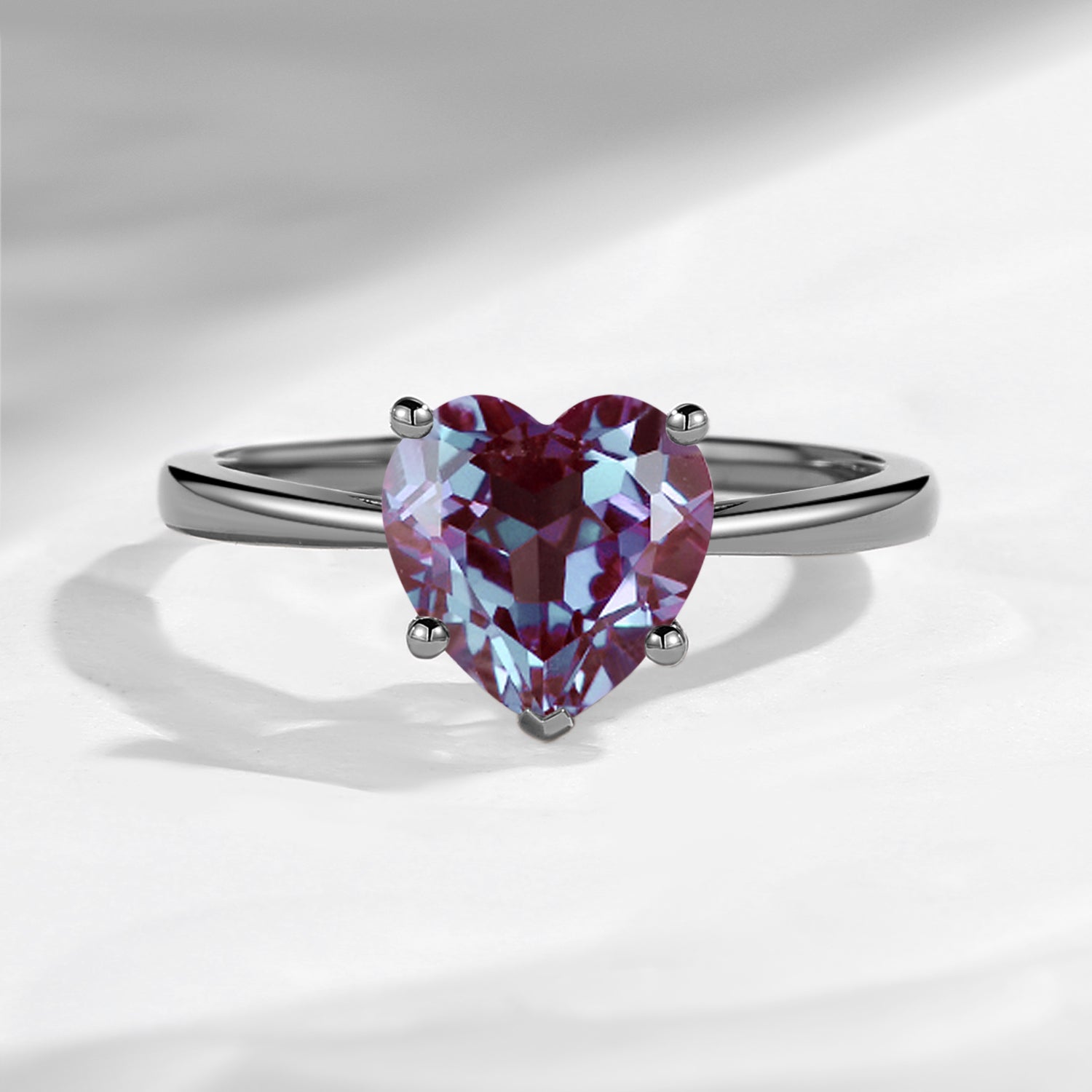 Classic Heart Shaped Solitaire Lab Alexandrite Promise Engagement Ring