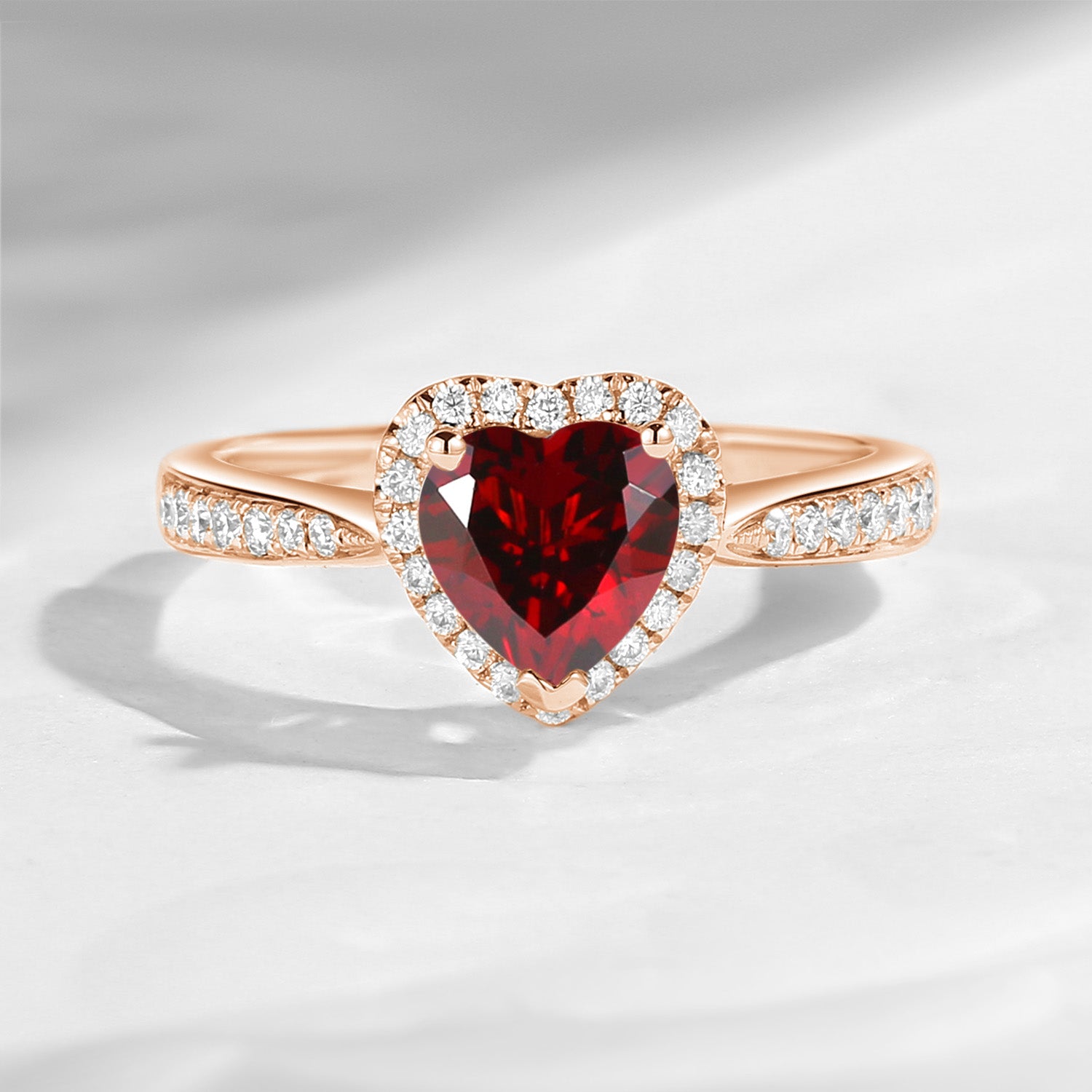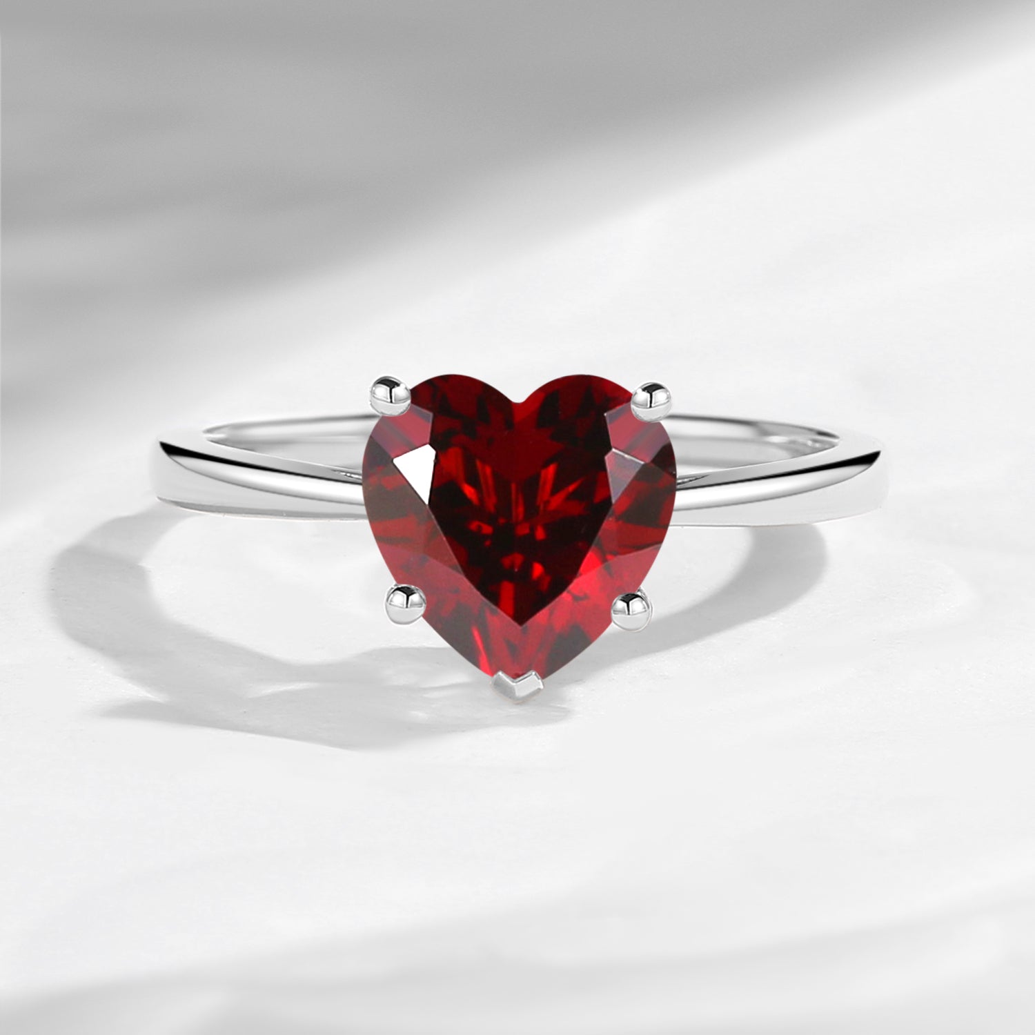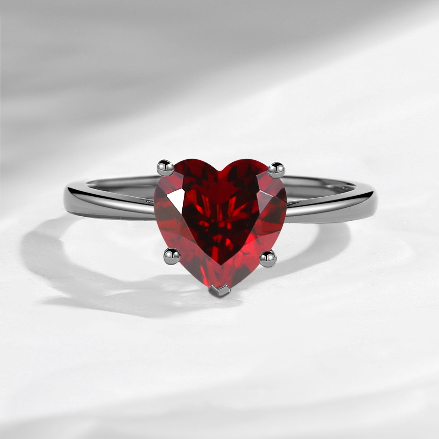 Classic Heart Shaped Solitaire Garnet Promise Engagement Ring