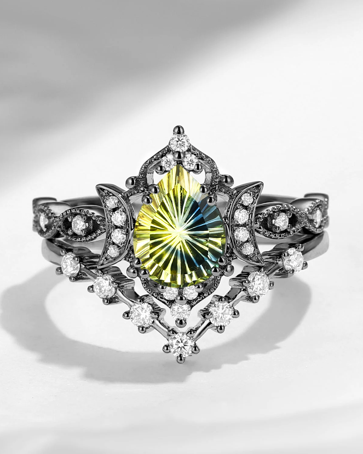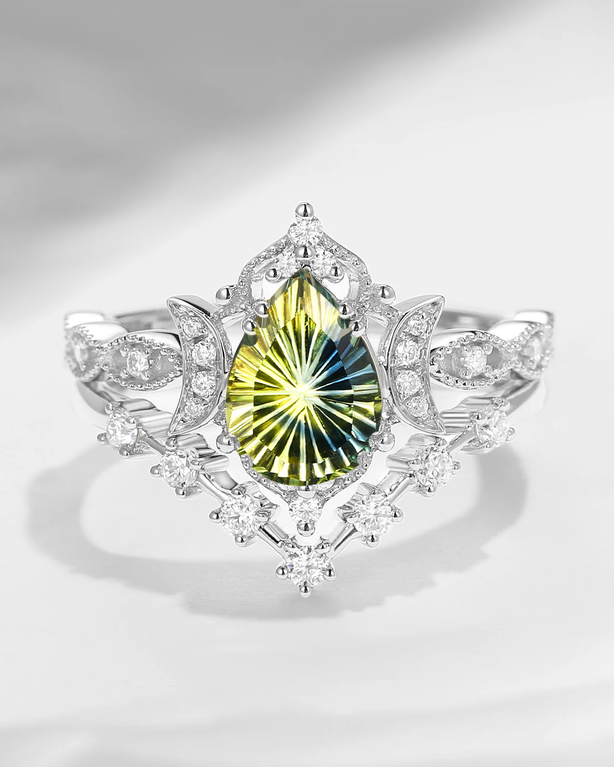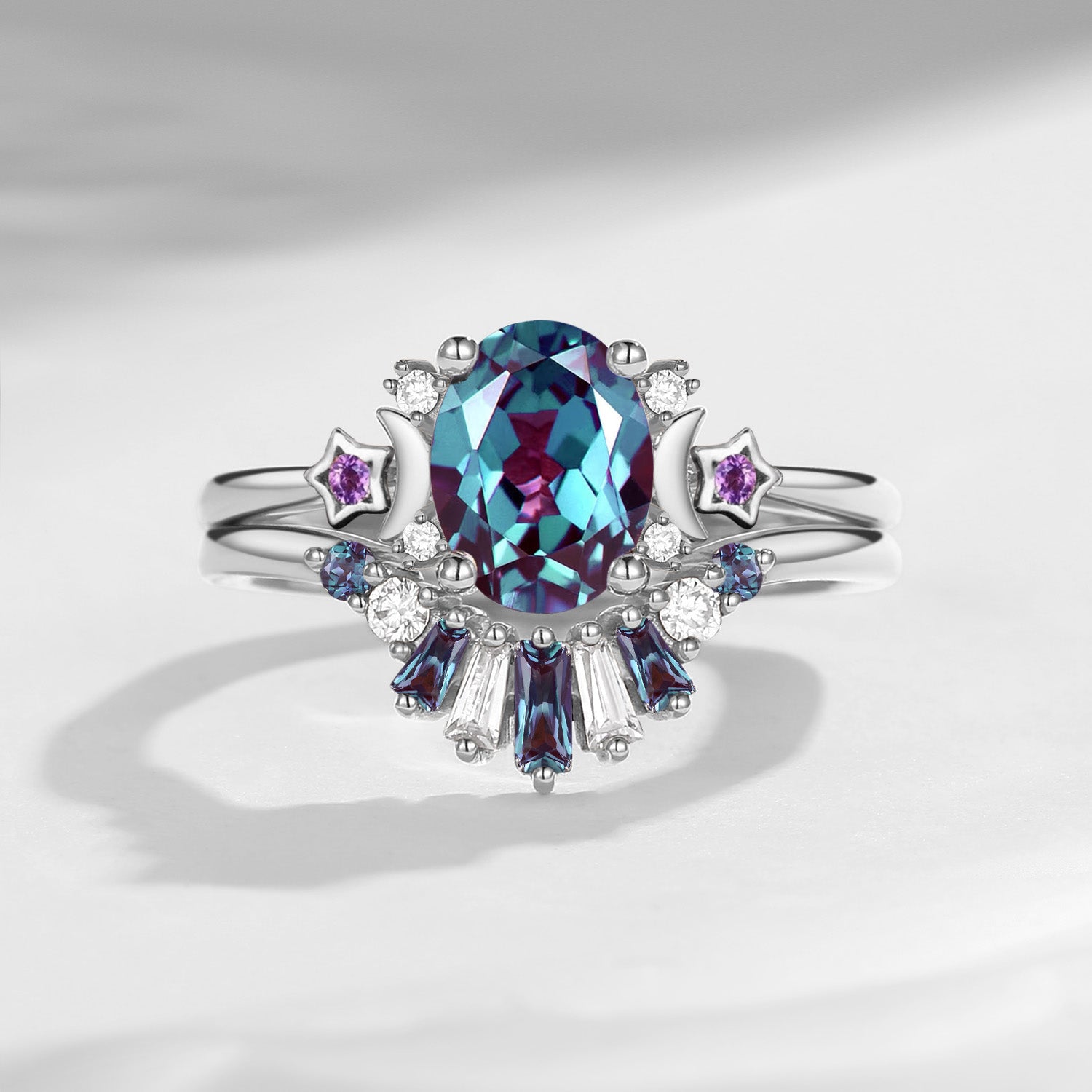 Pure Moon | Fancy Oval Cut Lab Alexandrite Deco Star Engagement Ring Set 2pcs