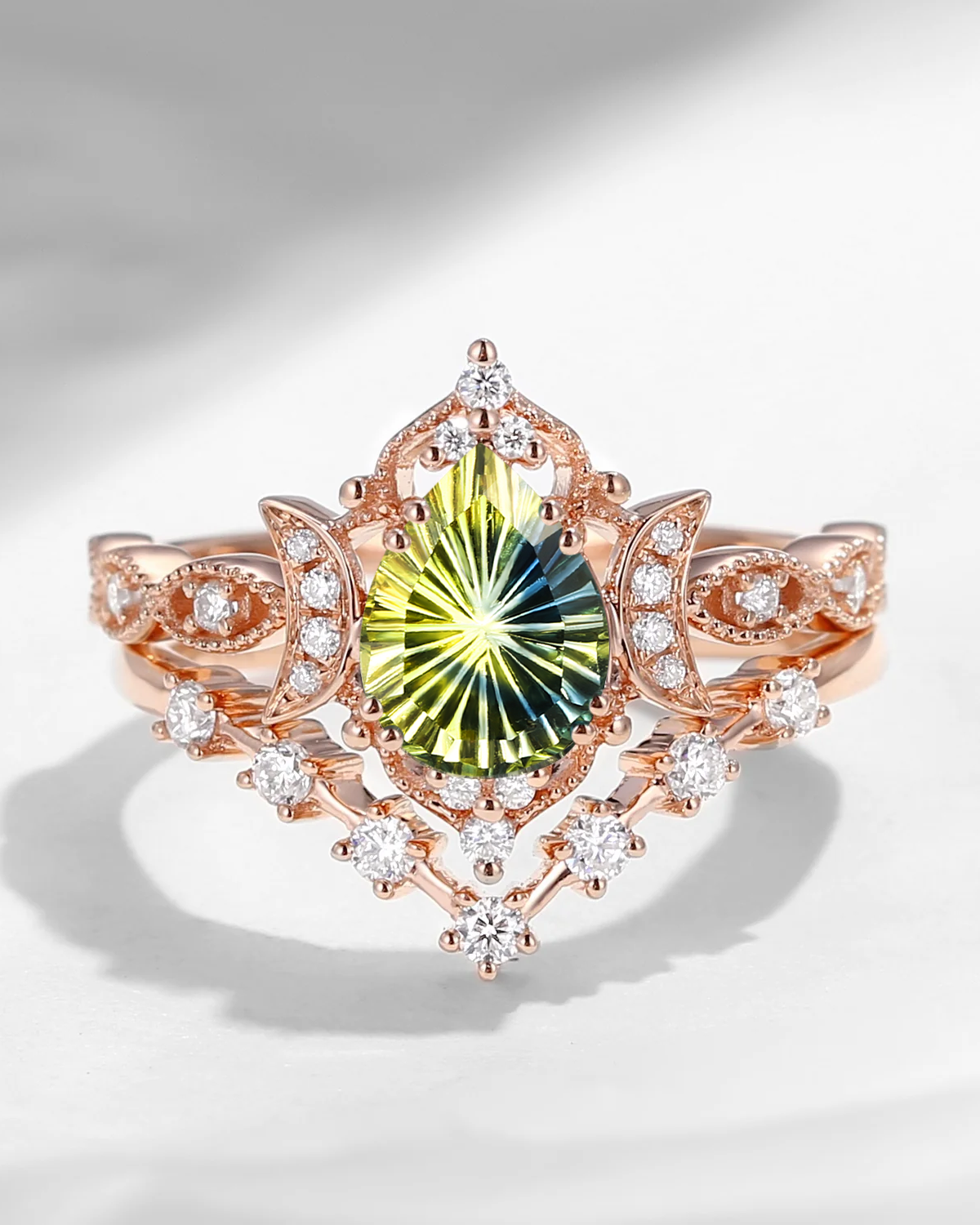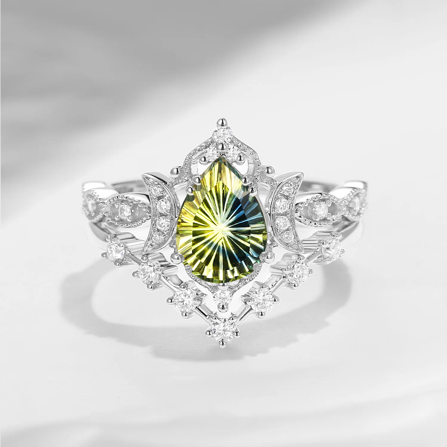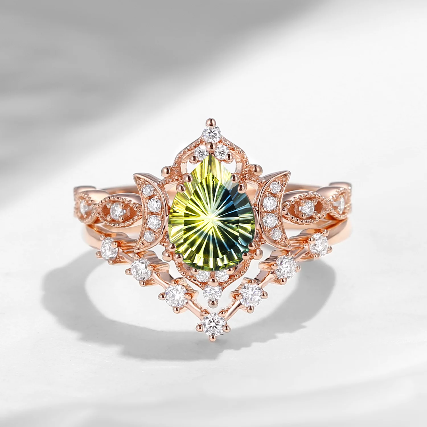 Pure Moon | Fancy Oval Cut Lab Alexandrite Deco Star Engagement Ring Set 2pcs