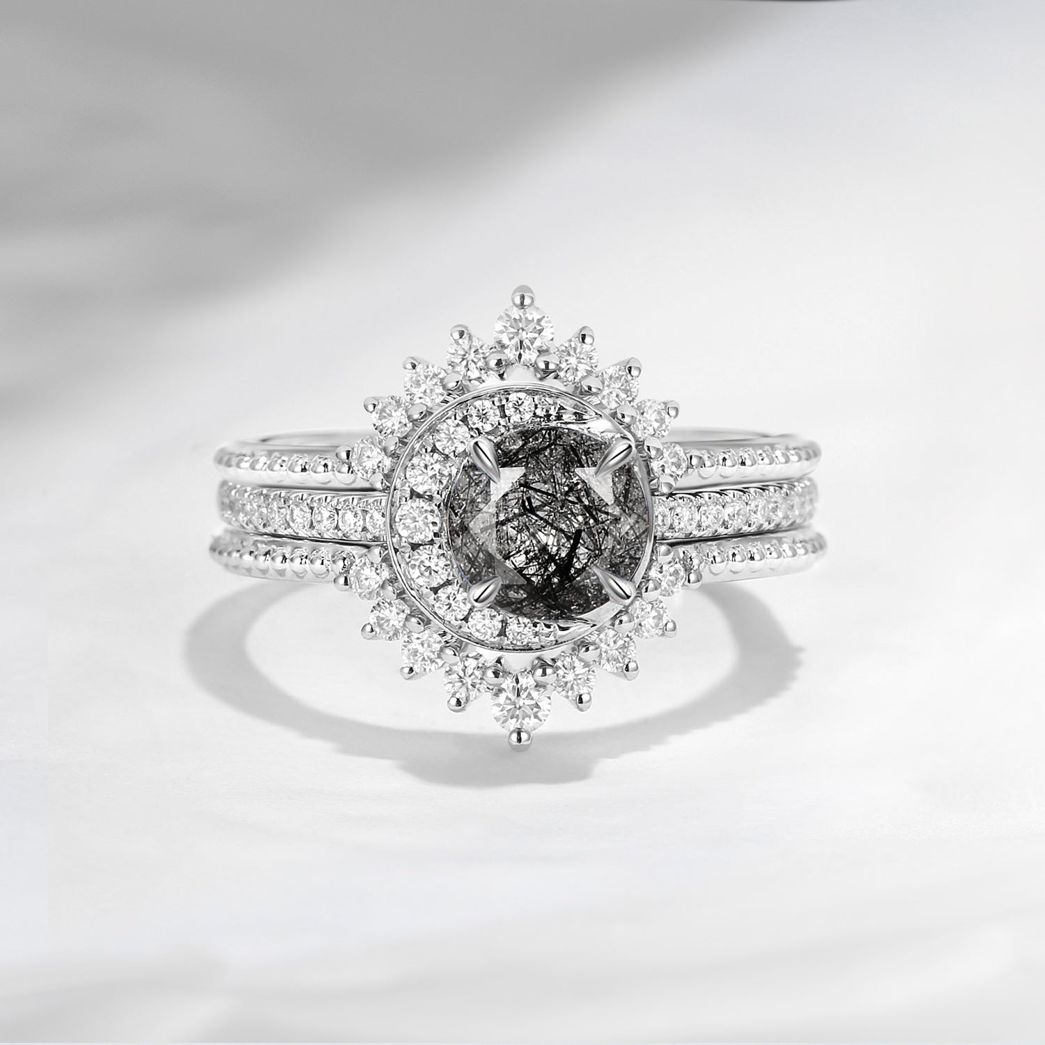 Firework Cut Natural Teal Sapphire Engagement Ring Set 2pcs - Ultra Galaxy