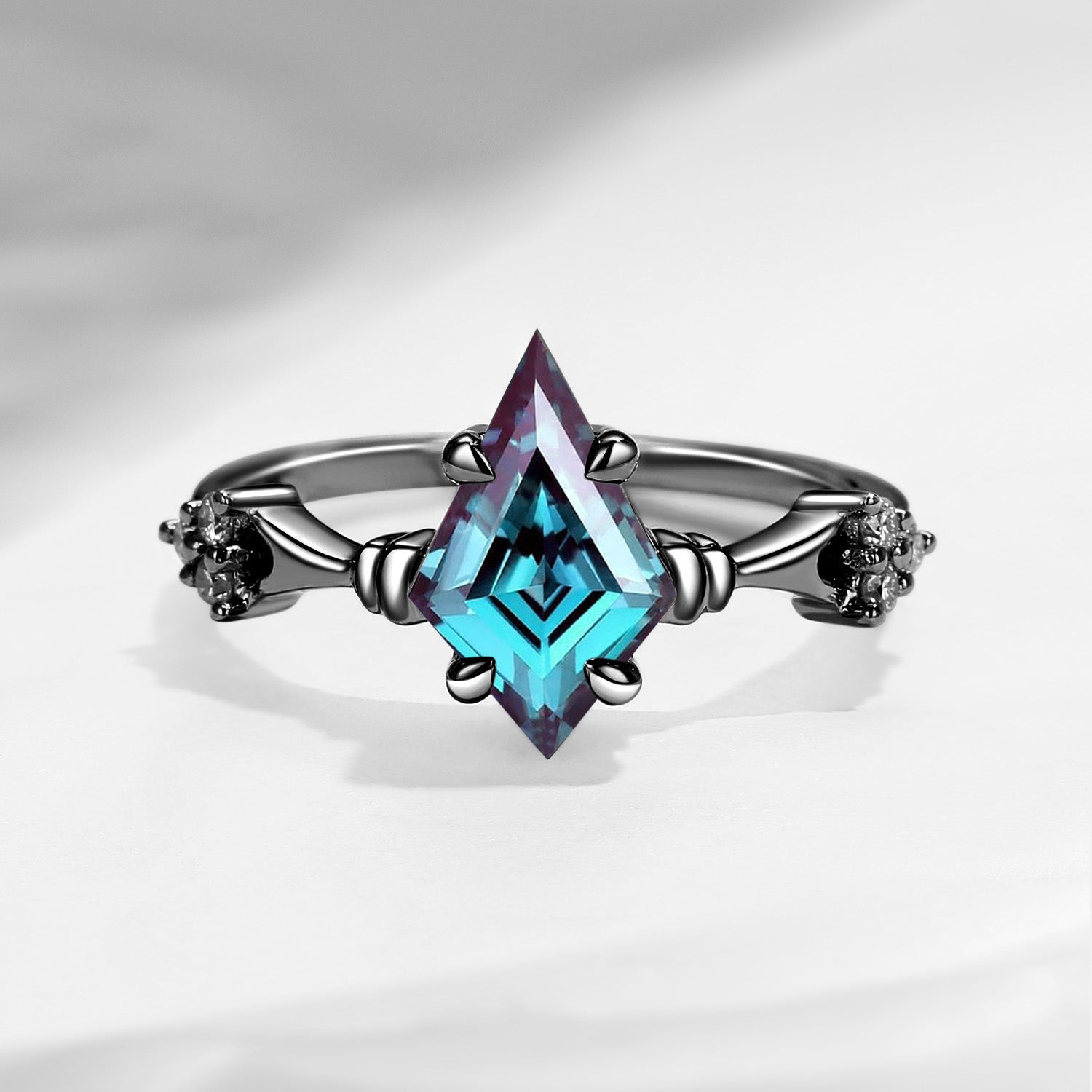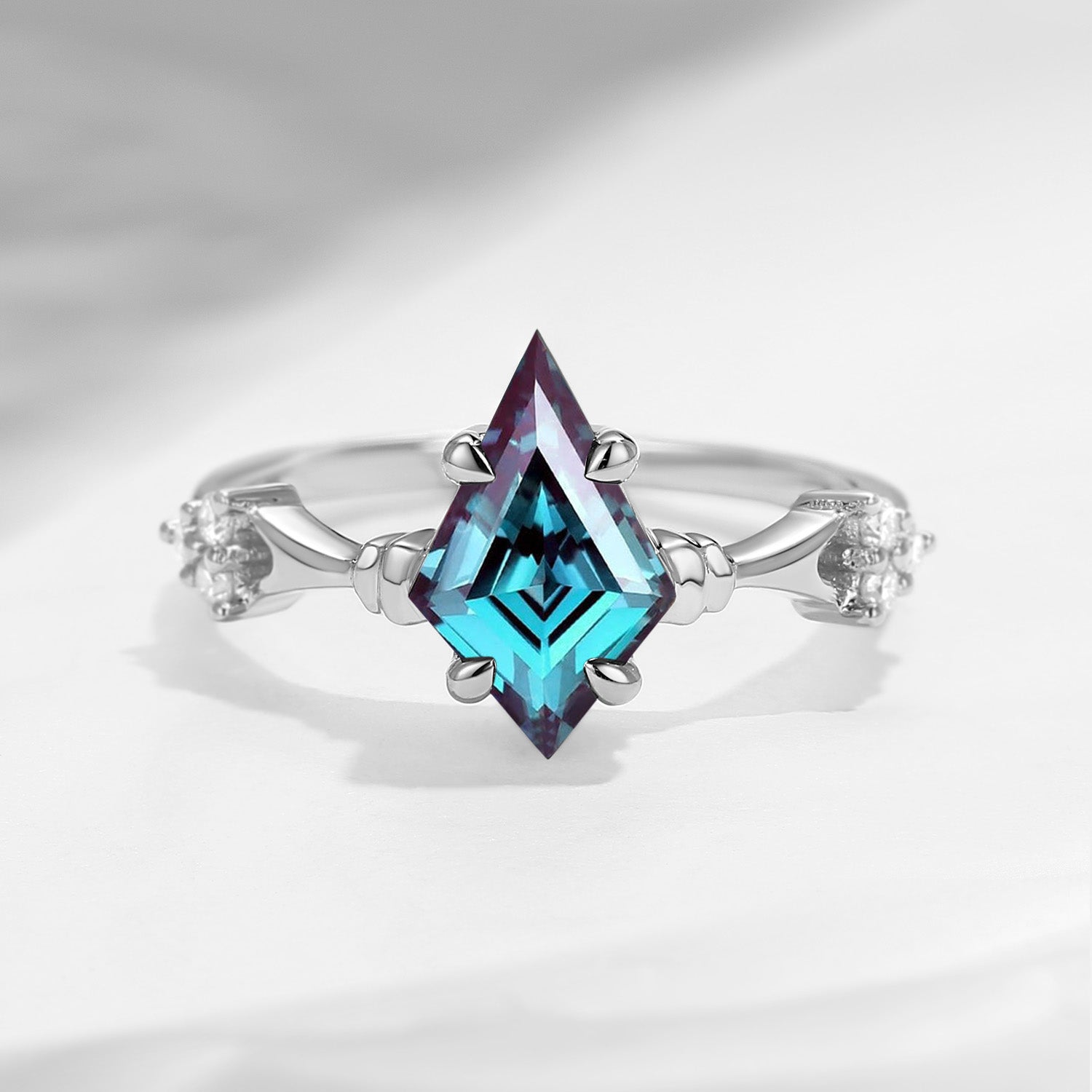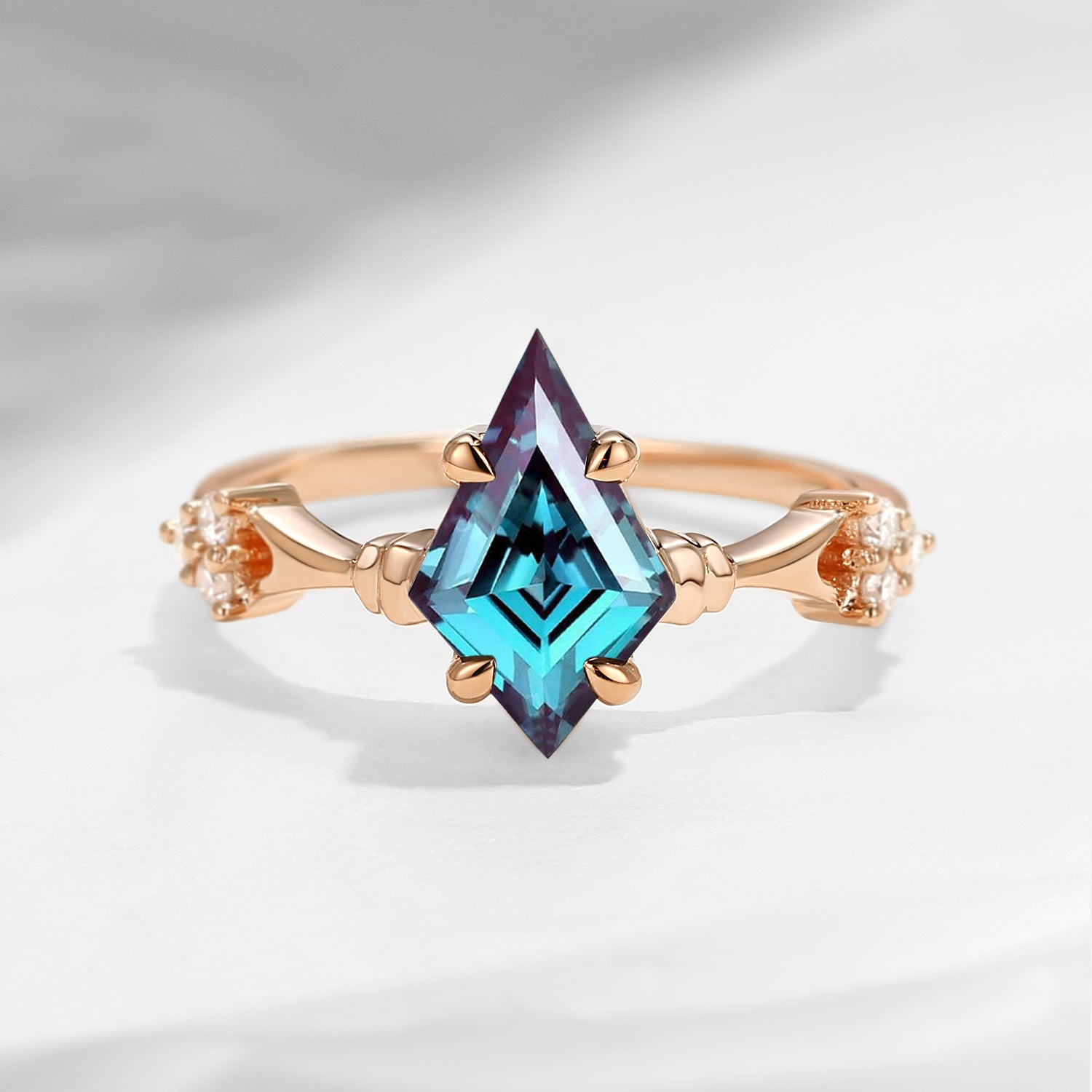 Vintage Inspired Kite Cut Lab Alexandrite Engagement Ring