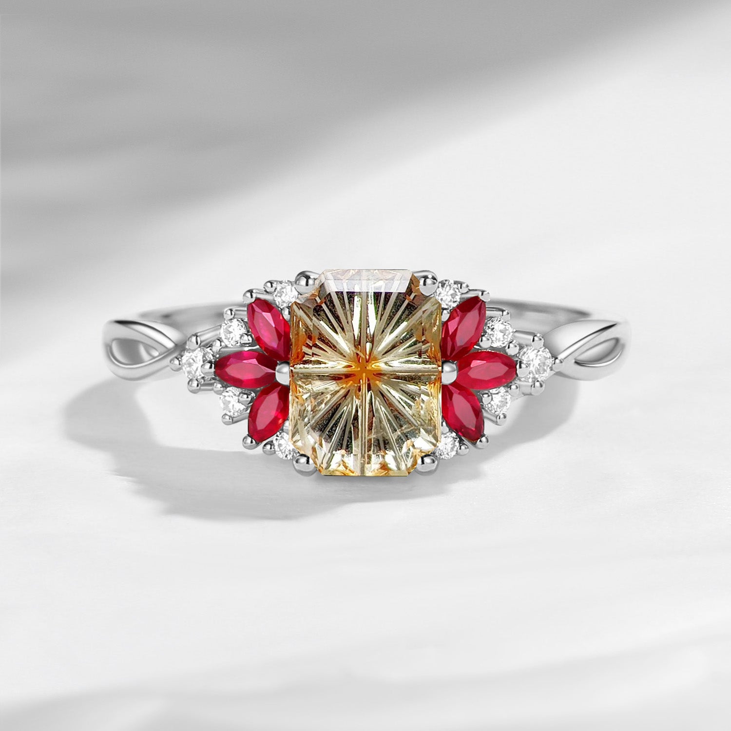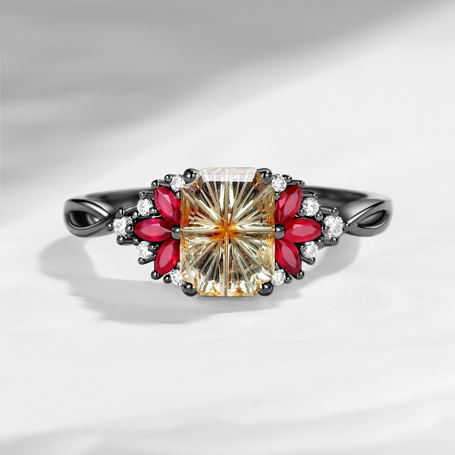 Cluster Emerald Fantasy Cut Natural Parti Sapphire Twist Engagement Ring