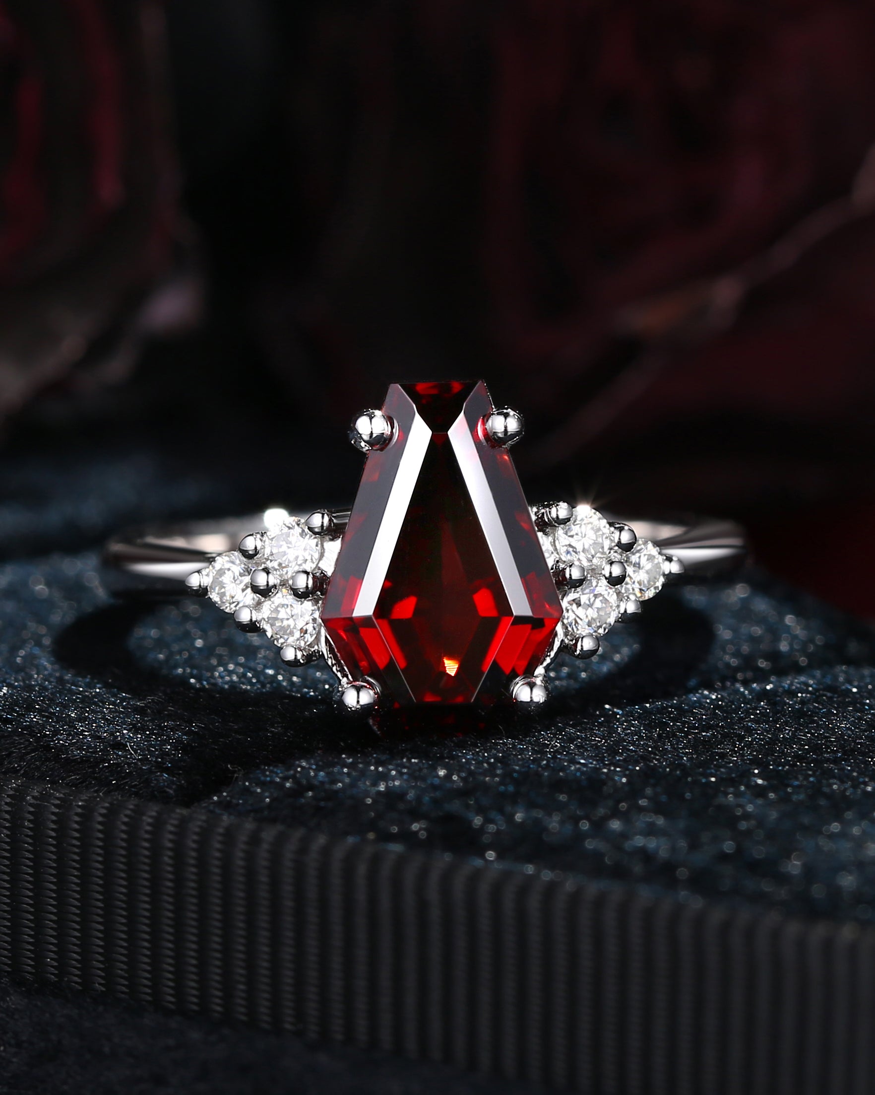 Cluster Coffin Shaped Garnet Classic Engagement Ring