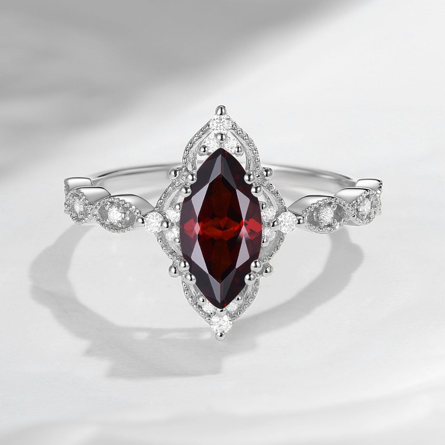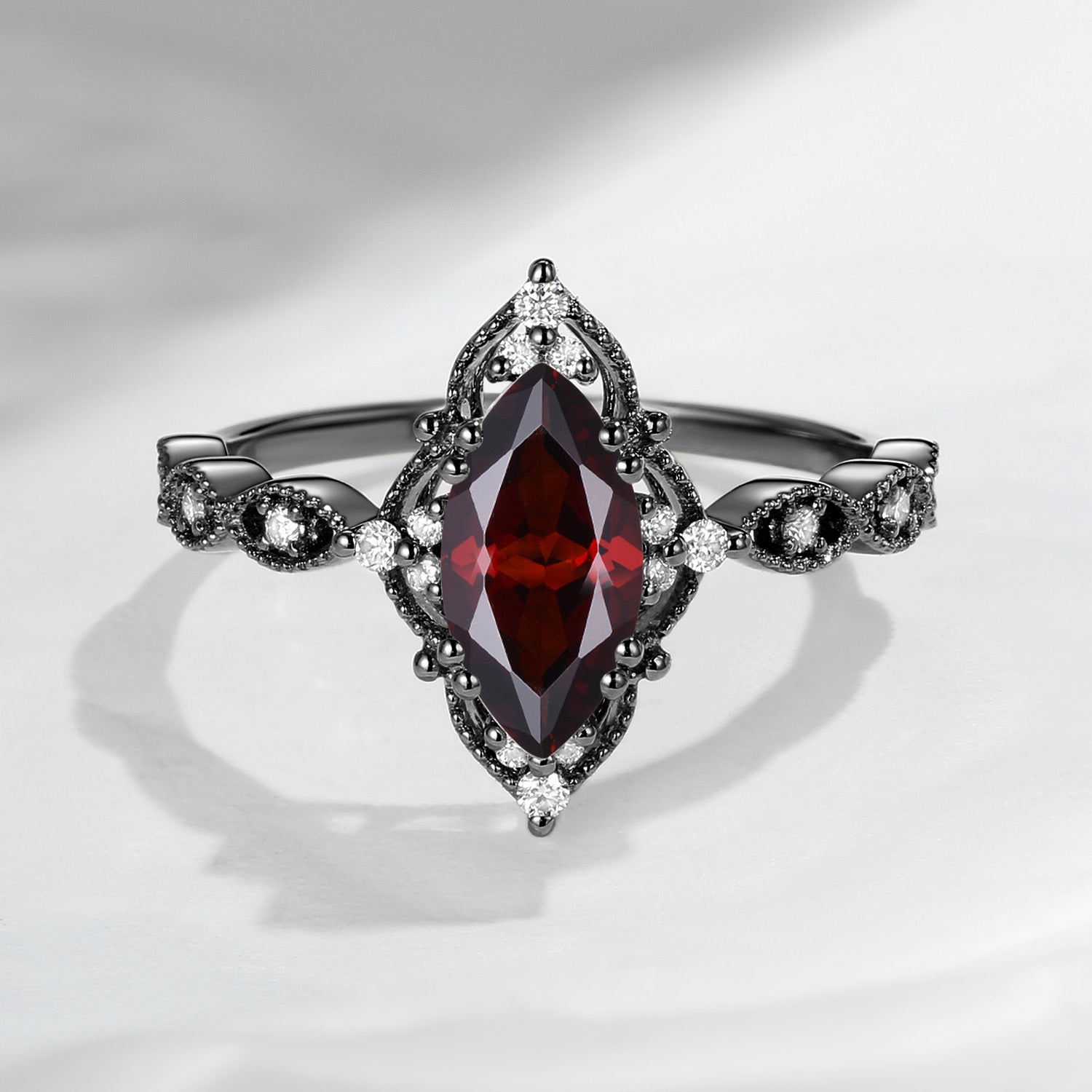 18K Unique Marquise Garnet Vintage Inspired Engagement Ring