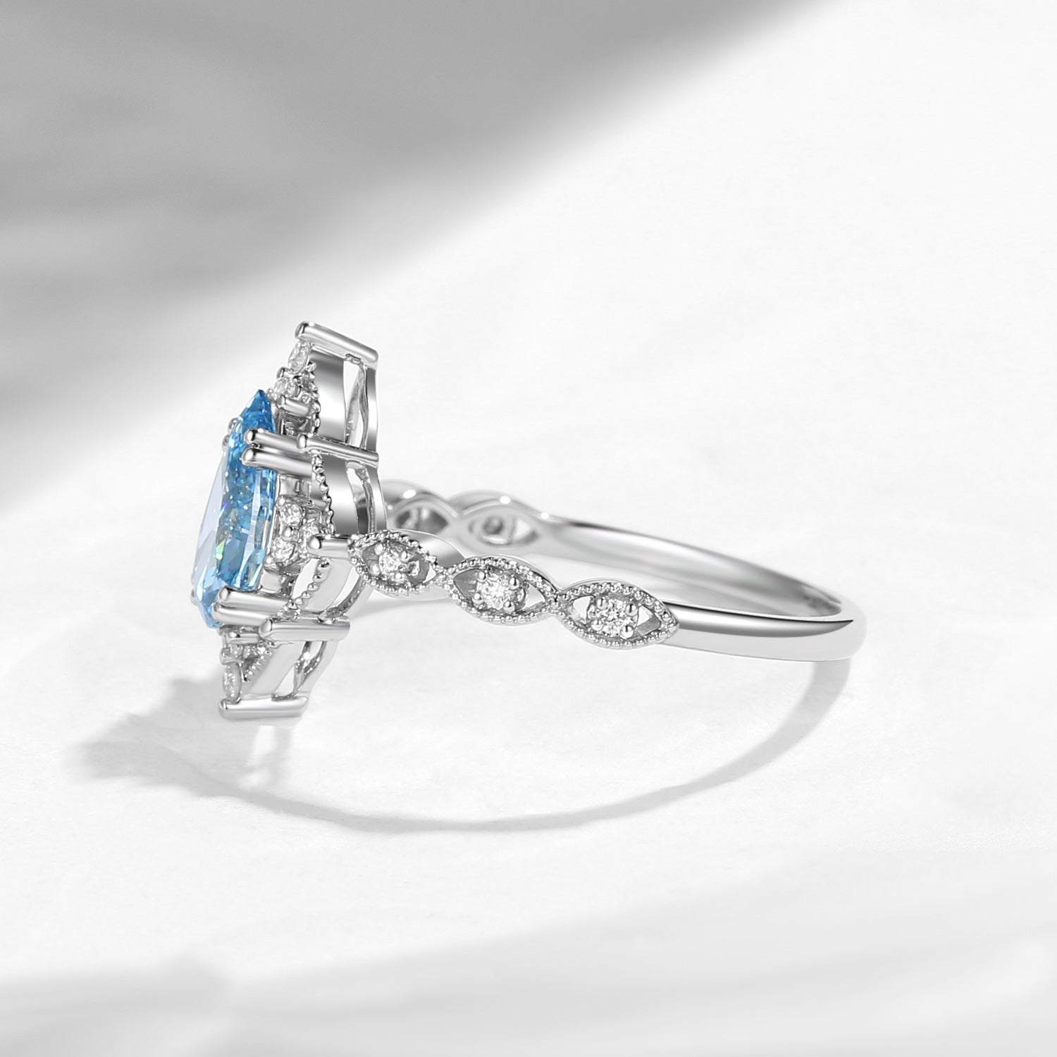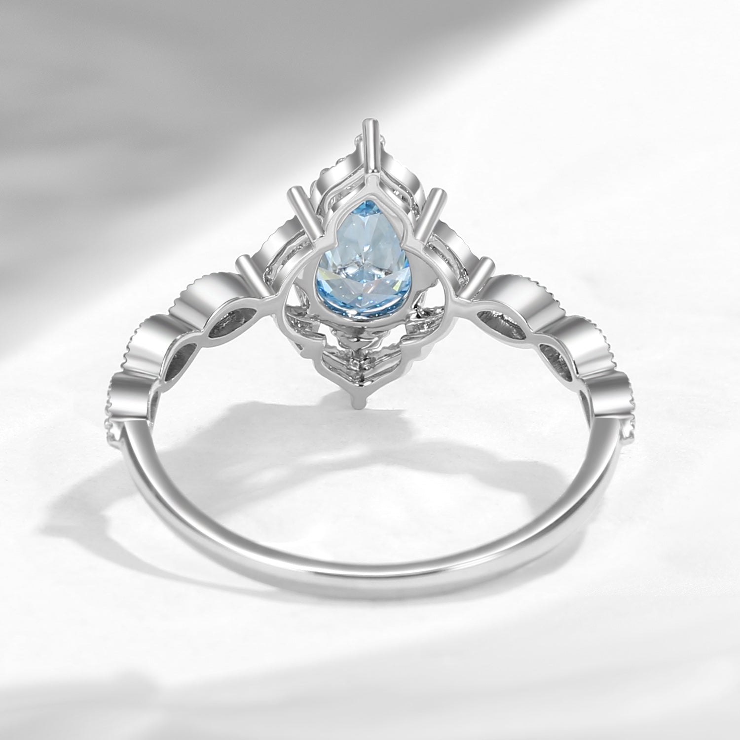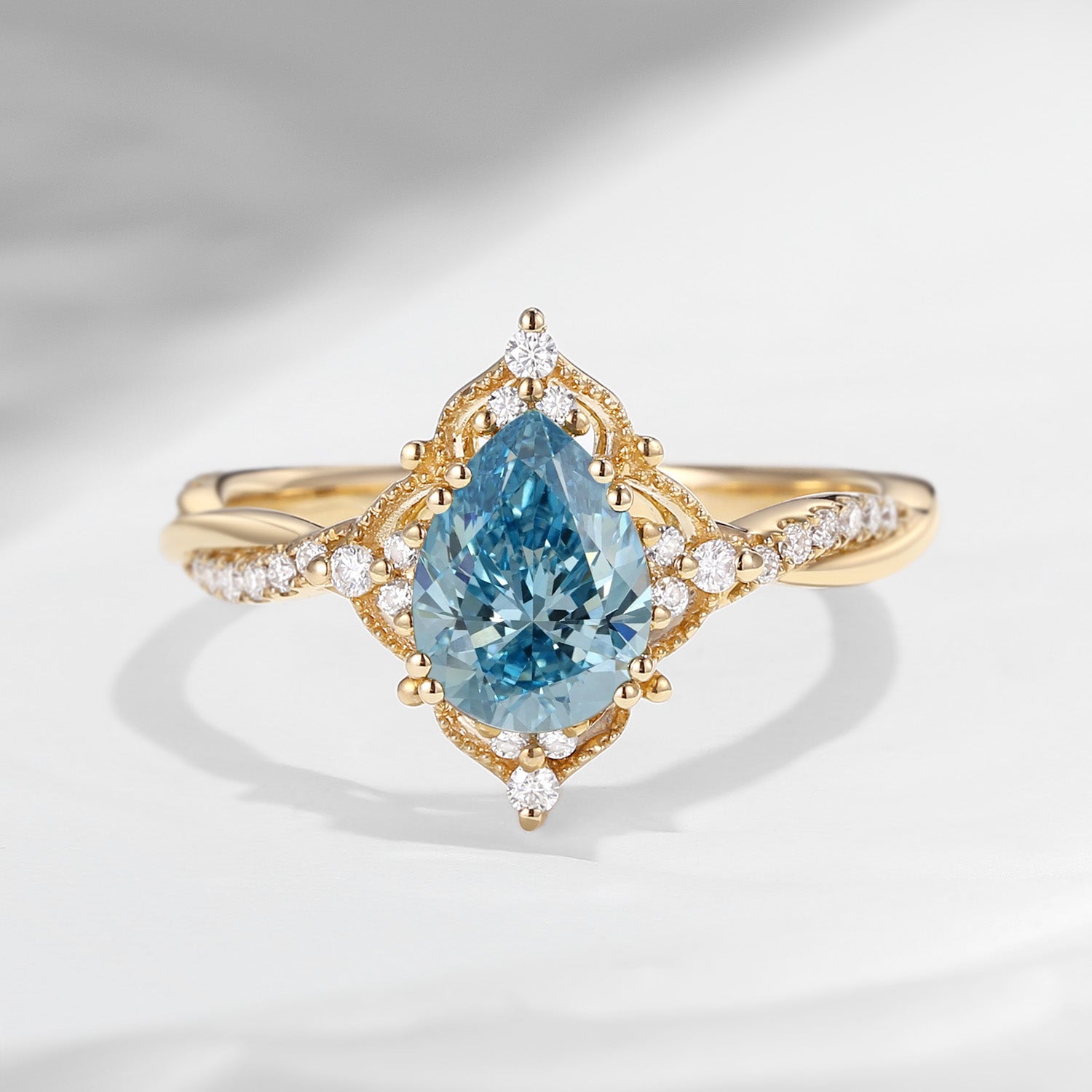 Vintage Pear Shaped Blue Lab Diamond Engagement Ring