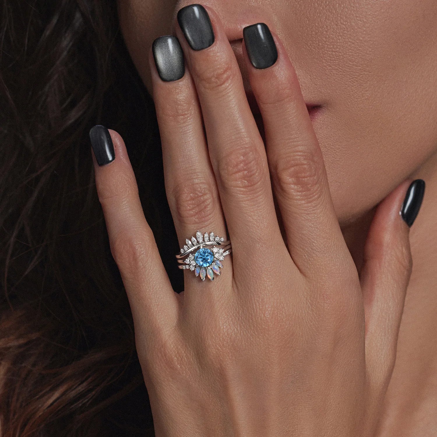Bette‘s Eyes | Blue Lab Diamond Engagement Ring Set 3pcs
