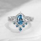 Antique Oval Blue Lab Diamond Vintage Ring Bridal Set 2pcs