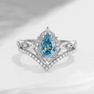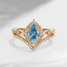 Pear Shaped Blue Lab Diamond Antique Stacking Engagement Ring 2pcs - Evelyn