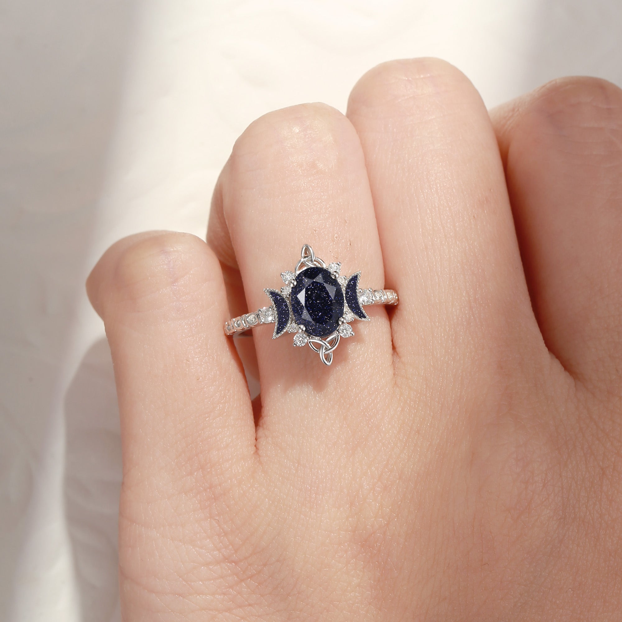 Celtic Moon | Vintage Inspired Oval Cut Blue Sandstone Celtic Engagement Ring