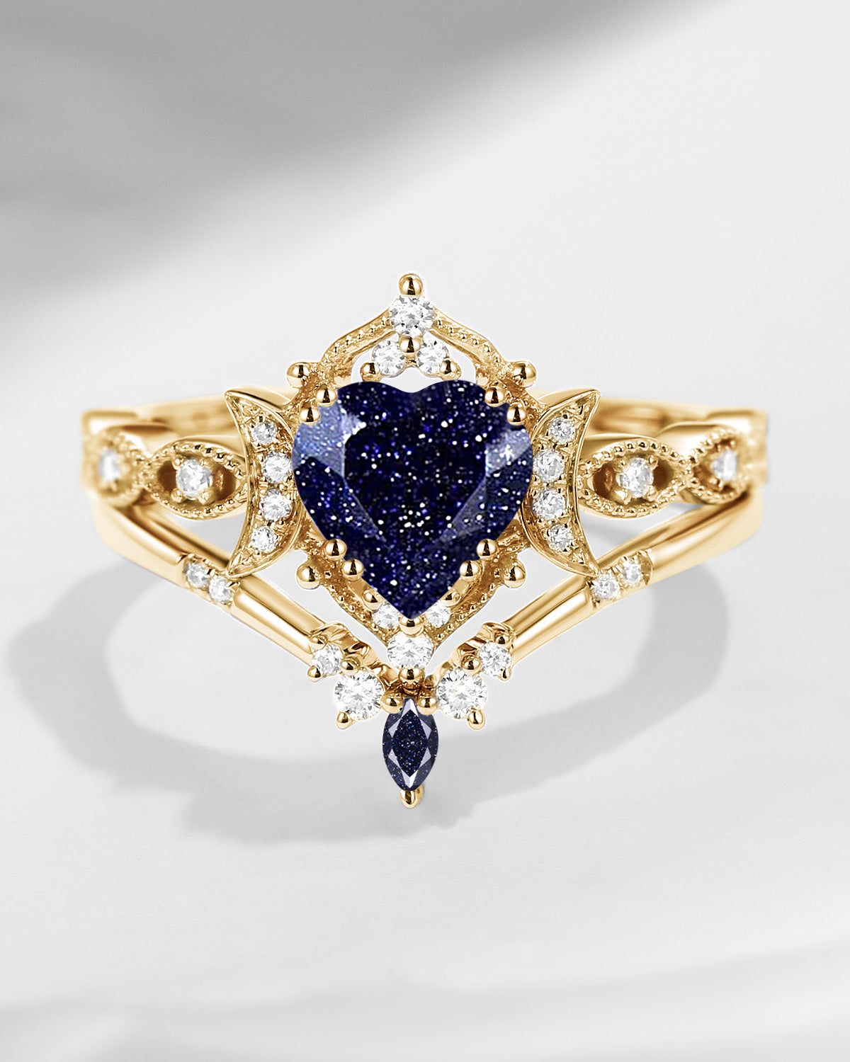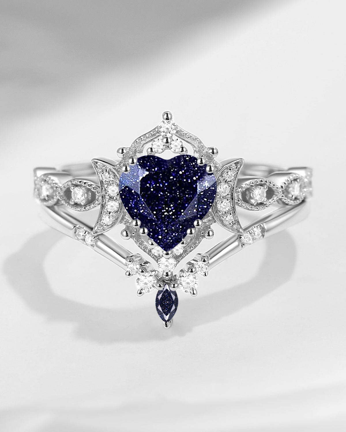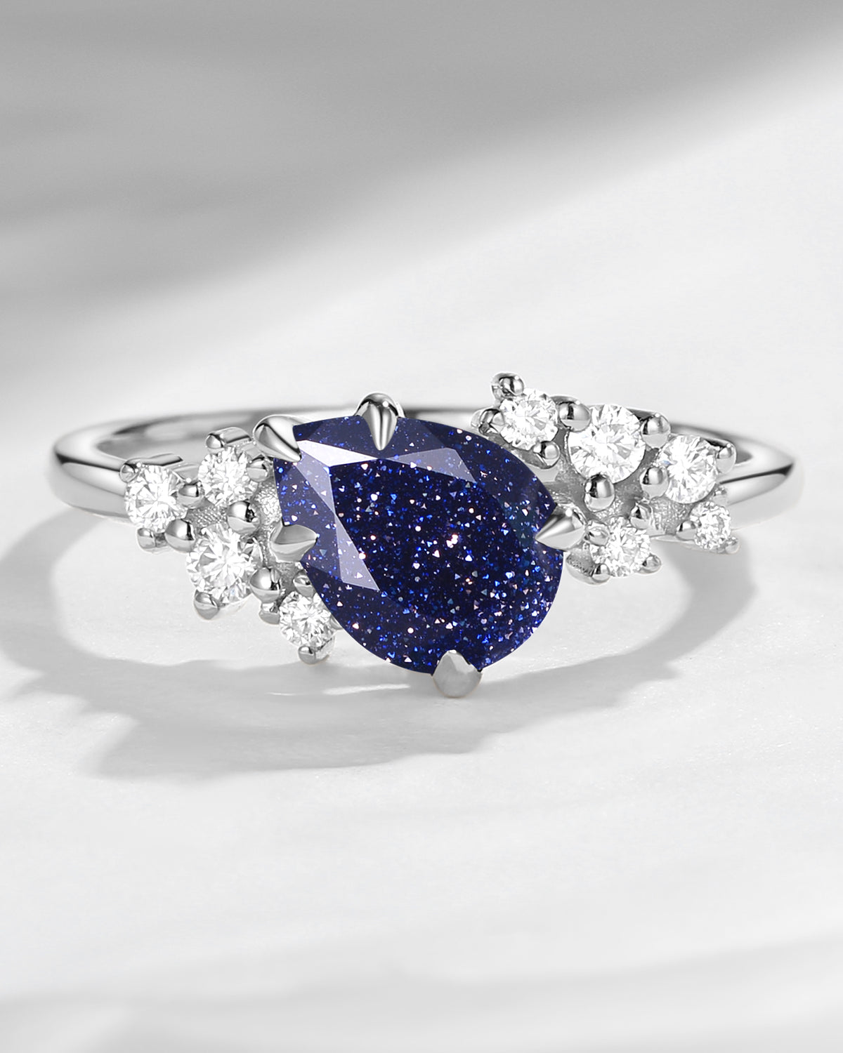 Blue Sandstone, also known as Blue Goldstone, is famous for its shiny mineral particles contained within, reminiscent of twinkling stars in the night sky. The Blue Sandstone engagement ring is highly favored for its unique appearance and its symbolism. It not only symbolizes endless love and hope, but also represents a commitment to romance and eternity.