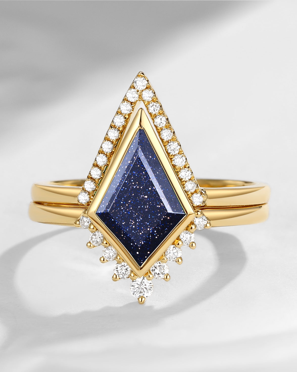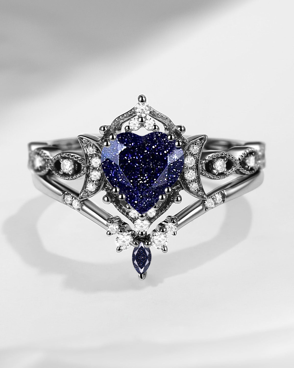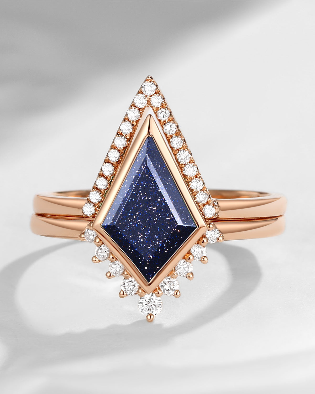 Blue Sandstone, also known as Blue Goldstone, is famous for its shiny mineral particles contained within, reminiscent of twinkling stars in the night sky. The Blue Sandstone engagement ring is highly favored for its unique appearance and its symbolism. It not only symbolizes endless love and hope, but also represents a commitment to romance and eternity.