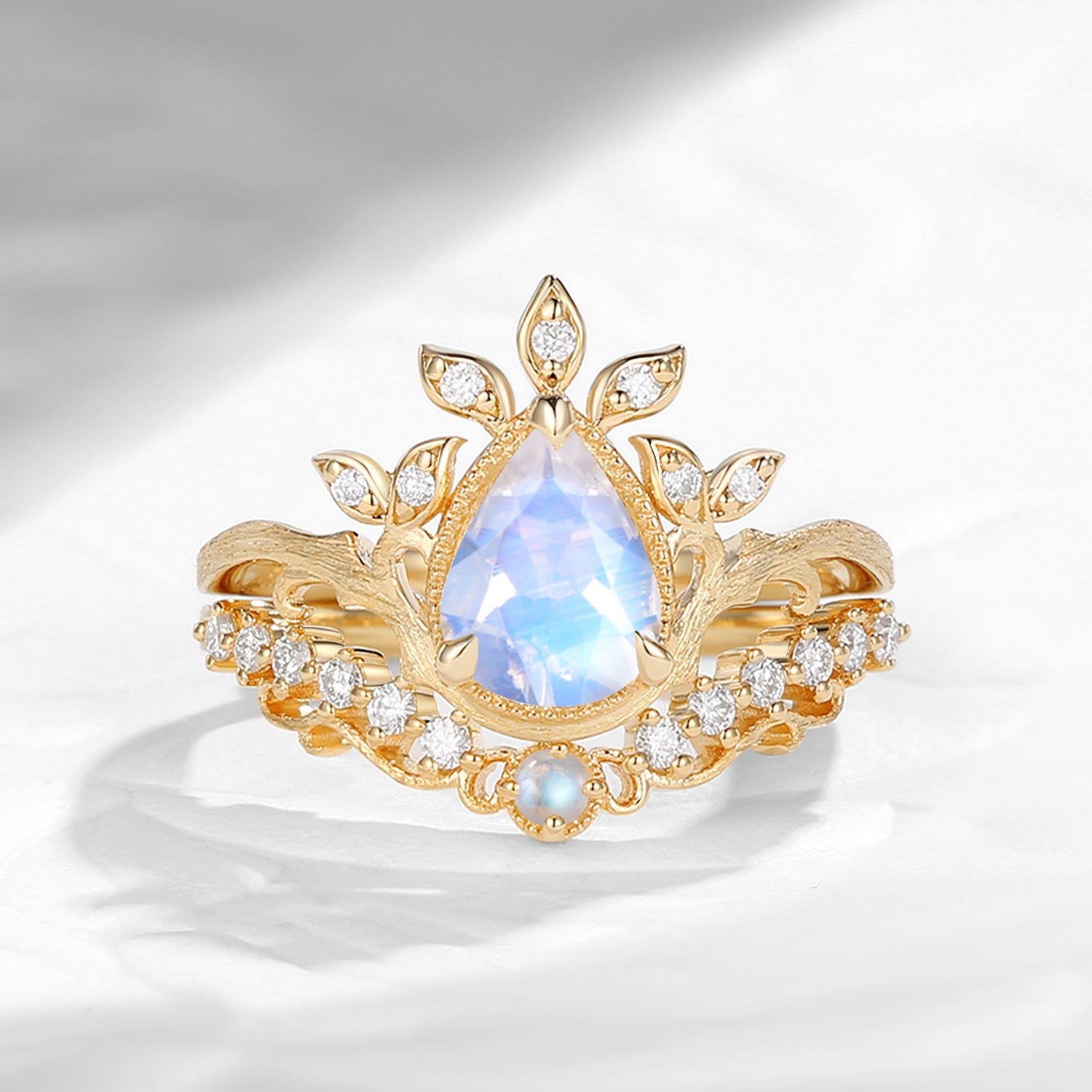 Nature Inspired Vintage Pear Shaped Moonstone Garden Ring Set 2pcs