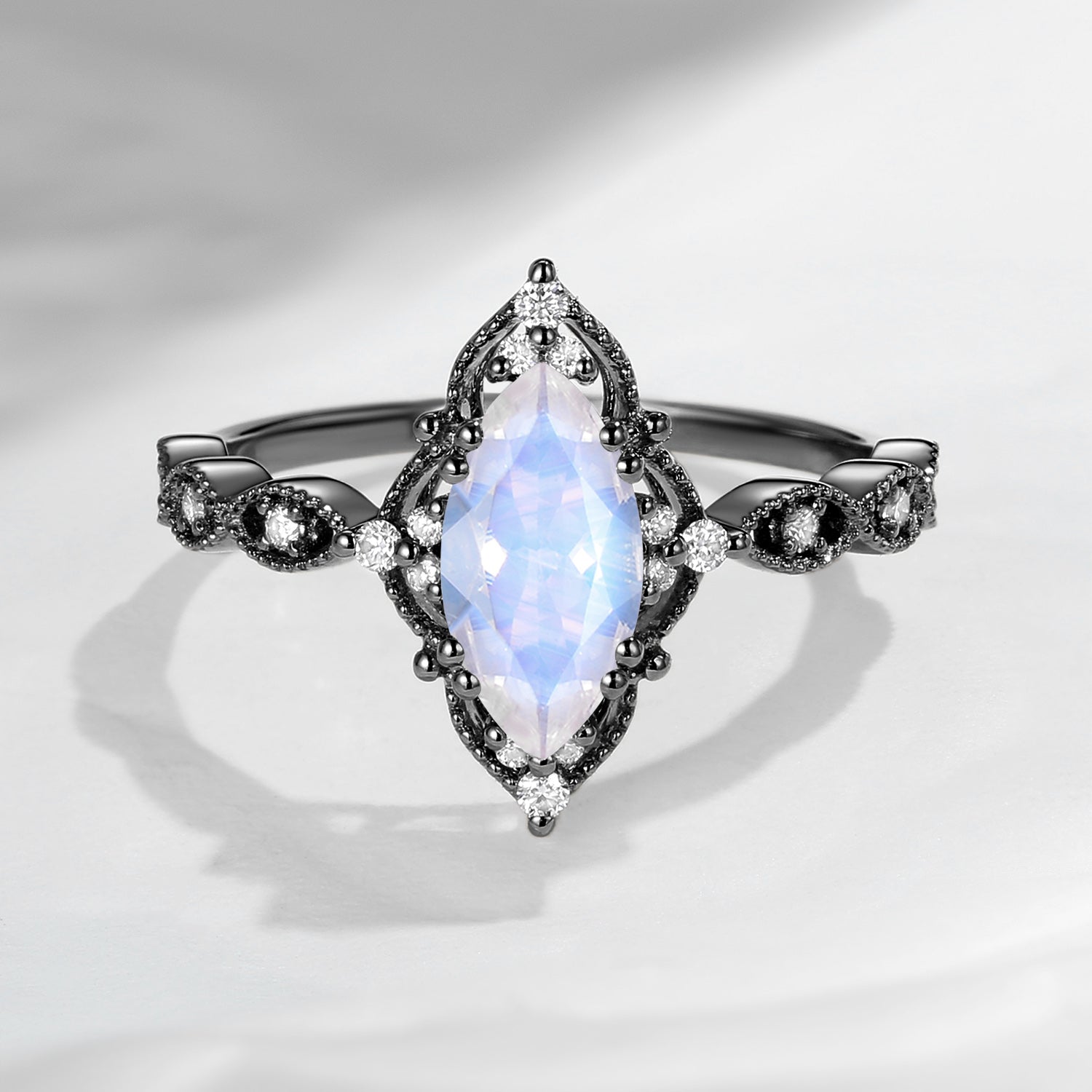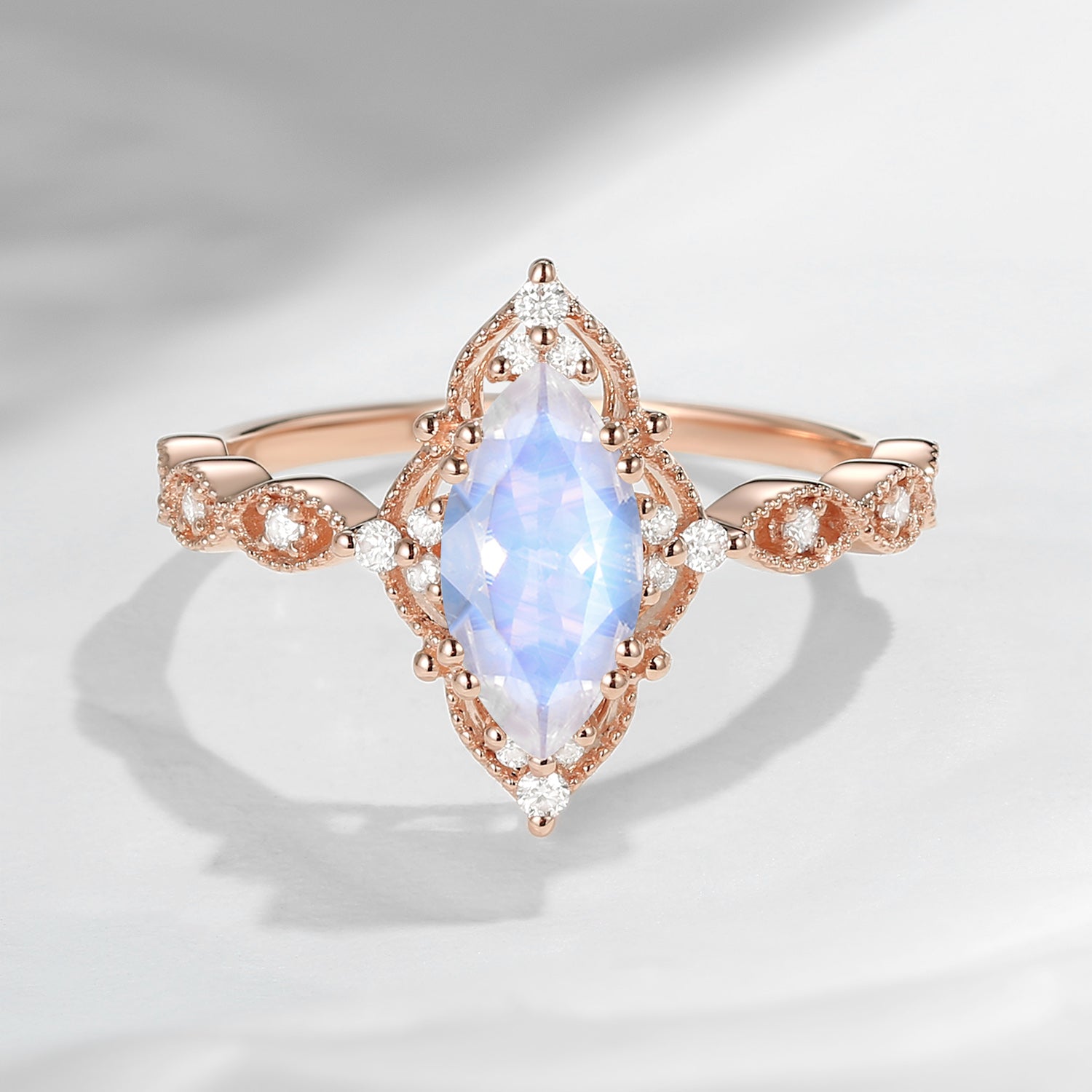 18K Unique Marquise Moonstone Vintage Inspired Engagement Ring