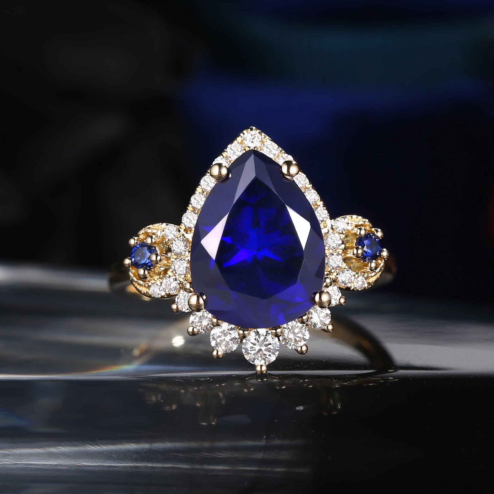 Crescent Moon | Vintage 9×12mm Blue Sapphire Halo Engagement Ring Mystic Moon