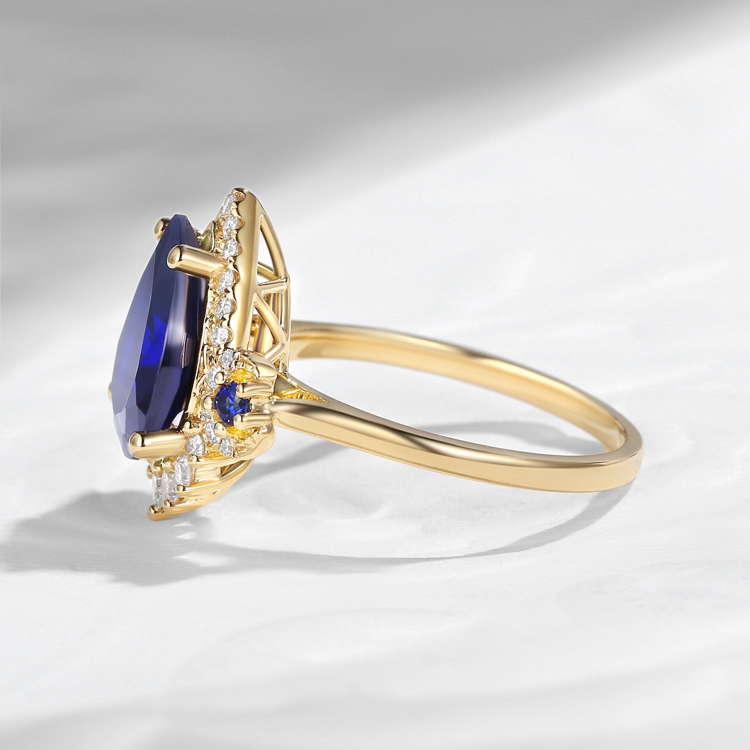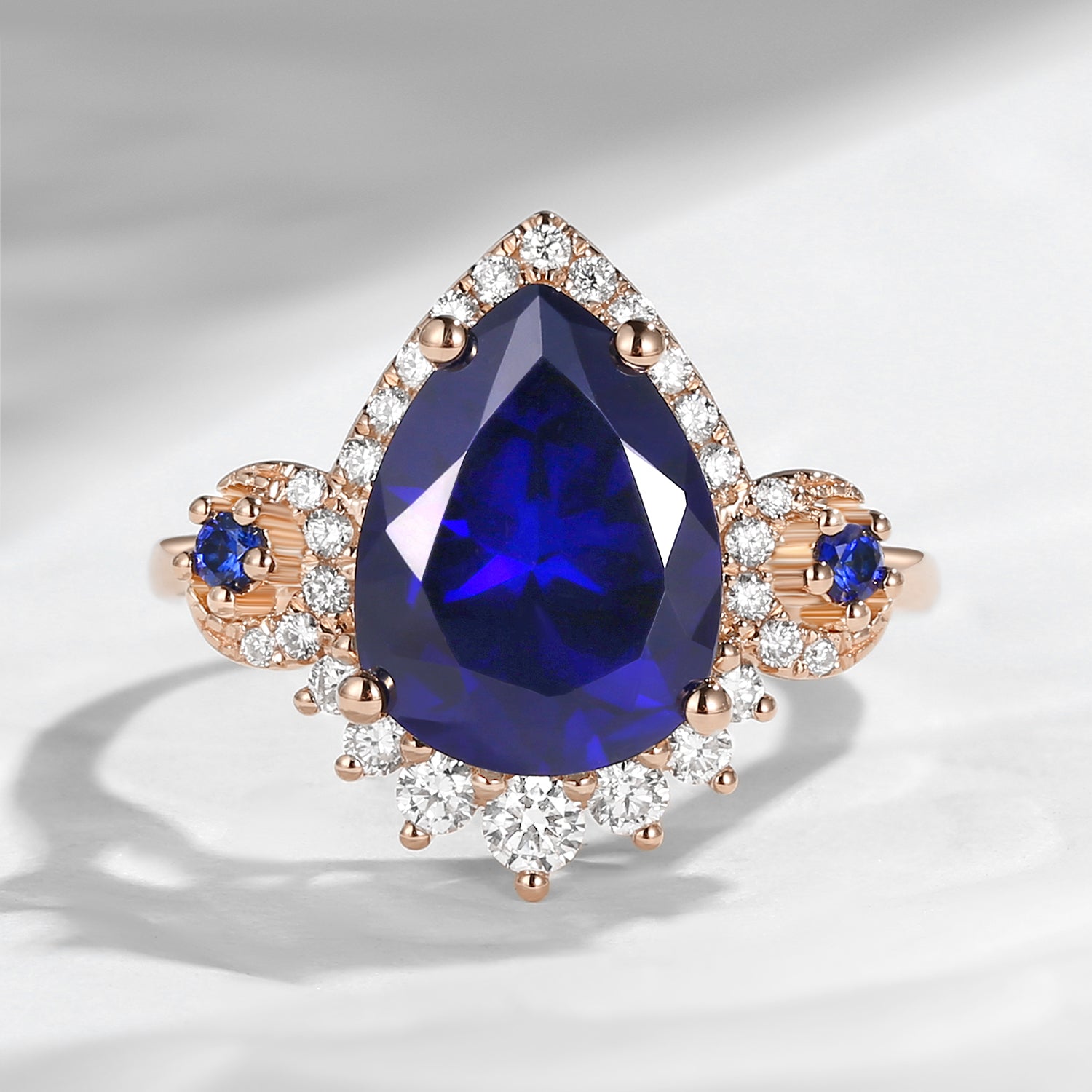 Crescent Moon | Pear Cut Blue Sandstone 'Ultra Galaxy' Engagement Ring Set 2pcs