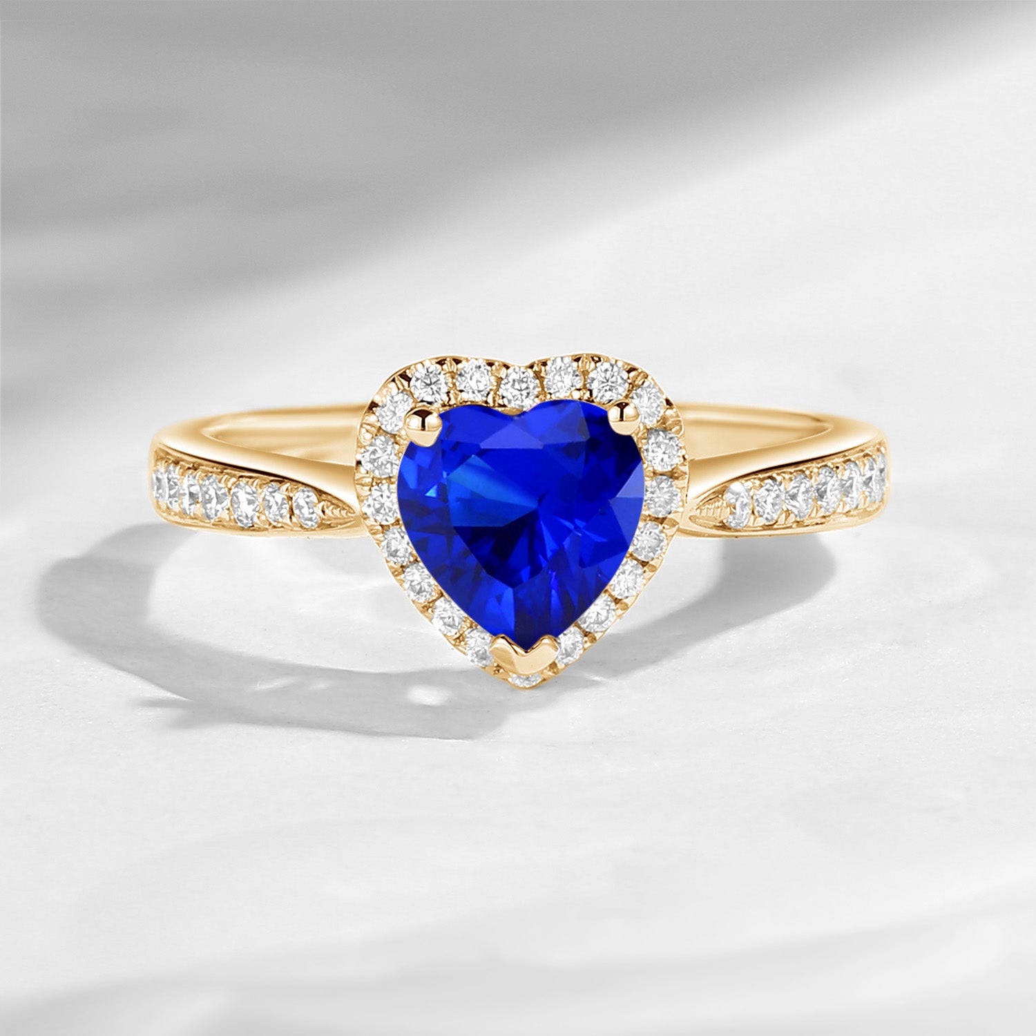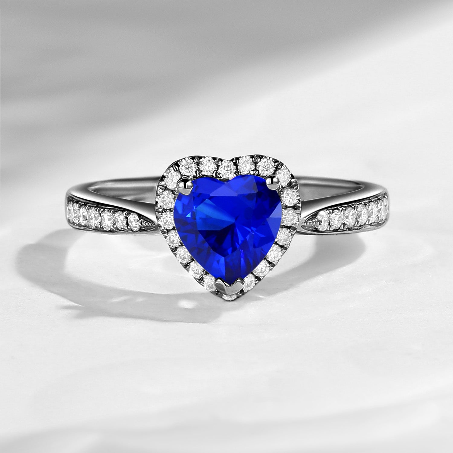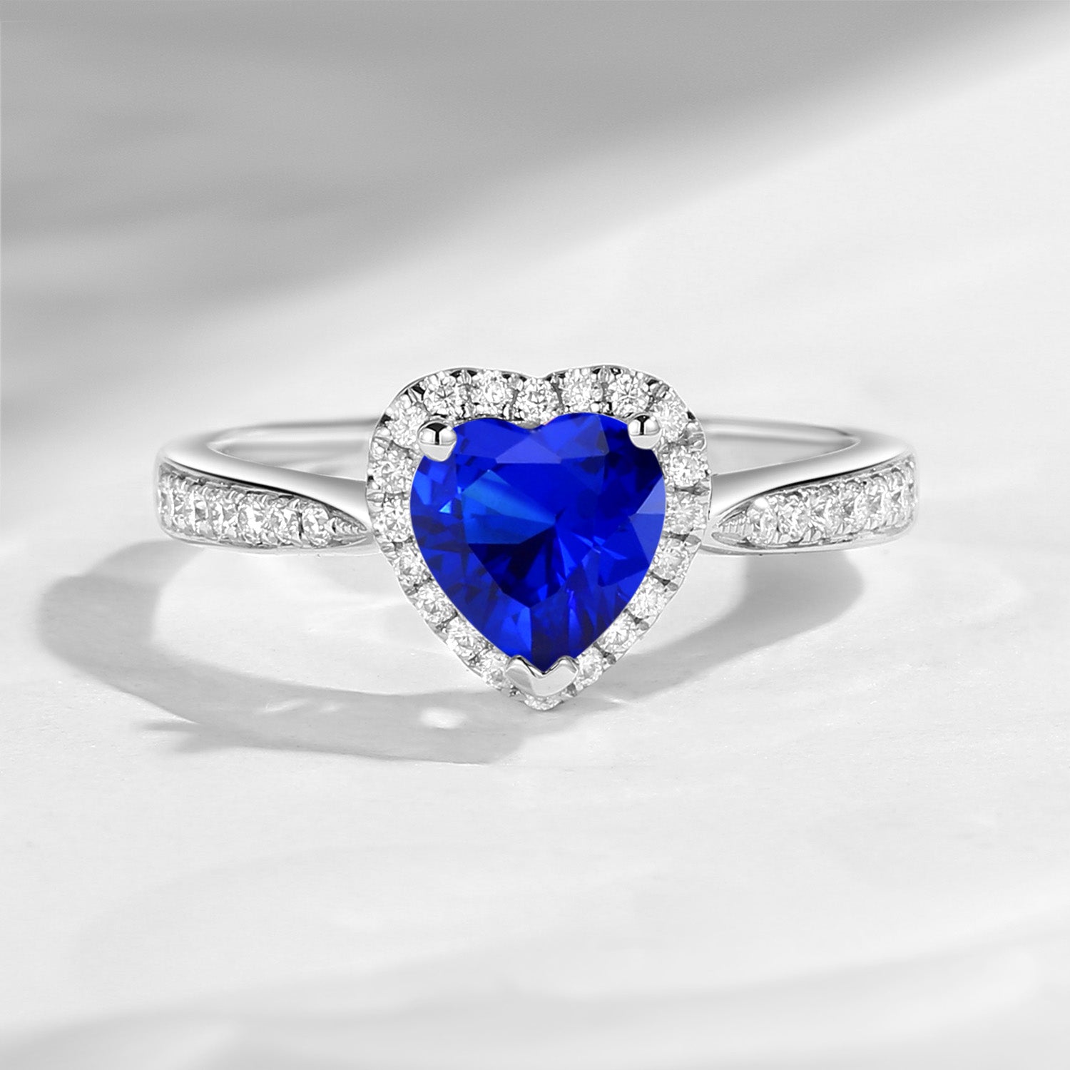 Classic Heart Shaped Halo Lab Sapphire Promise Ring