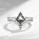 Natural Kite Cut Salt and Pepper Diamond Engagement Ring Set Unique Kite Diamond Ring Classic Bridal Ring Set Promise Ring Women
