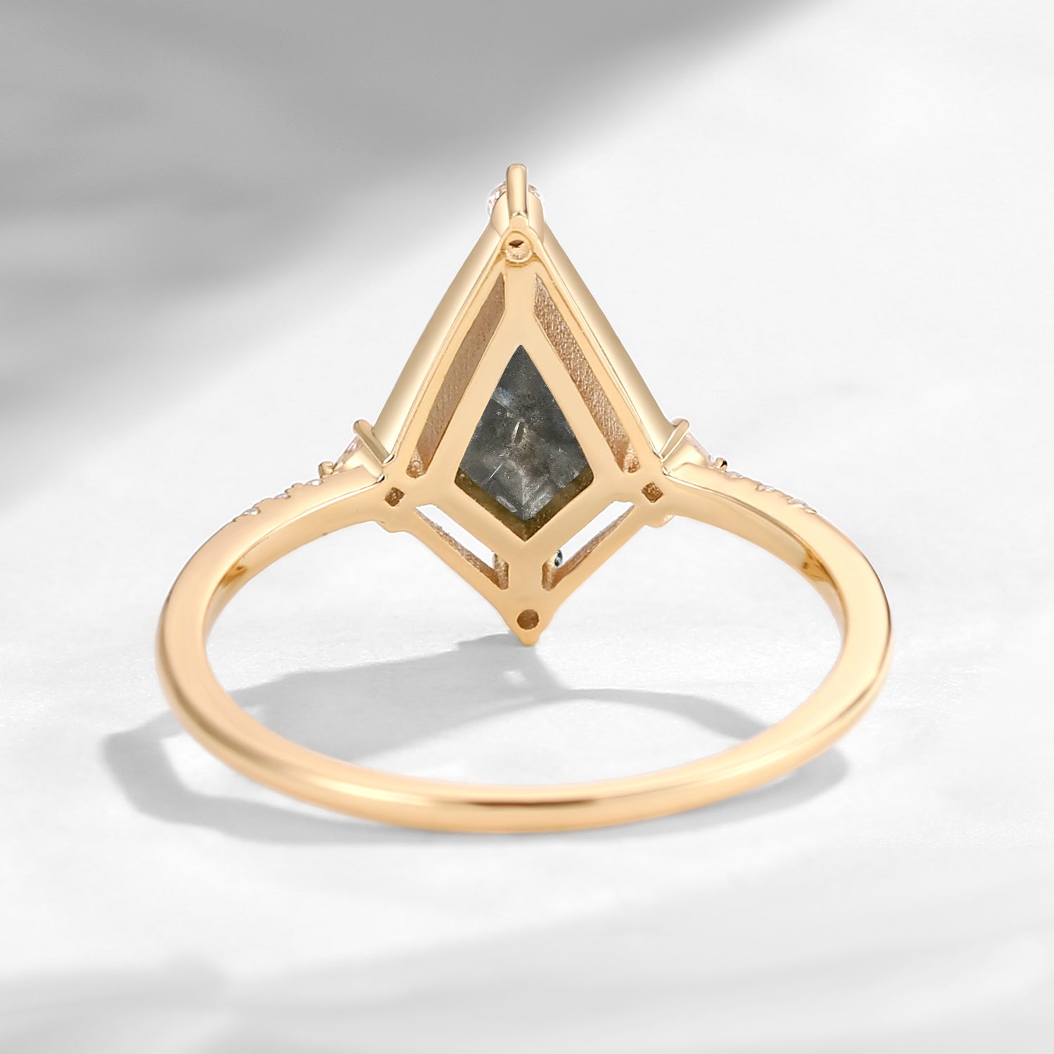 ⟢ Center Stone: Kite Cut Natural Salt And Pepper Diamond, 6*9mm