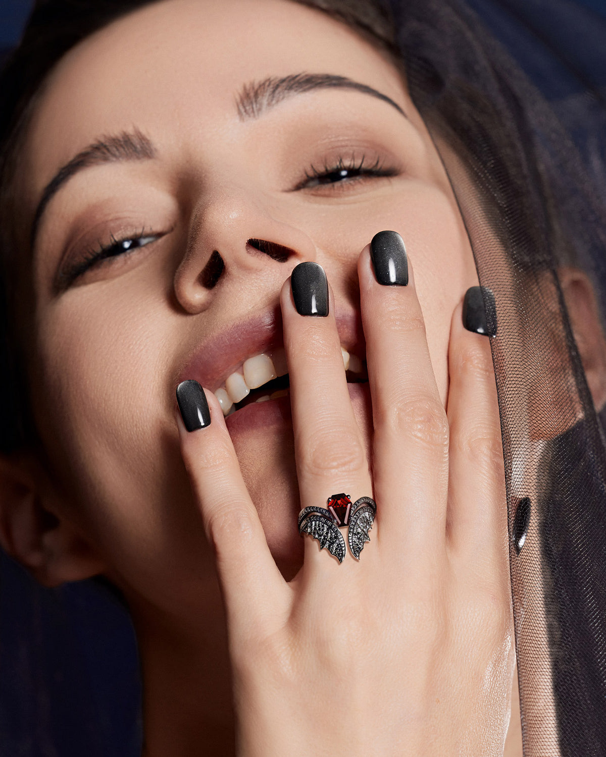 Crescent Moon | Coffin Cut Black Rutilated Quartz Ring 3pcs 18k - Till Death Do Us Part