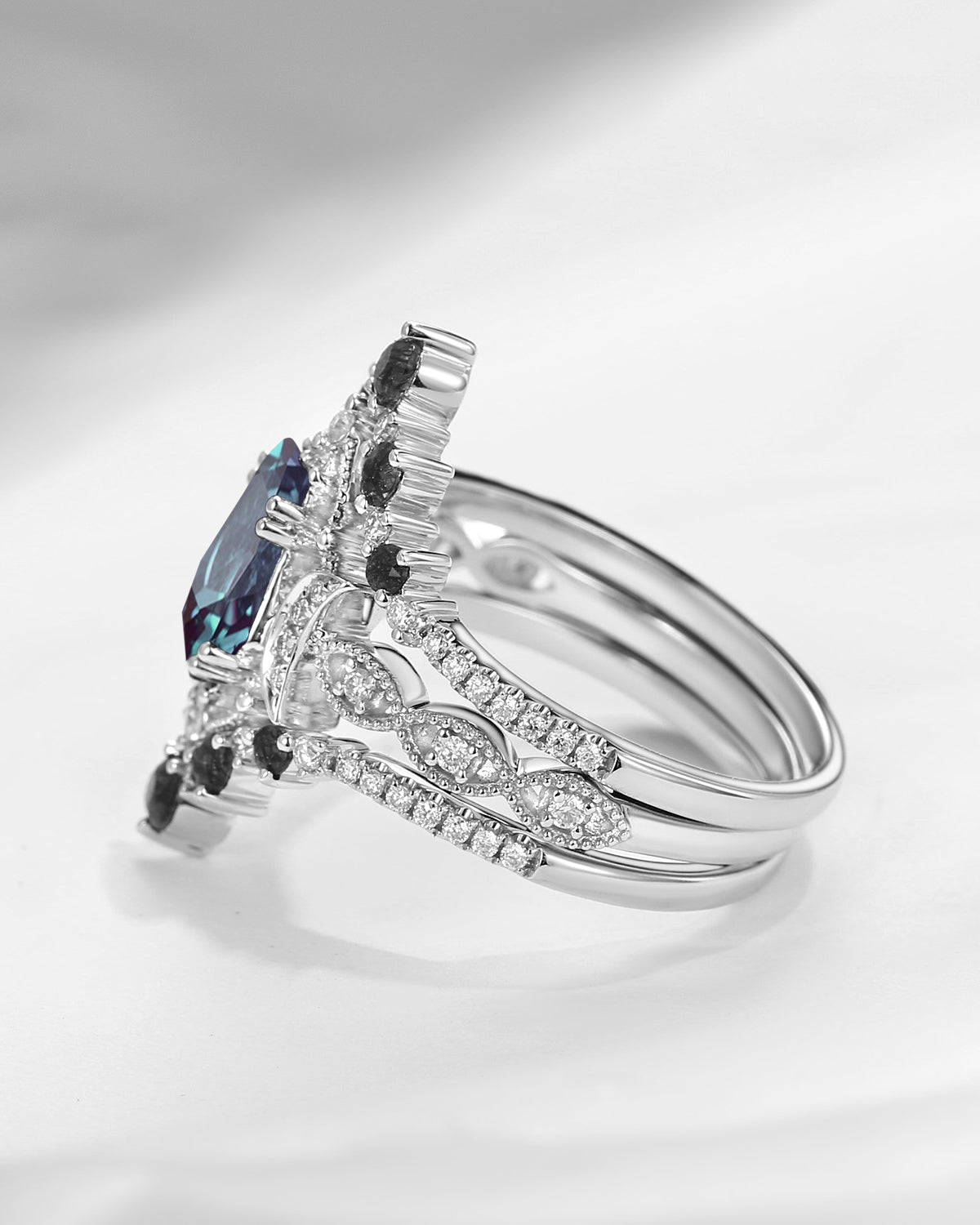 Crescent Moon | Pear Cut Lab Alexandrite Ring Set 2pcs - Waning Moon