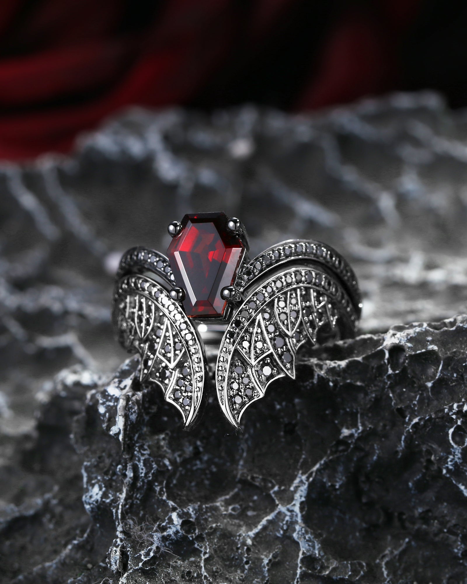 Unique Coffin Alexandrite Engagement Star Ring Set 2pcs - Coffin Kite