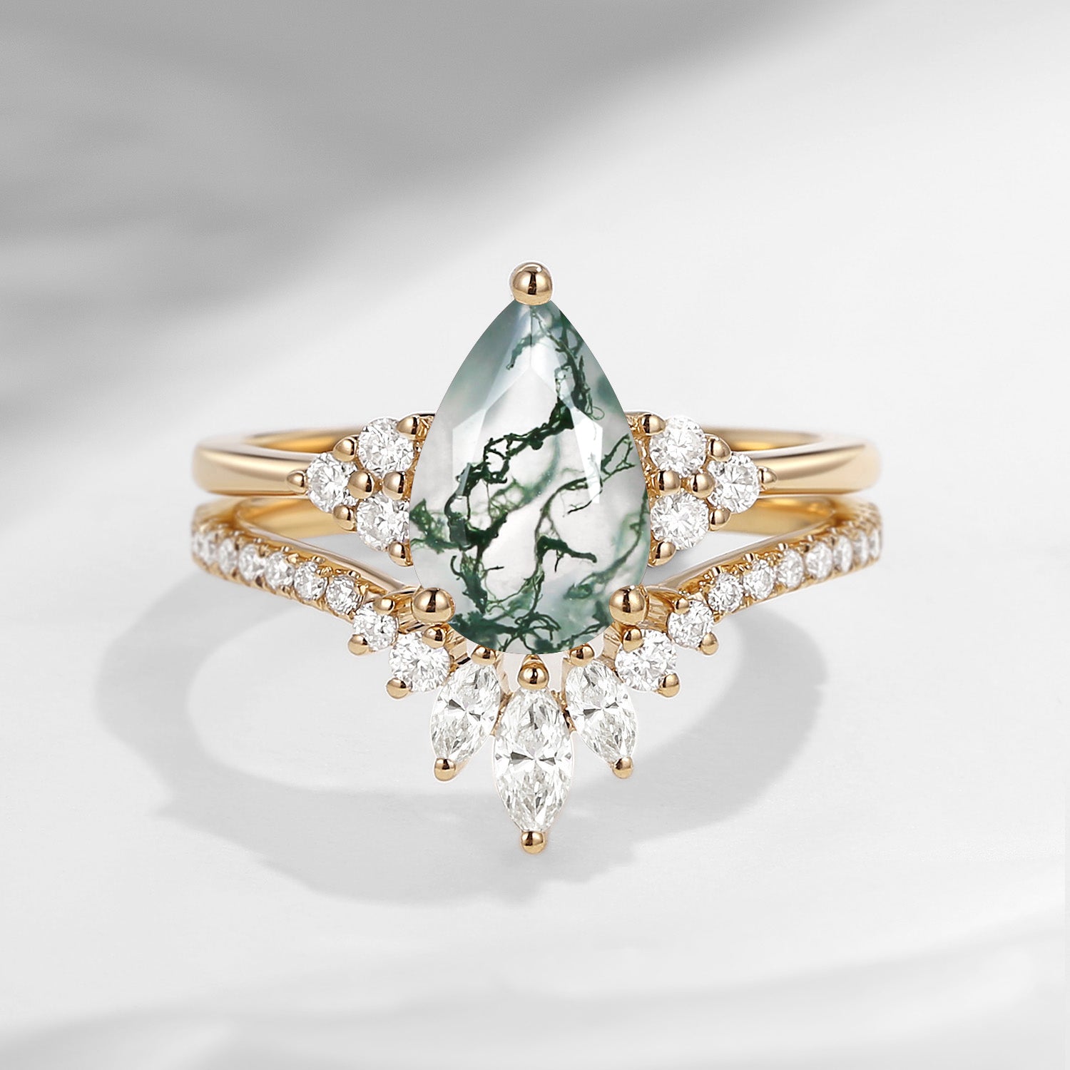Crescent Moon | Vintage Pear Cut Moonstone Engagement Ring 2pcs - Luna
