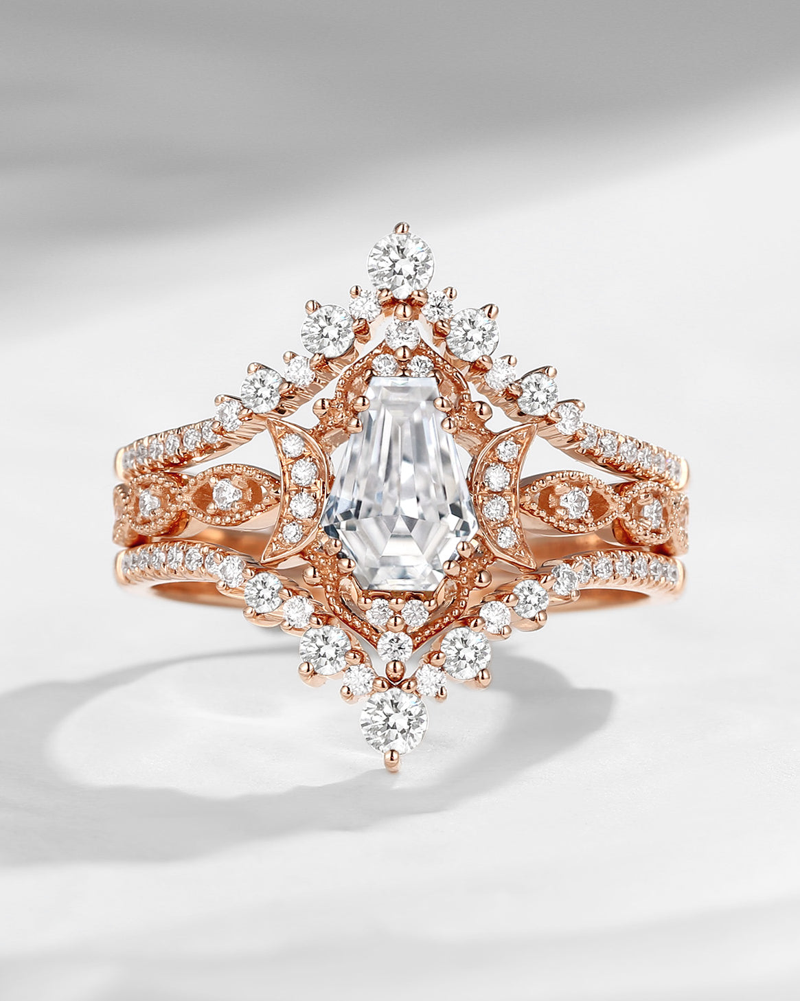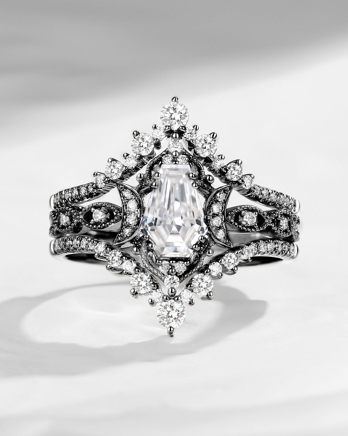 Crescent Moon | Coffin Moissanite Crescent Engagement Ring 3pcs - Till Death Do US Part