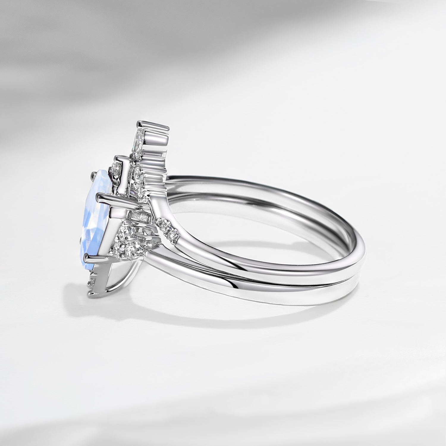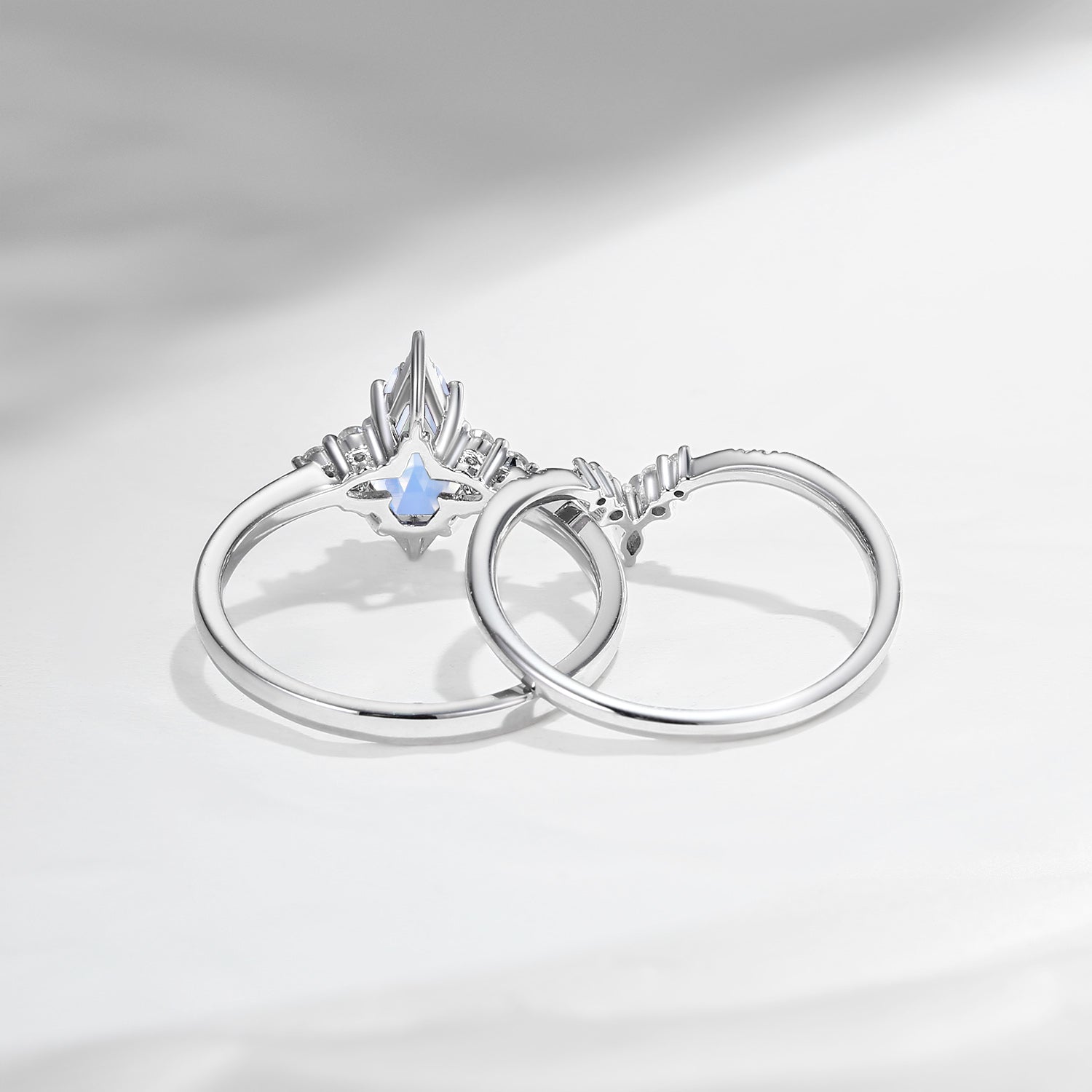Unique Coffin Moonstone Engagement Ring Star Ring Set 2Pcs Bridal Set 2pcs Moonstone Cluster Ring Wedding Band Gift