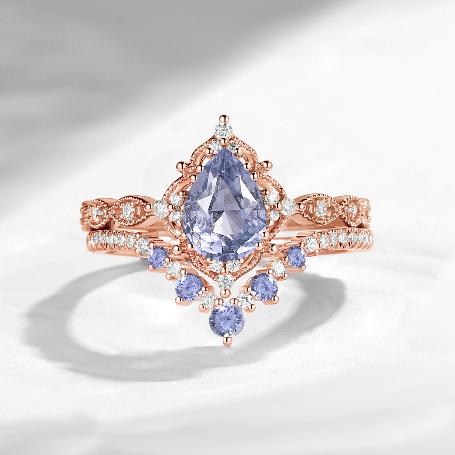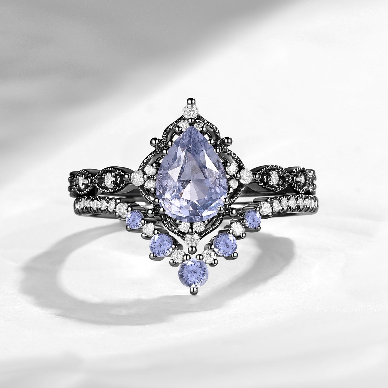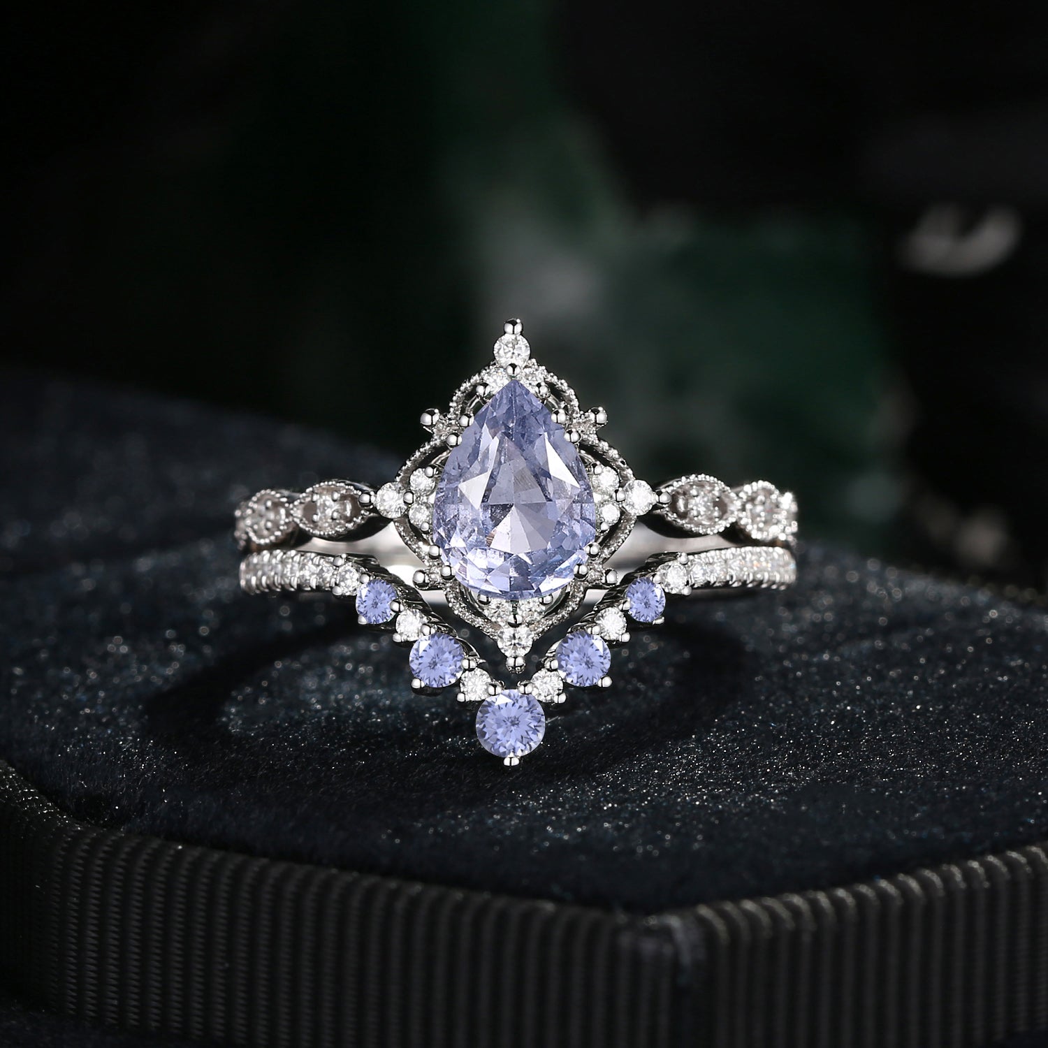 Antique Pear Cut Natural Spinel Engagement Ring 2pcs