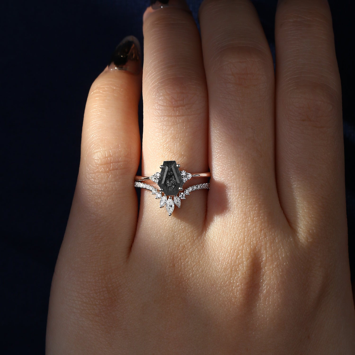 Crescent Moon | Coffin Cut Black Rutilated Quartz Ring 3pcs 18k - Till Death Do Us Part