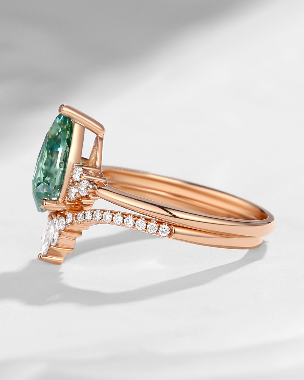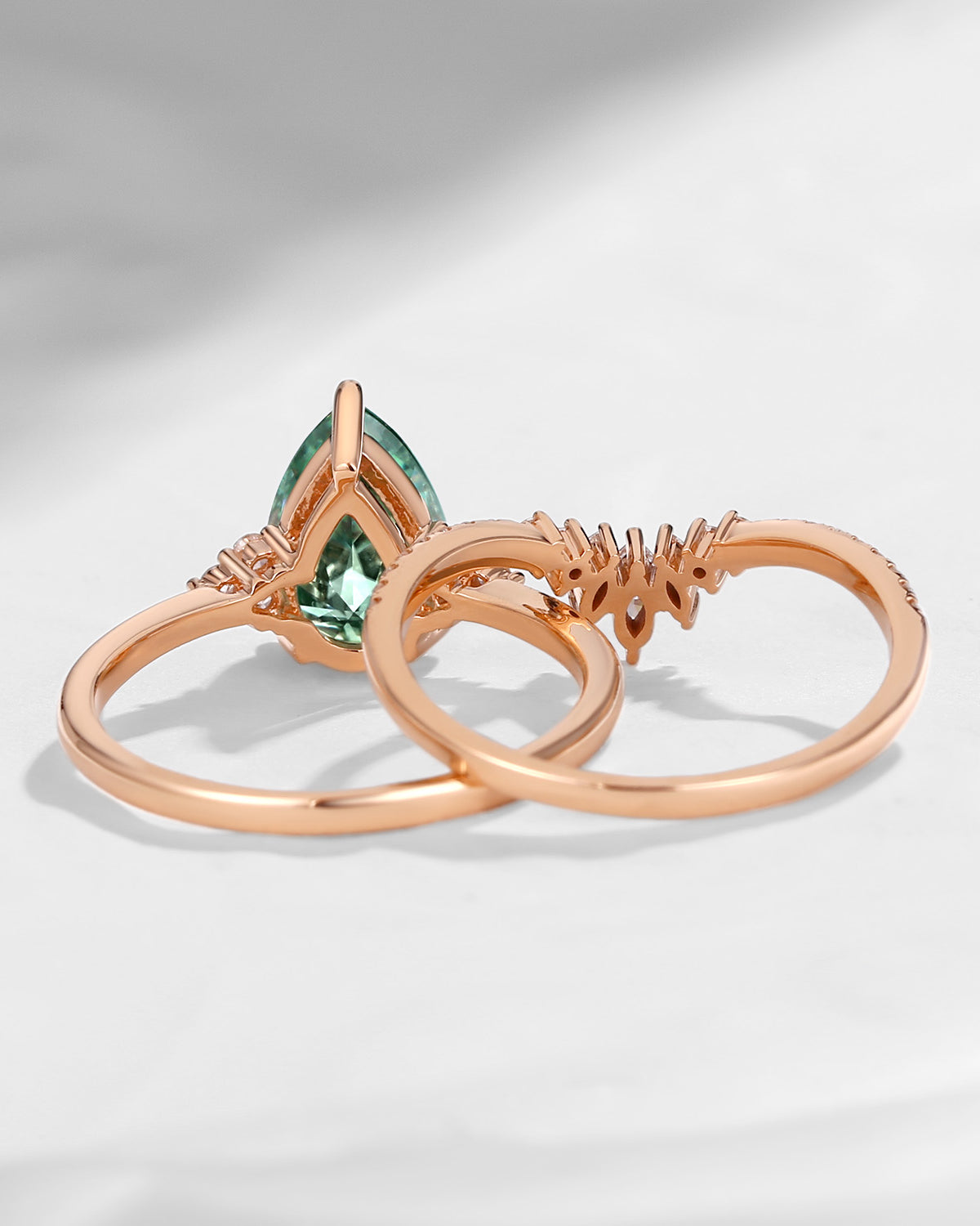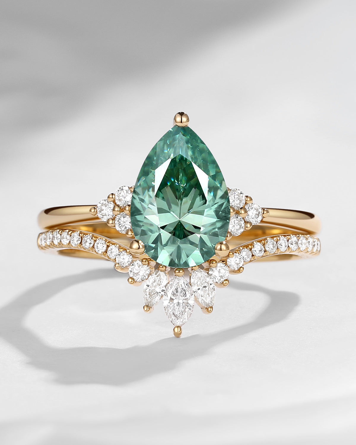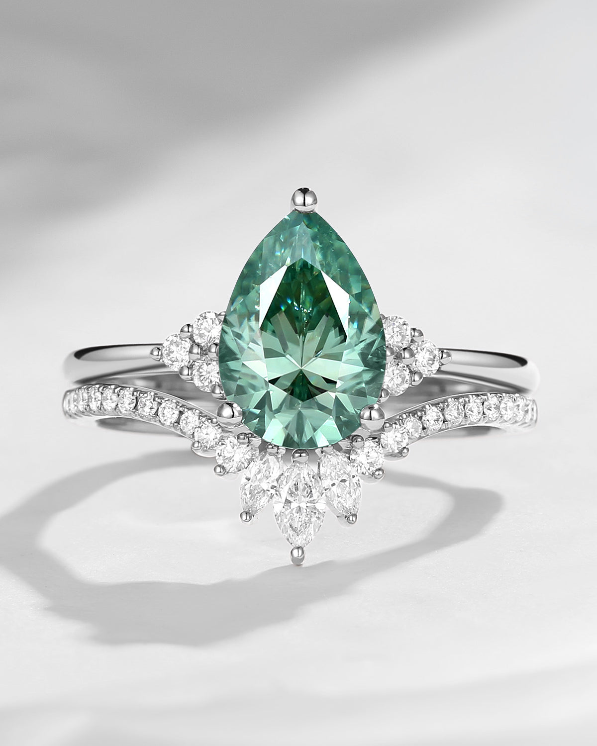 Pear Cut Green Moissanite Engagement Ring Set 2pcs - Vivian