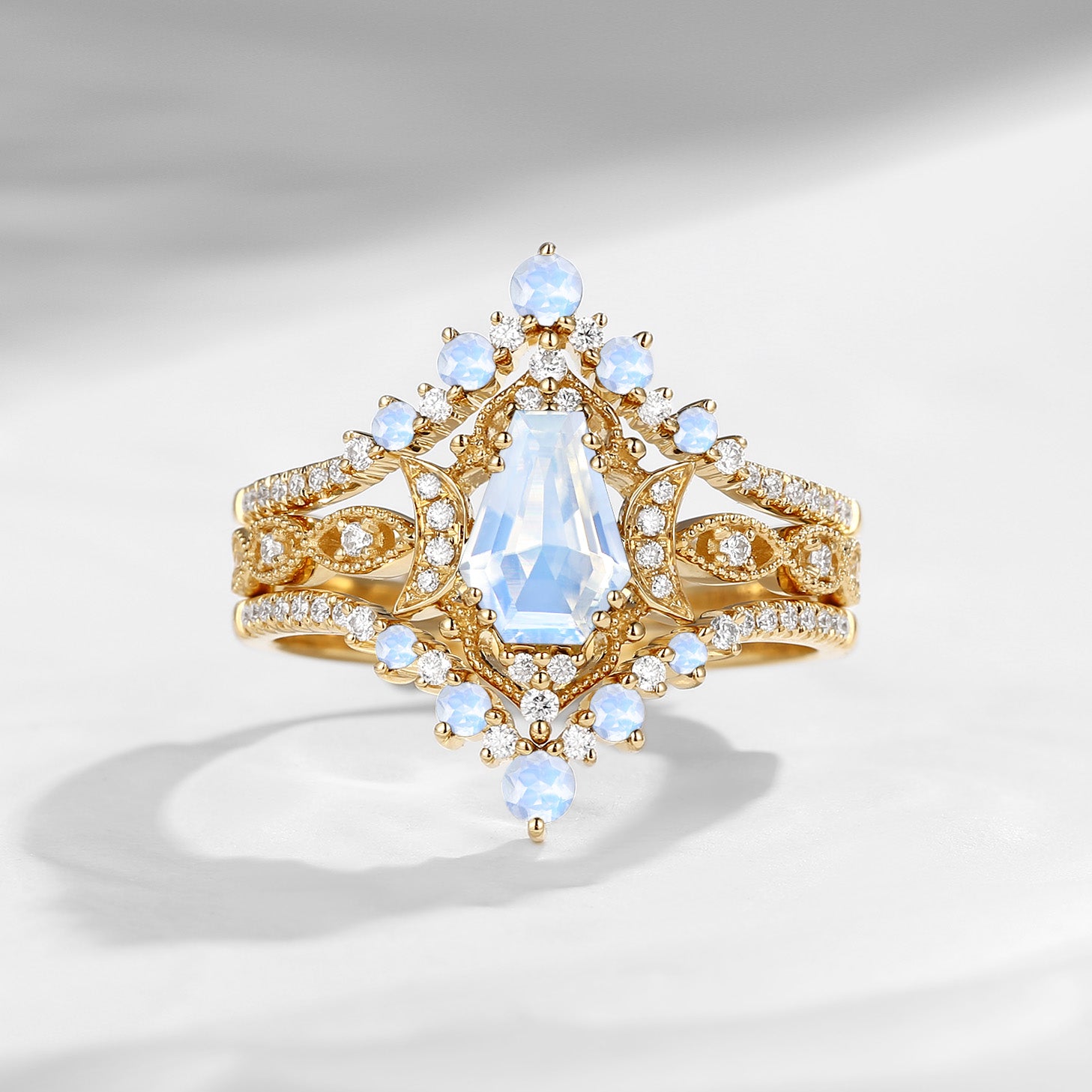 Coffin Moonstone Crescent Engagement Ring 3pcs Moon Bridal Ring Vintage Engagement Ring Art Deco Vintage Till Death Do Us Part
