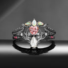 Unique Heart Shaped Lab Pink Sapphire + Pear Shaped Moissanite 'Tree of Life' Engagement Ring Set Garden of Eden